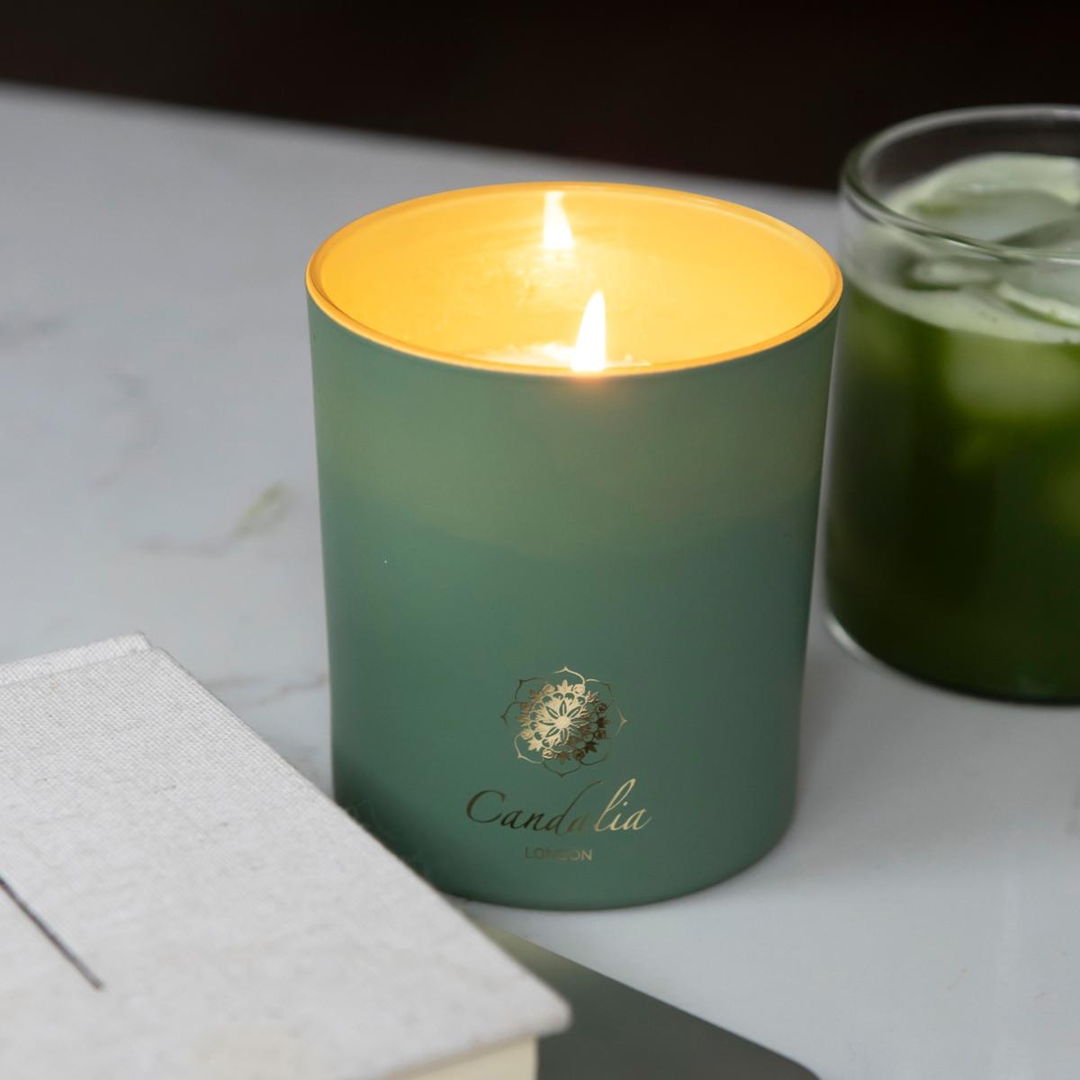 The soothing aroma of fresh matcha transports you to a perfect escape from the hustle of daily life, inviting you to unwind and reset with every flicker of candlelight. Enjoy top notes of fresh bergamot, grapefruit and lemon blended with delicate cherry blossoms and fruity peaches. The heart of the scent is a beautiful blend of matcha, spicy ginger & black pepper with fresh jasmine, rose and aromatic sage. This is balanced with an exquisite base of cedarwood, patchouli and amber. The first family member of our Bespoke Collection. Enjoy a stronger & longer lasting scent throw. Energise, focus & reset, enjoy a Match-a Moment like no other.