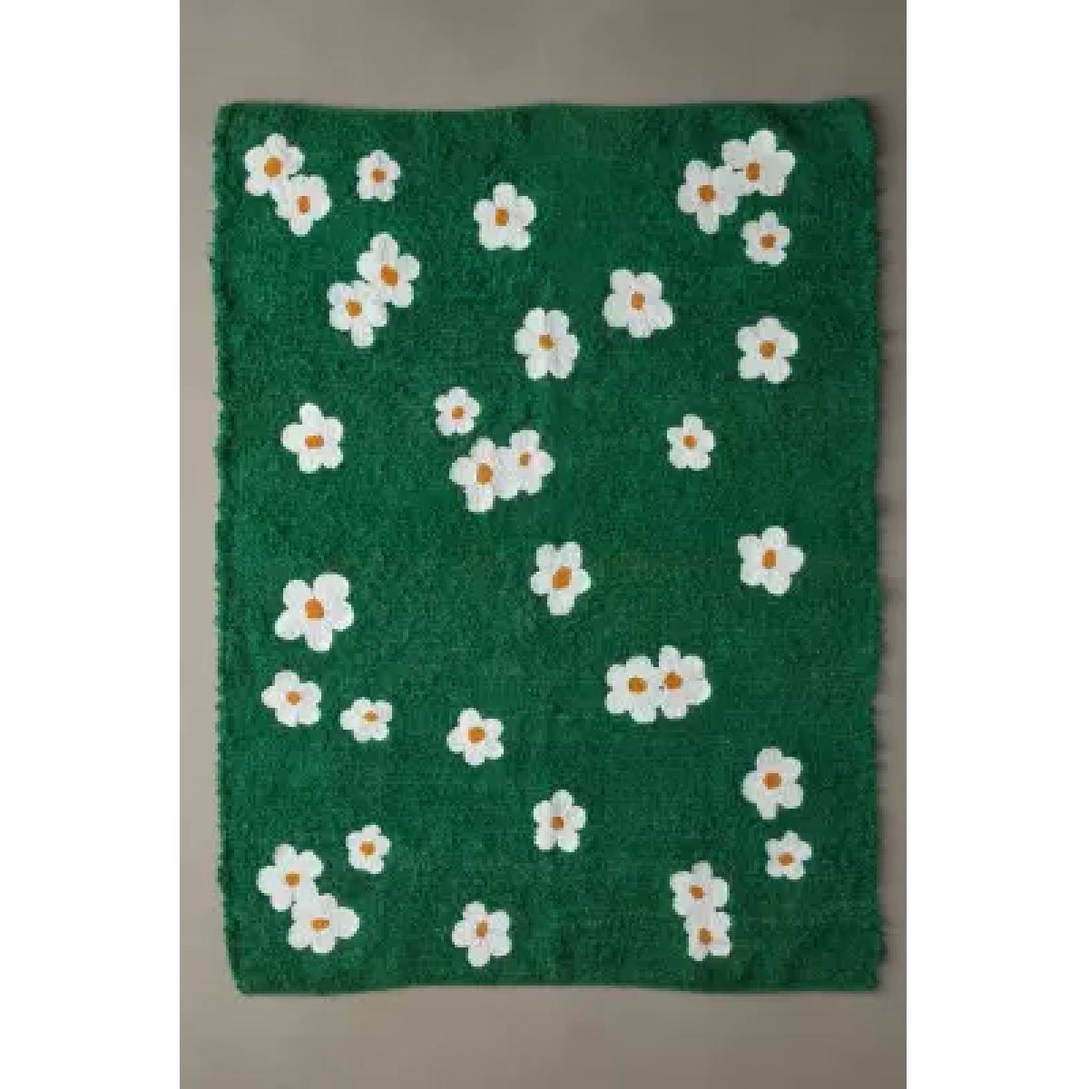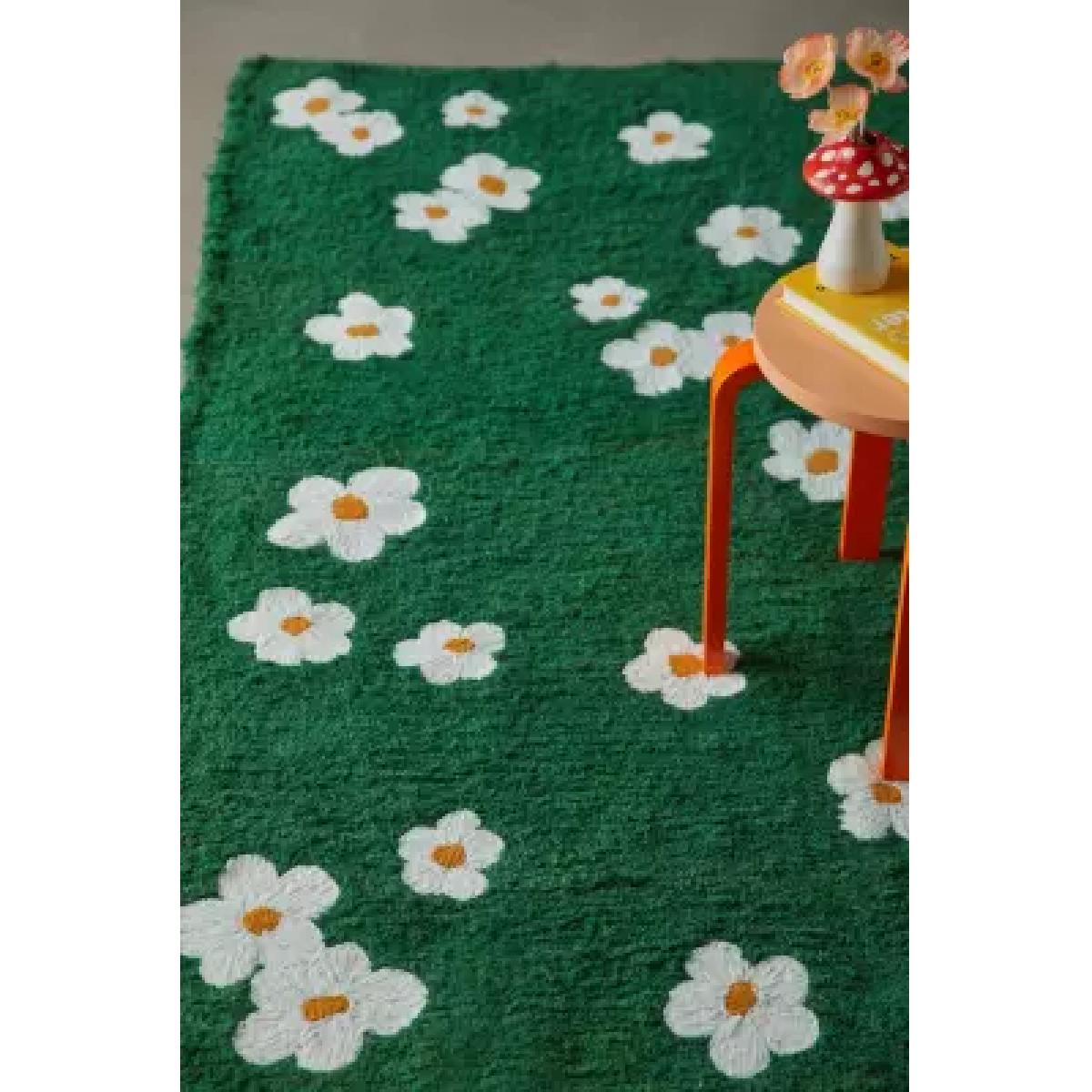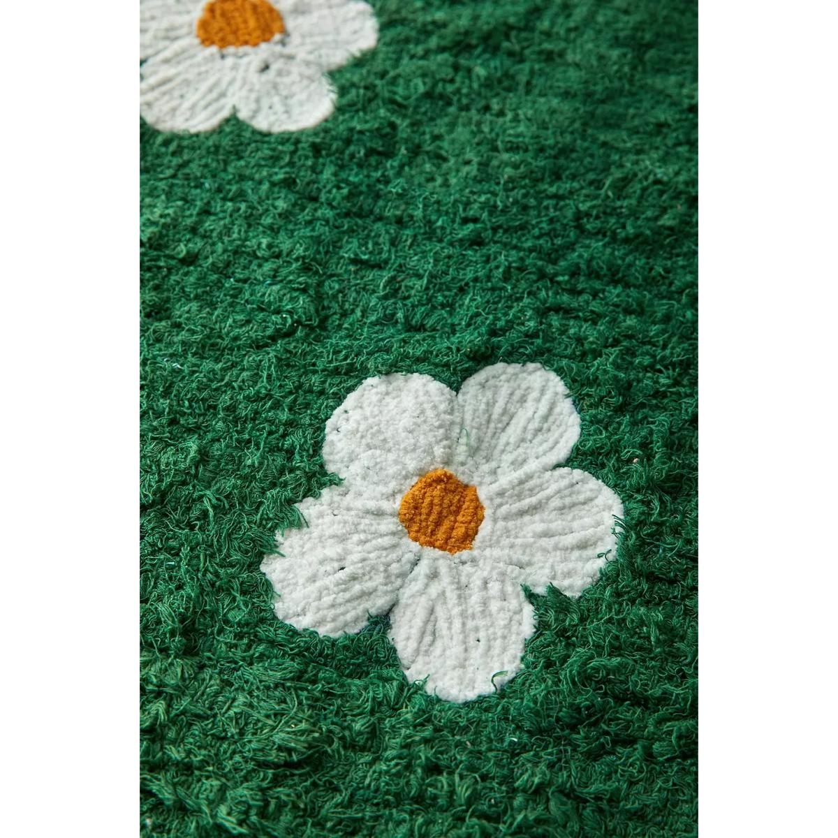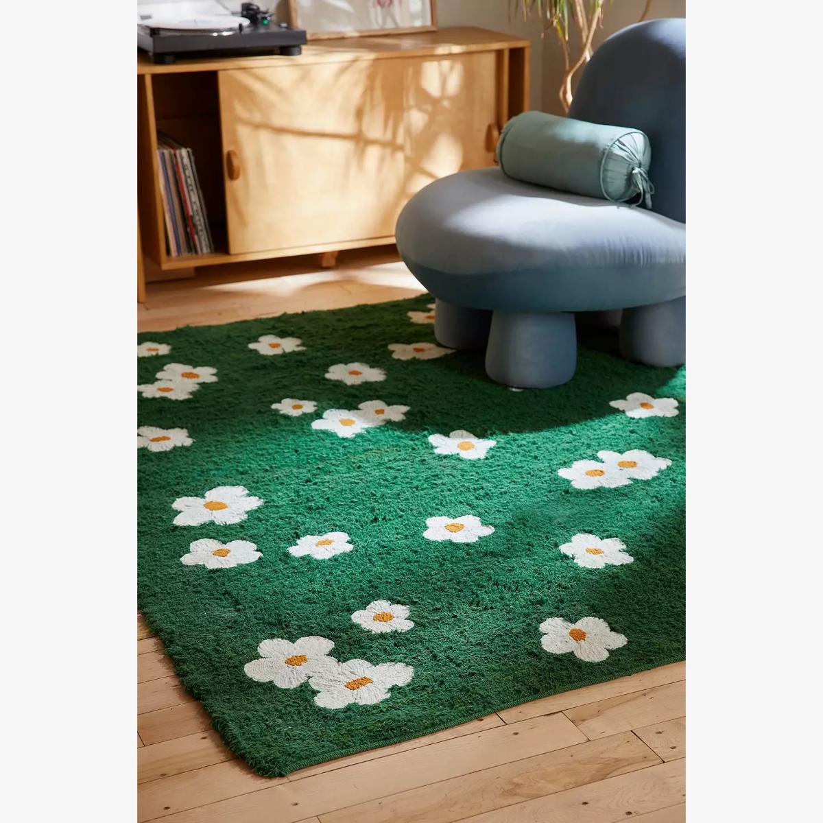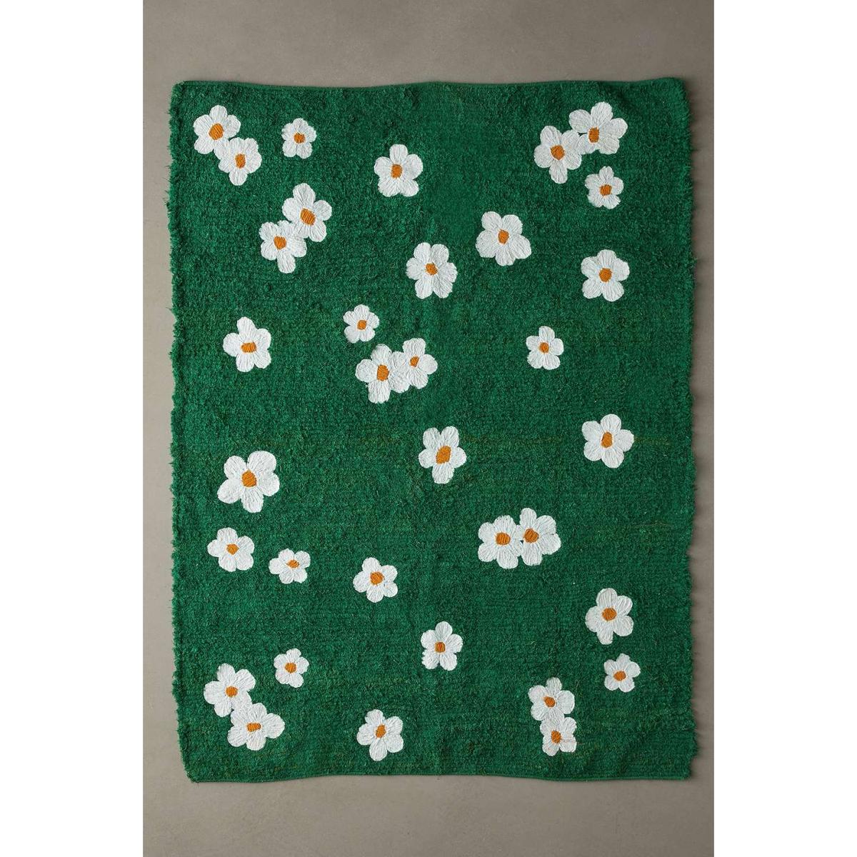 Create an inside-outside space with this meadow-inspired rug. The grassy-feature rug features a tufted construction with a texture finish and woven daisies dotted throughout. **Content + Care** \- 91% Cotton, 7% Polyester \- Spot clean **Size** \- 152.4cm x 213.3cm (5ft x 7ft)