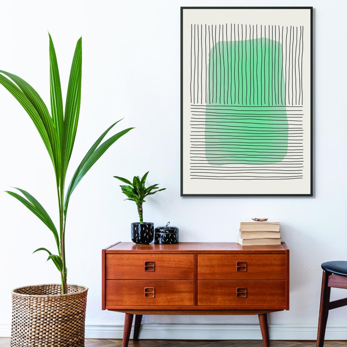 This Green Minimalism print is a great choice for adding a contemporary, understated touch to a pared-back interior. Its subdued colour palette and simple geometric design mean it works particularly well in minimalist or modern spaces, where it can serve as a calming focal point. For styling, consider pairing it with neutral-toned furnishings and clean lines to enhance its understated elegance. It also lends itself to placement above a sleek console or in a reading nook, where its calming hues can bring a sense of tranquillity. Overall, it’s a versatile piece that adds a subtle burst of colour without overwhelming a room.