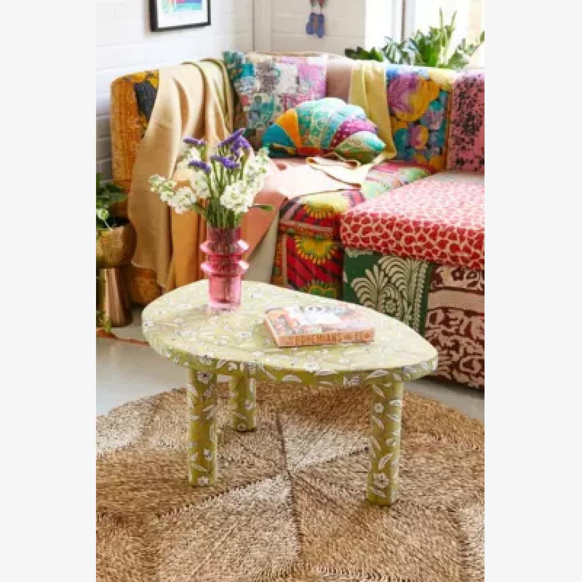 I love this green painted coffee table for its bold colour and playful vibe, making it a great statement piece in a variety of interiors. It works particularly well in eclectic, boho, or even modern spaces where its vibrant hue can add a pop of colour and personality. Practical styling ideas include keeping the surface uncluttered with a simple tray, a vase of fresh flowers, or a few favourite books to complement its lively tone. Situated on a neutral or patterned rug, it can become a focal point that injects fun without overwhelming the room.