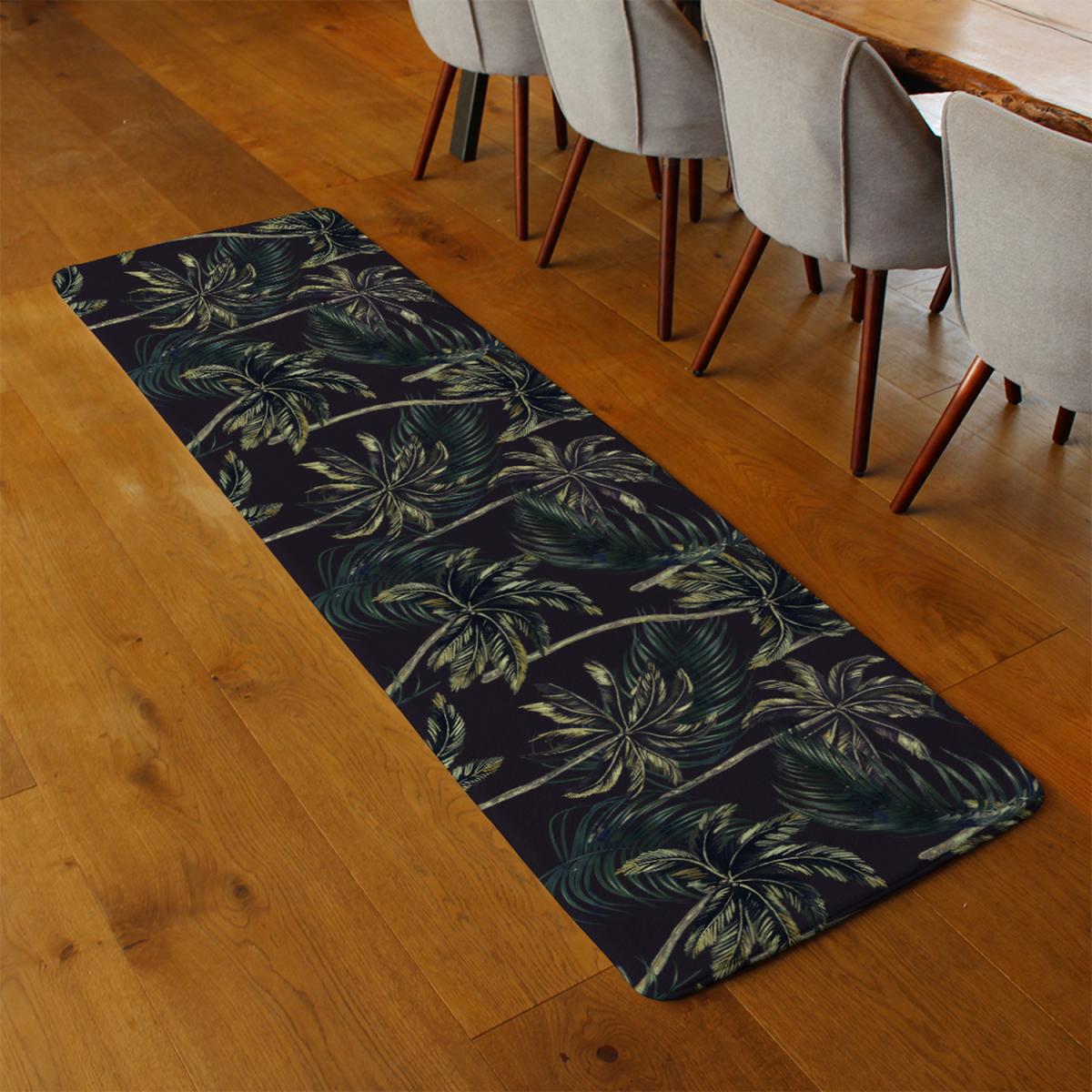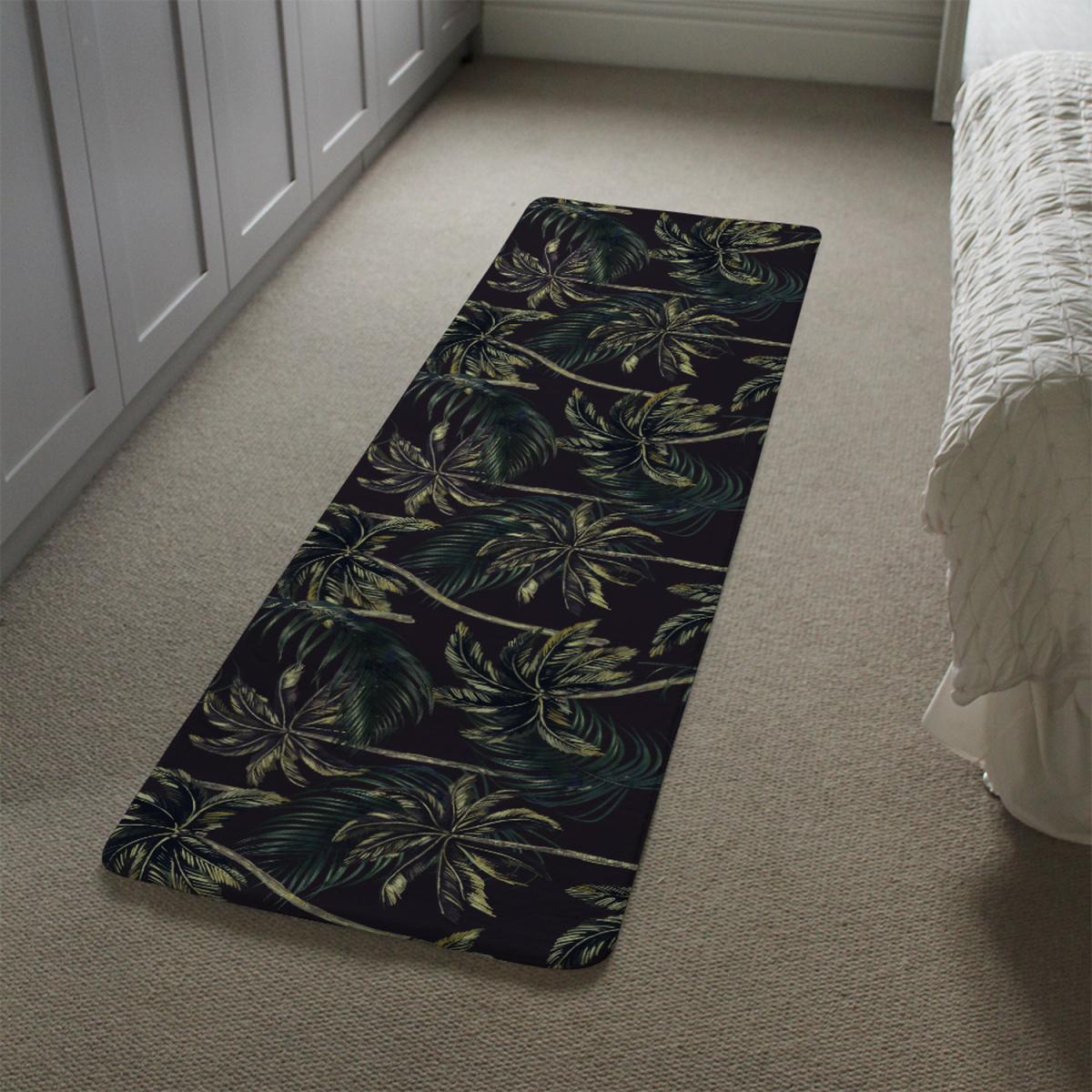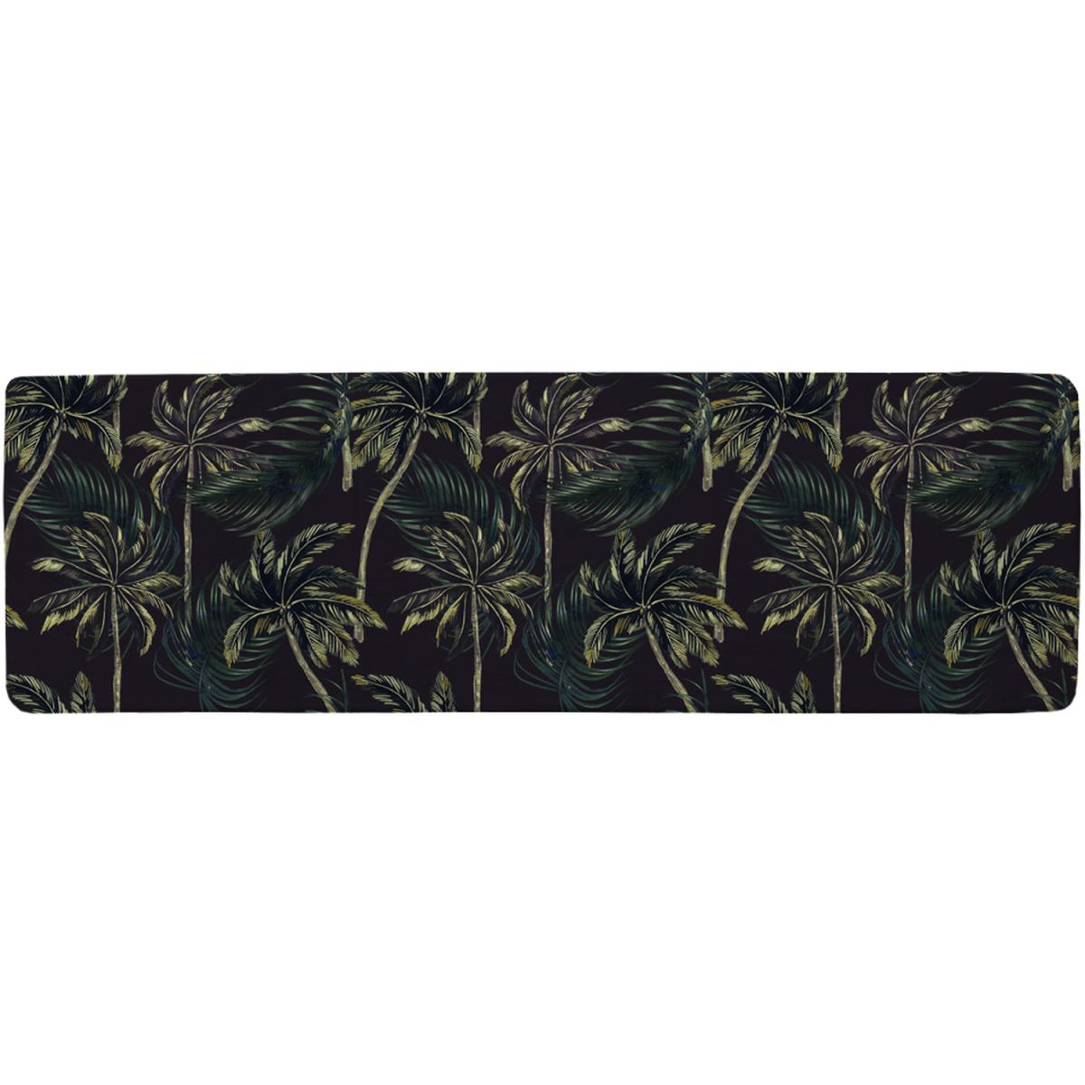 Green Palm On Black Runner Rug - Black