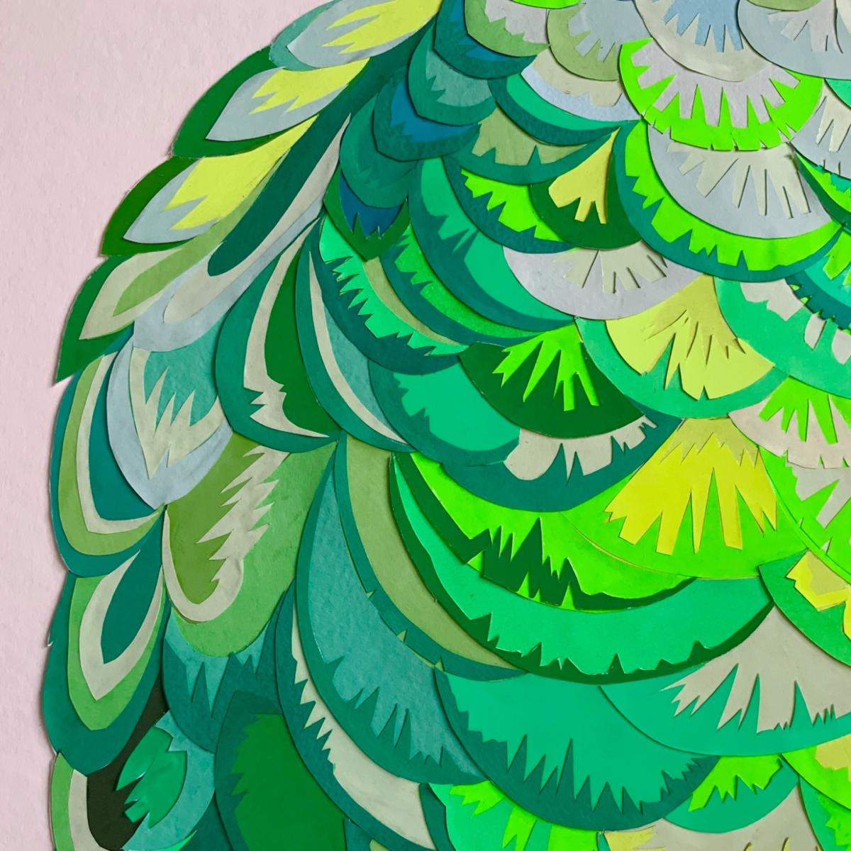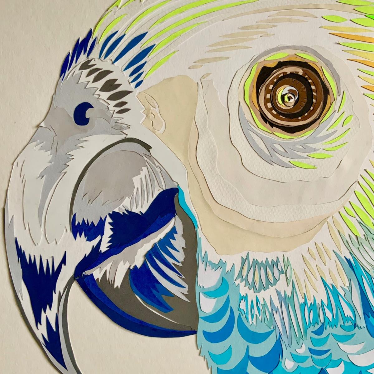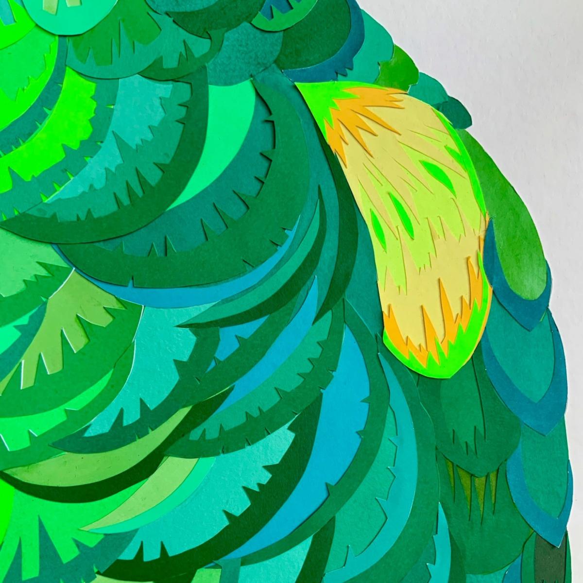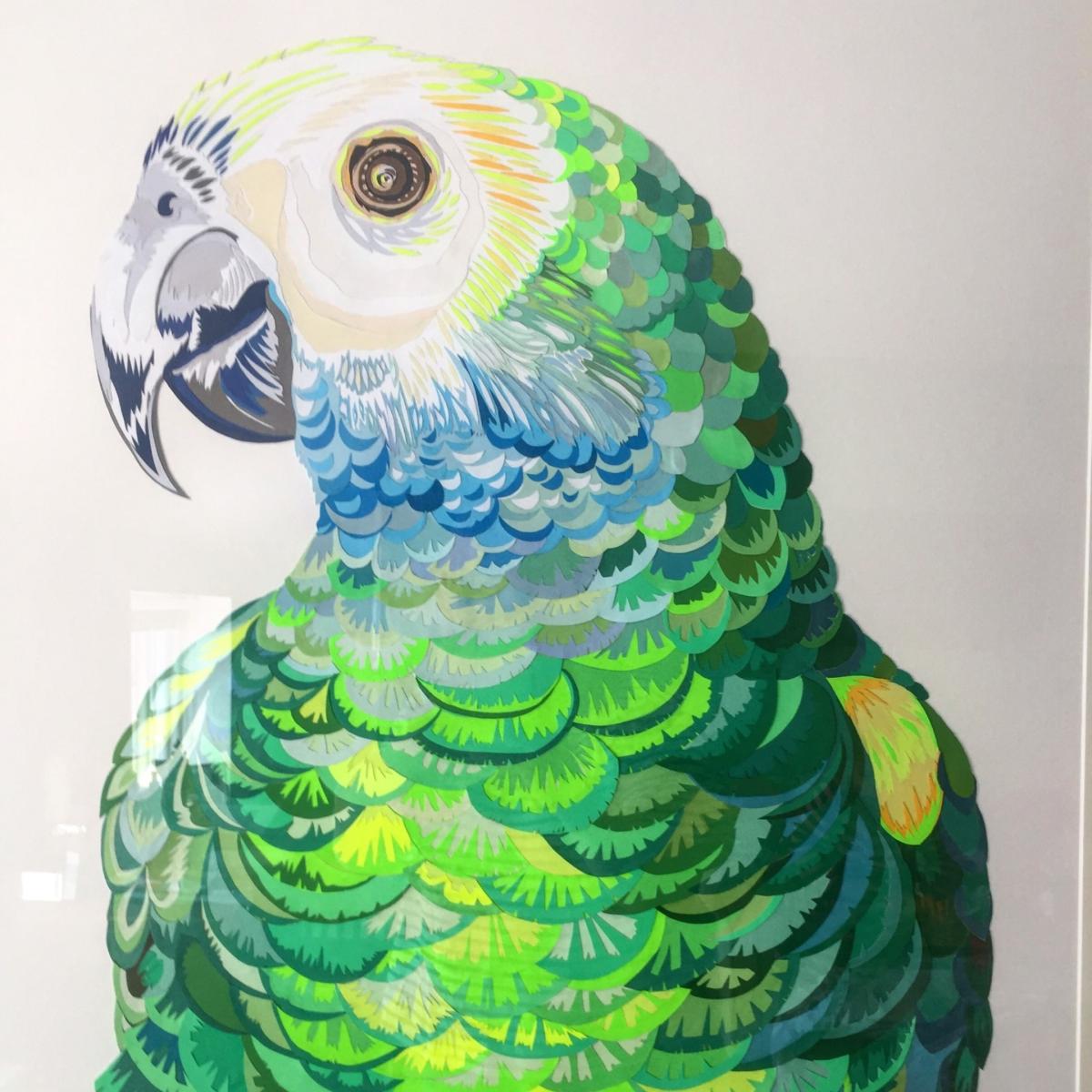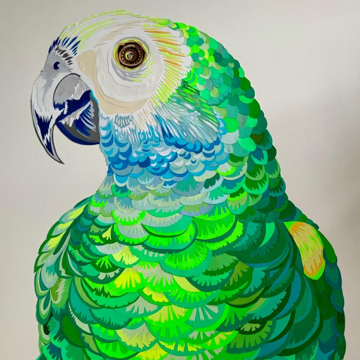 Green Parrot Portrait Original Papercut Artwork Chloe Croft London Limited