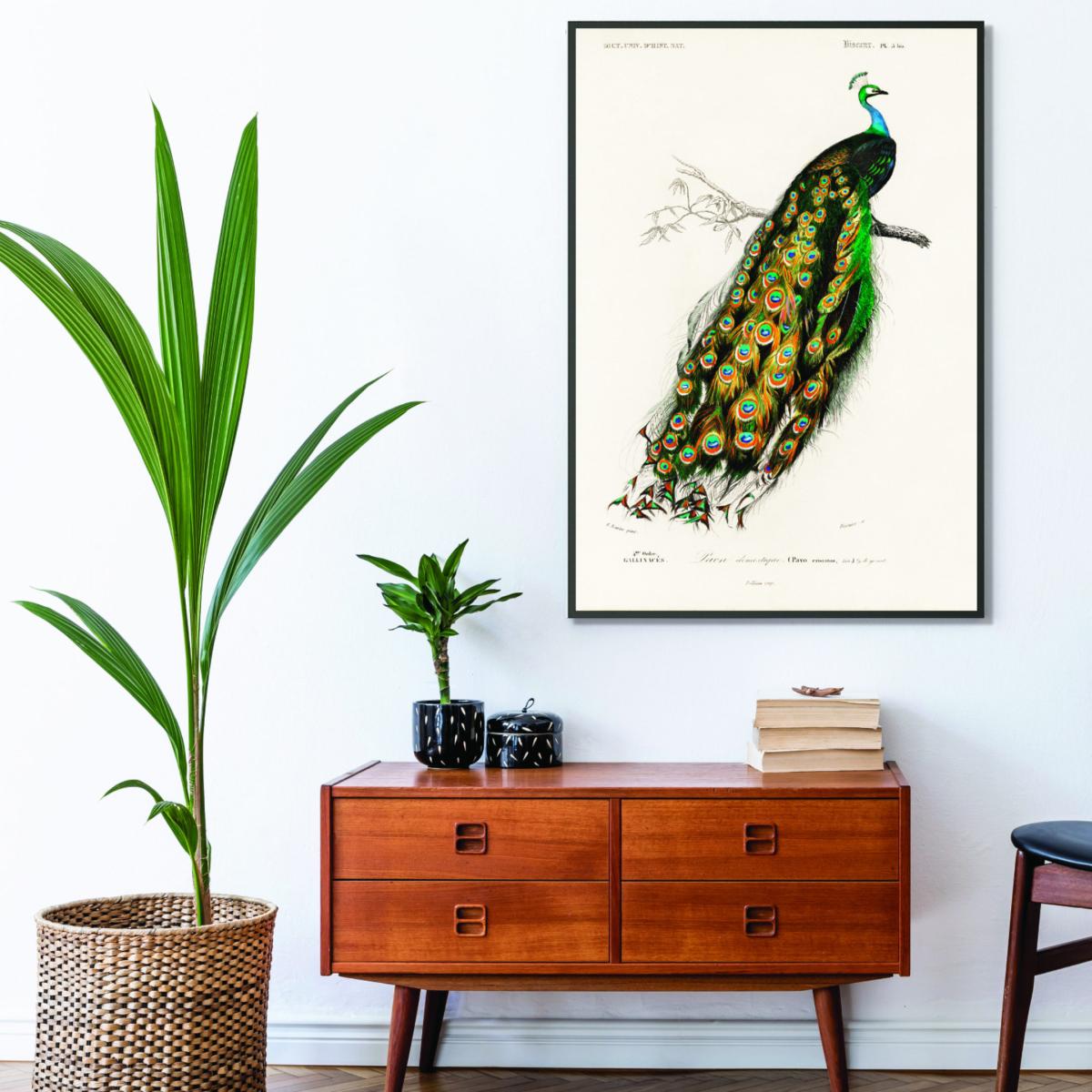 I really like this Green Peacock print for its subtle yet striking colour palette and detailed illustration. It works especially well in eclectic, botanical or modern interiors, adding a touch of nature-inspired elegance without overwhelming the space. To style it effectively, consider pairing it with minimalistic frames or a light colour wall to let the artwork stand out. It’s versatile enough to hang in living rooms, bedrooms, or even a home office, especially when you want a focal point that’s both sophisticated and approachable. Practical tips include positioning it at eye level and pairing it with similar natural accents-think potted plants or textured textiles-that complement the peacock’s colours and theme.