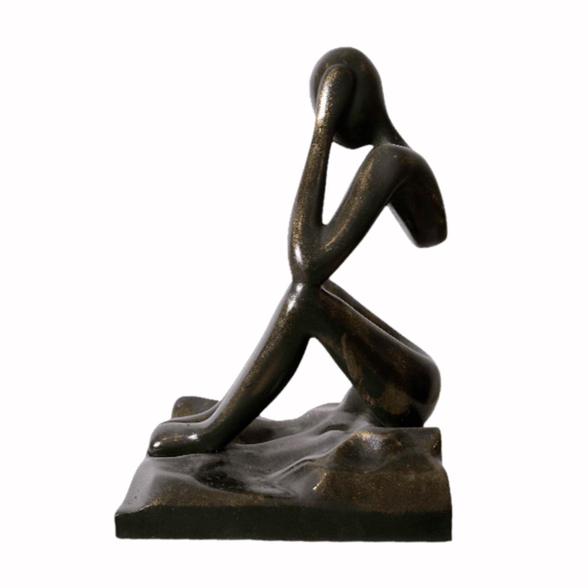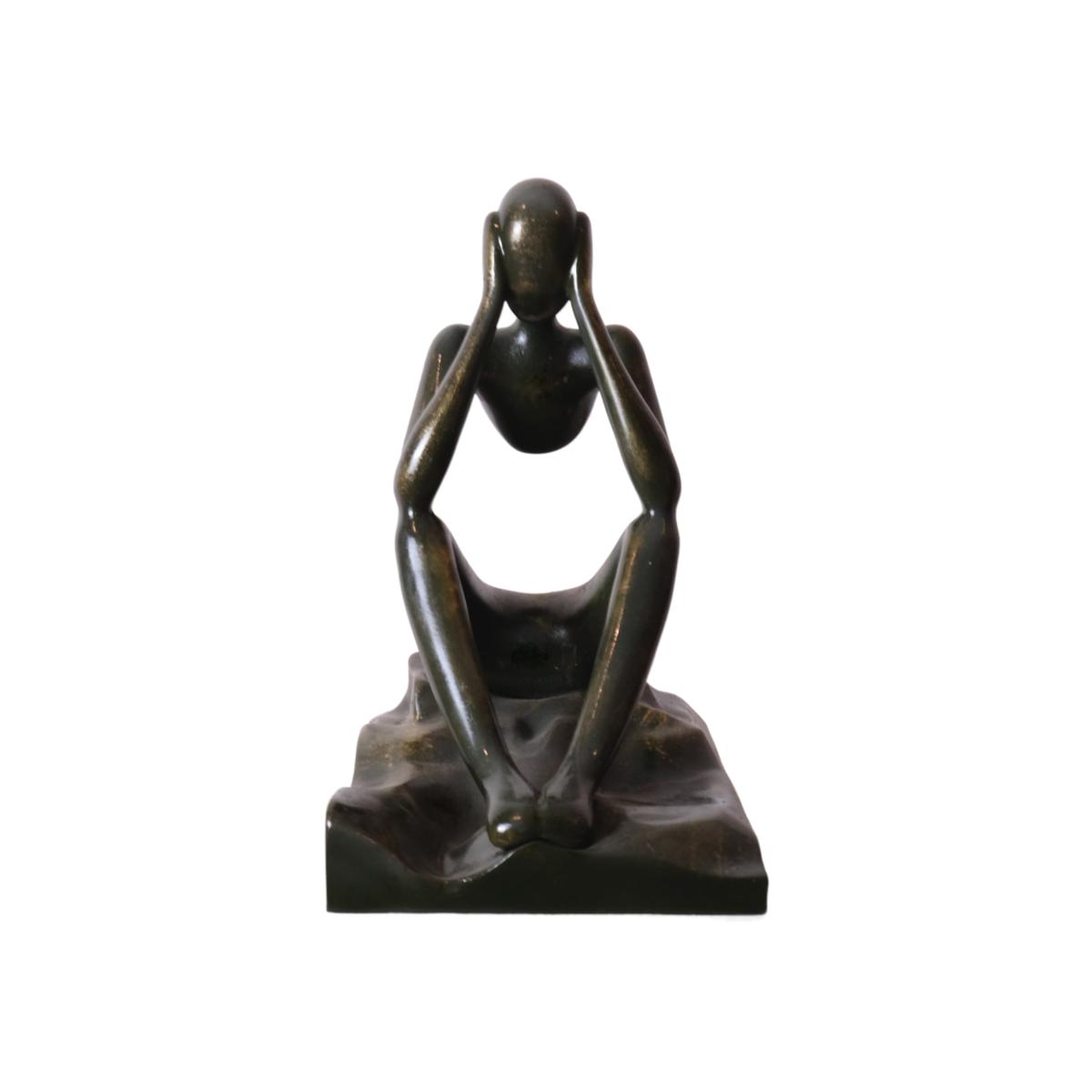Introduce a contemplative mood to your space with this Pensive Figure Sculpture, an artistic representation of introspection and calm. Crafted in a seated pose with hands resting on the head, this sculpture captures a moment of deep thought, making it a perfect addition for those who appreciate art with emotional depth. The elegant finish and minimalist form allow it to complement modern and classic decor alike. Ideal for shelves, desks, or coffee tables, this sculpture brings a sense of serenity and reflection to any room. An inspiring gift for art lovers, it’s a subtle yet impactful piece of decor.