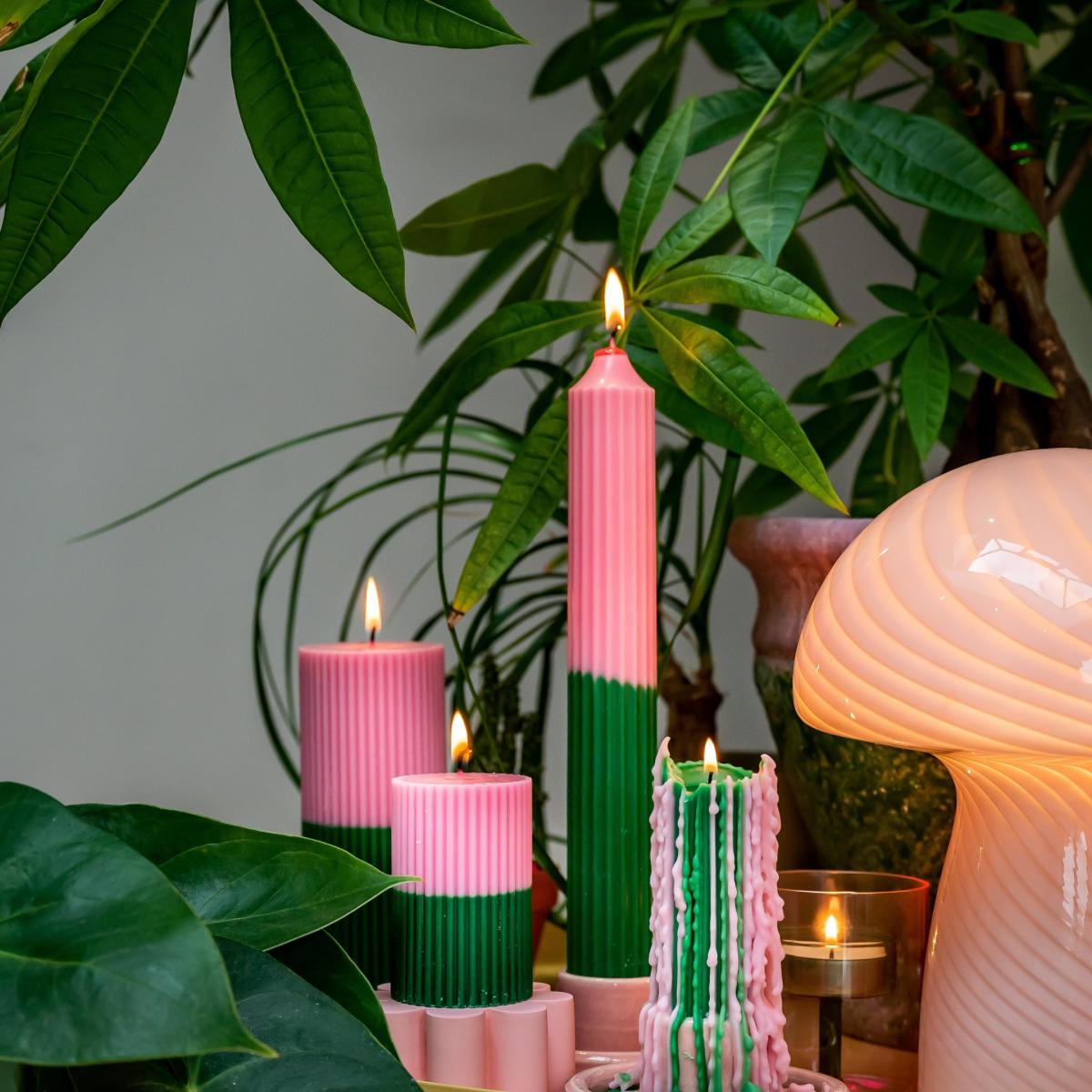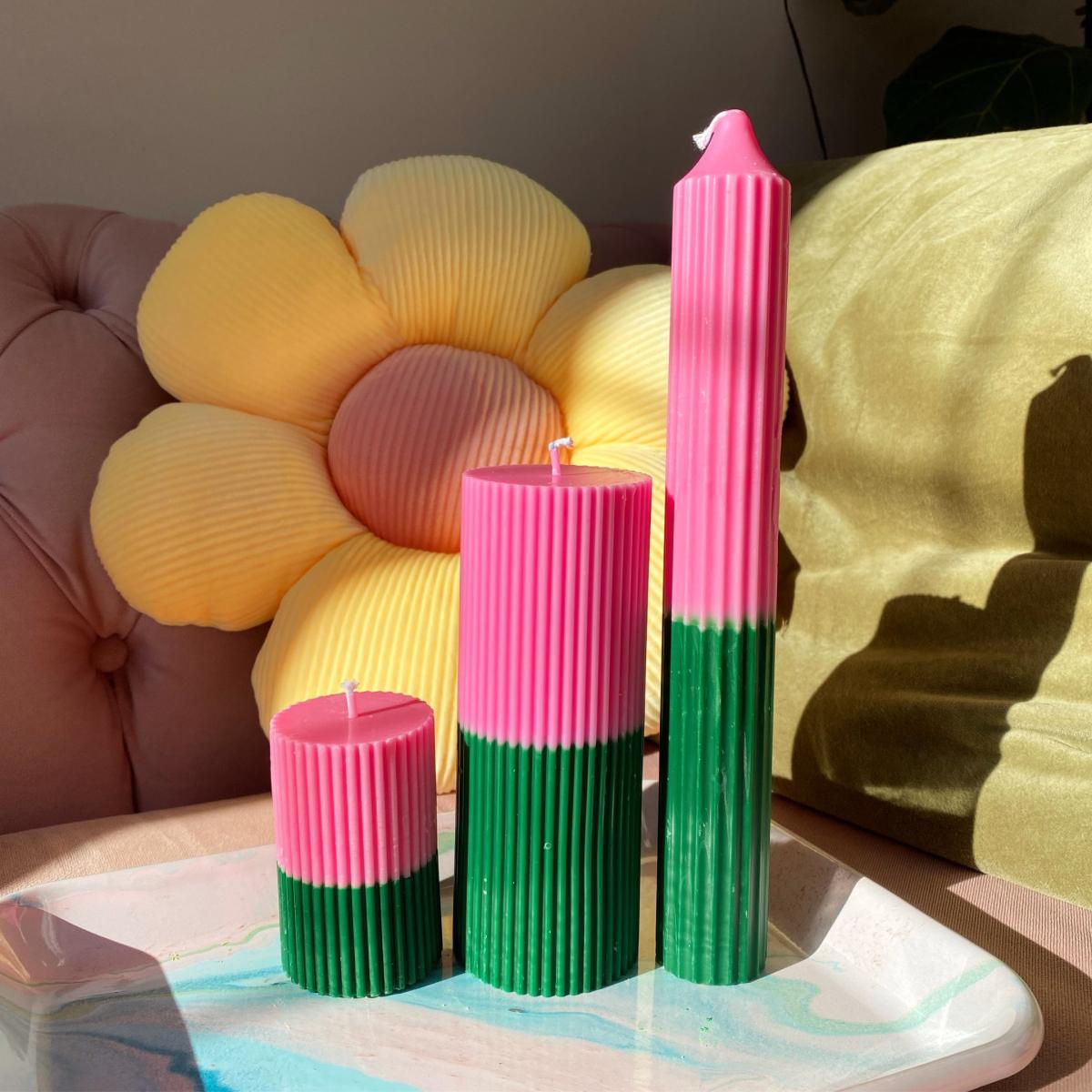 I love this candle for its vibrant colour palette and versatility-it works beautifully in both modern and eclectic interiors. The green, pink, and purple shades add a playful yet sophisticated touch, making it ideal as a statement piece on a coffee table or sideboard. It pairs particularly well with botanical or colour-boosted schemes, but can also serve as an unexpected pop of colour in more neutral rooms. Practical styling tips include grouping it with other candles of varying heights for visual interest or placing it in a minimalist space to bring a splash of colour without overwhelming. Its crisp lines and bold hues make it a standout, perfect for adding personality to both cosy nooks and more polished settings.