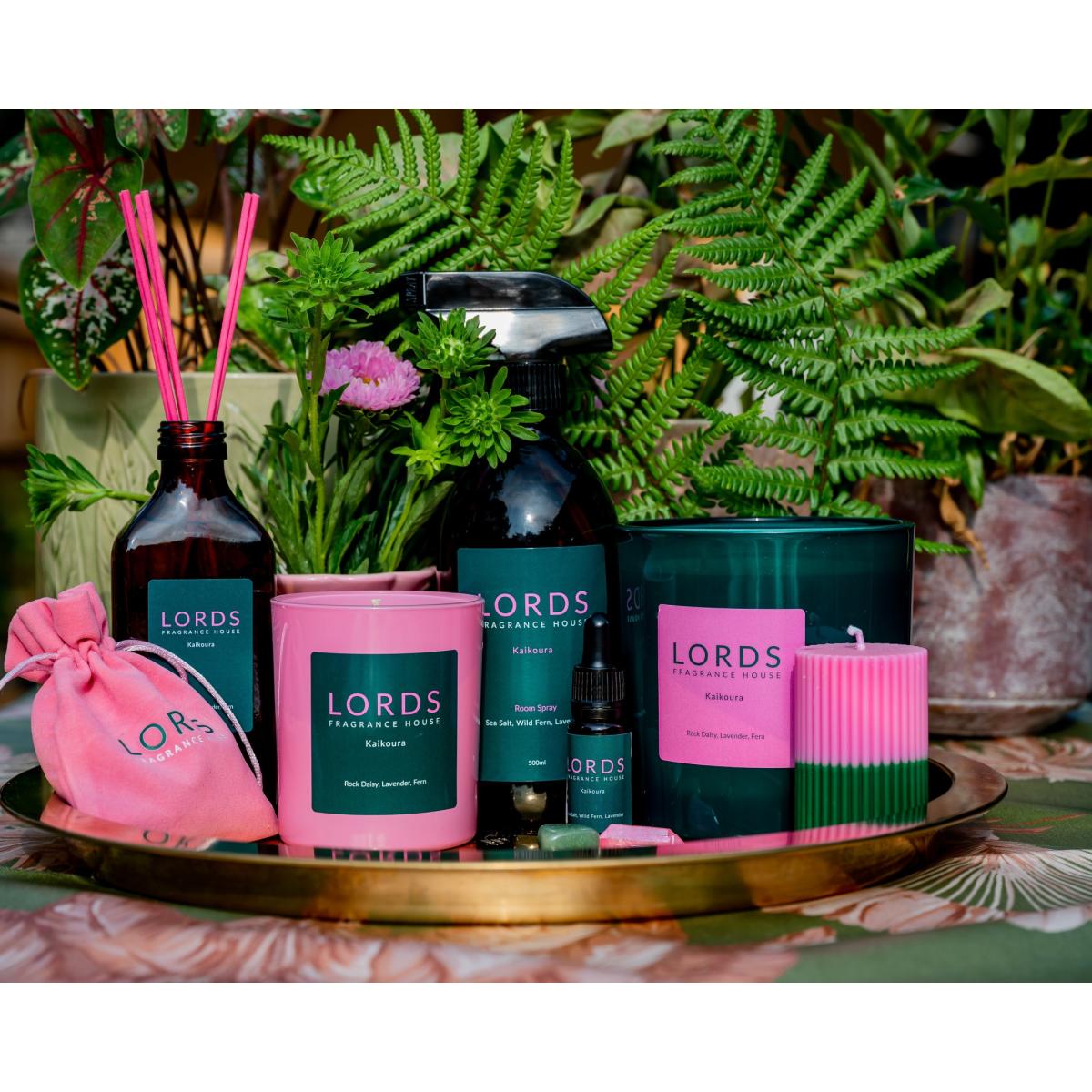 Green / Pink / Purple Small Pillar Candle Lords Fragrance House