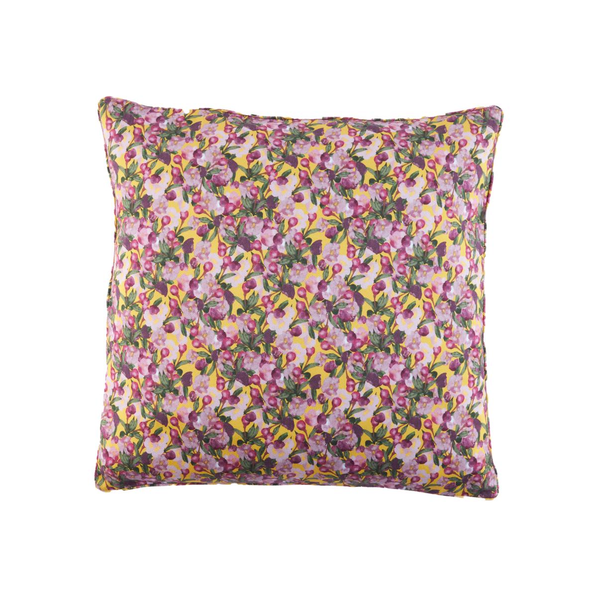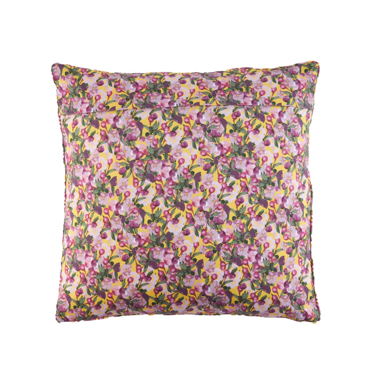 The most romantic and indulgent flower print is inspired by the beautiful cherry blossoms against a deep blue sky. We call it Romance is Dead - is it? We have two variations; get it with a bold yellow contrast or with the more sky-like blue background. A perfect match with its ruffled sister or a great color combo in blue. Ethically made in India from 100% Certified Organic Cotton. Size: 20" x 20" / 50x50cm Comes without a filler.