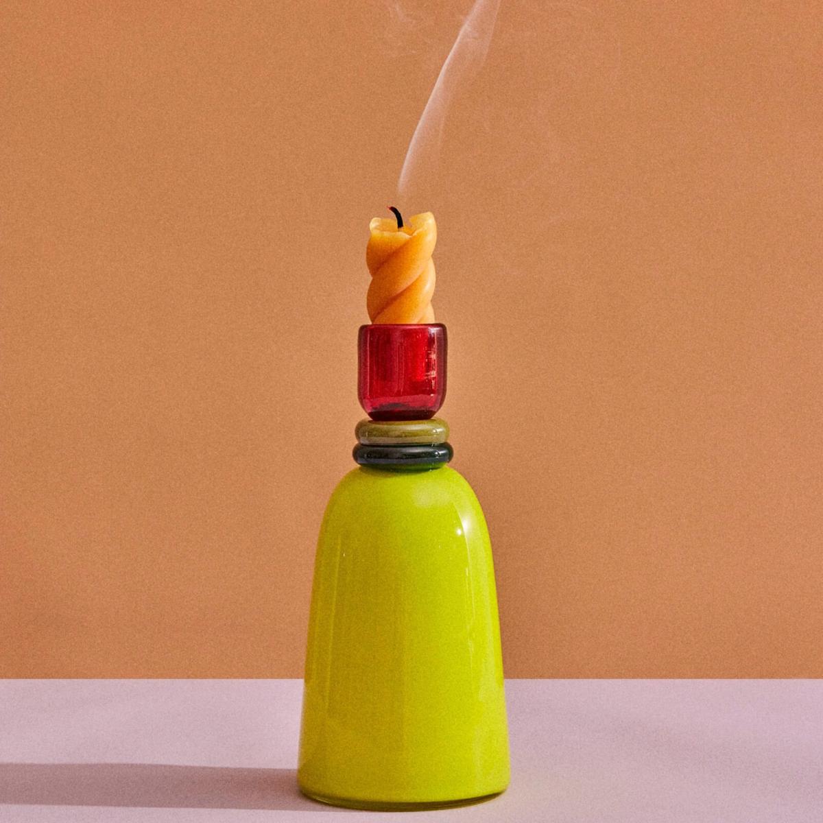 Elevate your candles with these lovely multicolored candlesticks! Mix and match different pieces to create your own set to adorn your table or mantle with bold, Memphis inspired colors and shapes. Each Candlestick is handblown, therefore there will be some variation, even with a set. These variations are what make each piece unique!