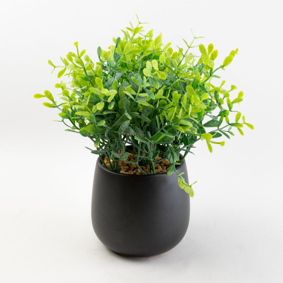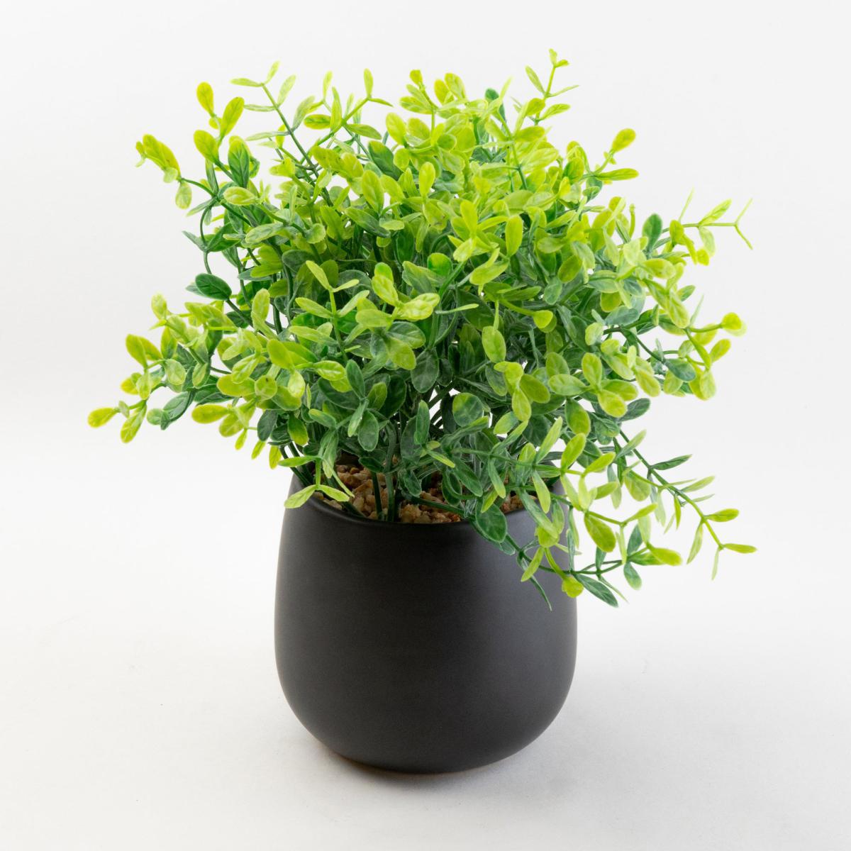I love this one for its sleek, modern look and versatility. The black pot adds a touch of sophistication, making it a great statement piece in contemporary or minimalist interiors. It works particularly well in offices, kitchens, or living rooms where a pop of greenery is needed without the maintenance of real plants. To style it effectively, consider pairing it with lighter or neutral-coloured surroundings to make the green pop, or group it with other monochrome accessories for a cohesive look. Practical tip: place it on a shelf or side table to add visual interest, and rotate it with seasonal decor to keep your space fresh.