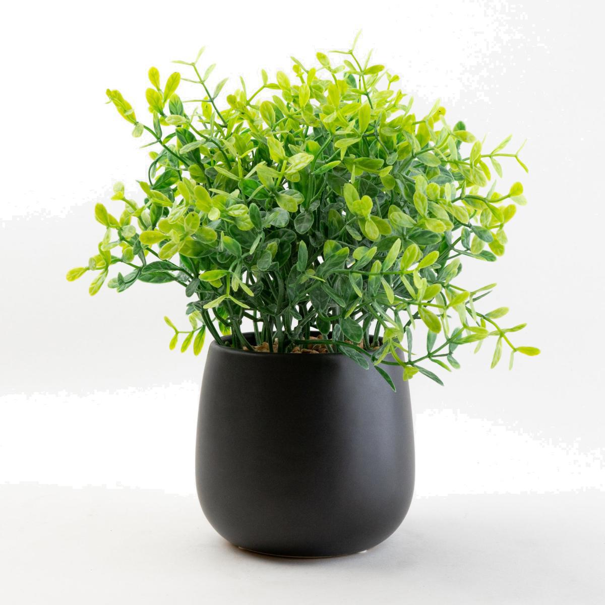 Green Plant in a Black Pot Black