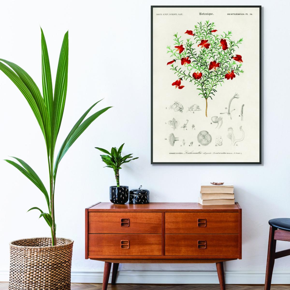 The Green Red Leschenaultia print is a striking piece that works beautifully in both contemporary and eclectic interiors. I love how its vivid colours and botanical detail can add a burst of interest to a neutral palette or complement existing greenery. It’s particularly effective in spaces where you want to create a nature-inspired vibe, like a living room or a hallway. To style it well, consider pairing it with minimalist frames or placing it above a simple sideboard to let the artwork stand out. You could also layer other botanical prints nearby for a curated gallery wall or keep it solo for a clean, focussed look. This piece is versatile enough to work with both modern furnishings and vintage finds, making it a great addition to many interiors.