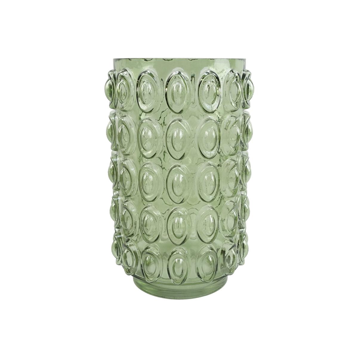 Green retro style glass vase with a bubble pattern. This is suitable for both real and artificial flowers. These glass vases are hand finished and there may be small differences between them. We have also included some pictures along with some of our artificial flowers to give an idea of size and usage but no flowers are included with this vase.