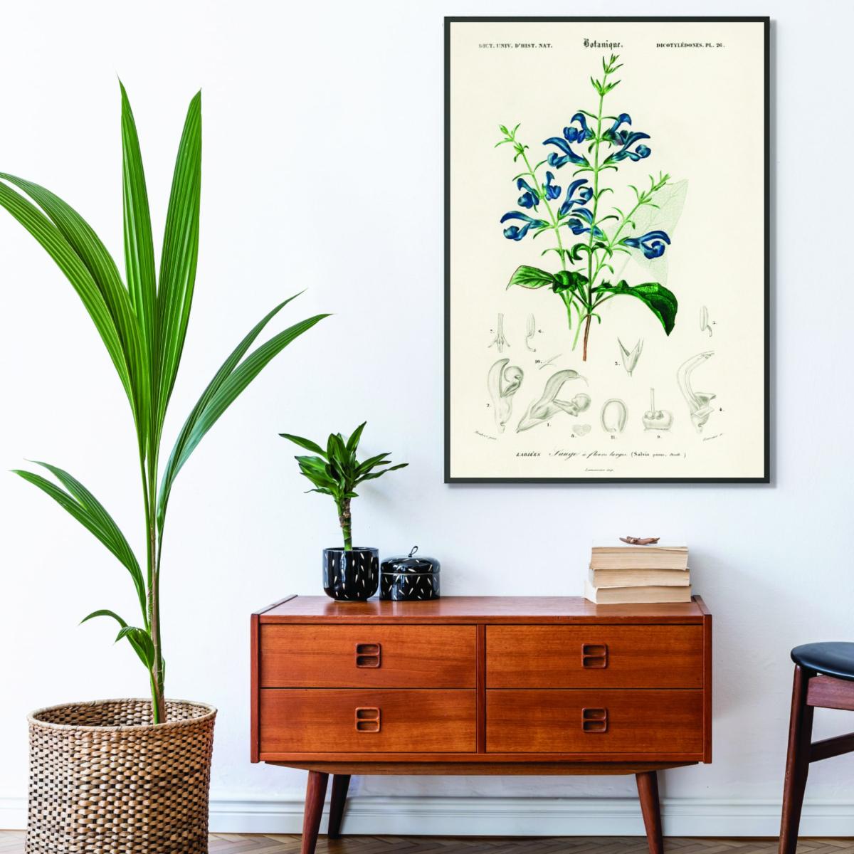 I really love the Green Salvia Patens print for its fresh, botanical appeal-it adds a vibrant touch without overpowering a space. It works particularly well in light, airy interiors like living rooms or kitchens, where it can complement natural materials or a neutral colour palette. For practical styling, consider pairing it with simple, modern frames to let the illustration shine, or display it alongside potted plants for a cohesive botanical theme. This piece is versatile enough to enhance both contemporary and rustic interiors, making it a great statement without needing a lot of fuss.
