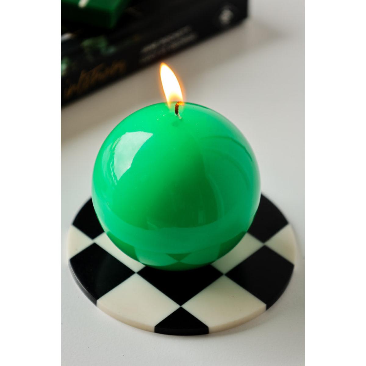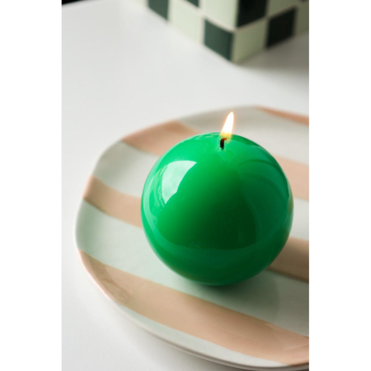 About The Green Sphere CandleThe Green Sphere Candle introduces a contemporary take on classic candlelight in the home. Designed in a simple sphere shape, the candle features a beautifully bold lime green colour palette. Measuring H10cm with a diameter of 7.5cm, the green sphere candle is a fabulous alternative for small pillar candles and traditional tea lights. Please note that this candle has an approximate burning time of 17 hours. Why We Think You’ll Love The Green CandleThere is something magical about the glow of candlelight as the sun sets. As a result, you can never have too many candles in your collection! Designed in a modern sphere shape, this brightly coloured ball of wax is the perfect piece to transform any space with a pop of colour. So have fun with your styling and introduce the green candle to your coffee table, sideboard or shelves amongst quirky collected treasures, design books and plenty of plants. Alternatively, display a few sets of the Green Sphere Candle and matching pink design with vibrant glass candlesticks on the mantelpiece for a creative candlelight feature with wow factor!