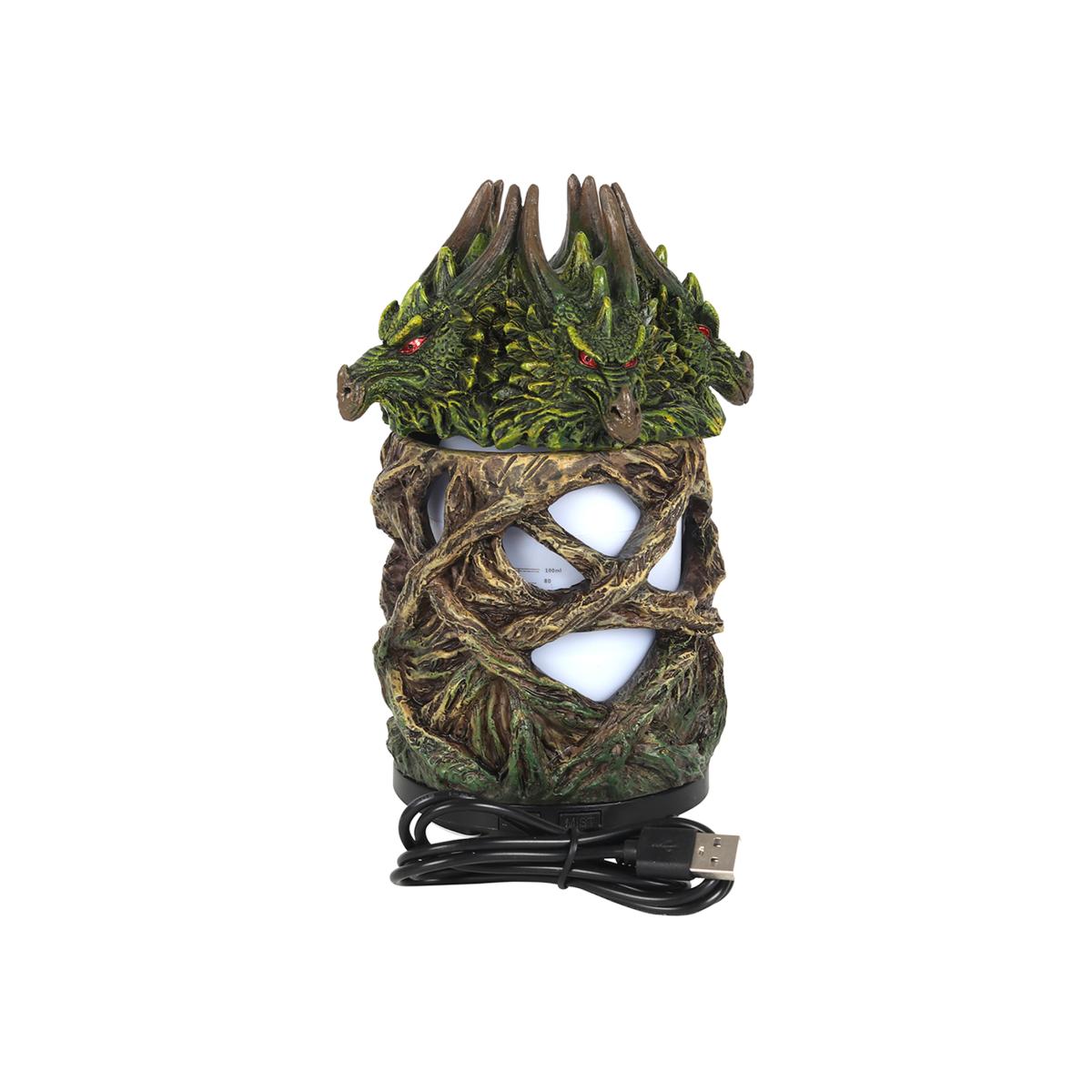 Accessorize your home with this detailed green dragon head aroma diffuser which glows when in use. Add a few drops of your favourite fragrance oil to some water and use the light and mist buttons to create your preferred effect. The diffuser has a 100ml liquid capacity, 4-6 hours runtime with auto shut-off feature. Power adapter and instructions included. Read instructions carefully before use. The diffuser has a 100ml liquid capacity, 4-6 hours runtime with auto shut-off feature. Power adapter and instructions included. Read instructions carefully before use.