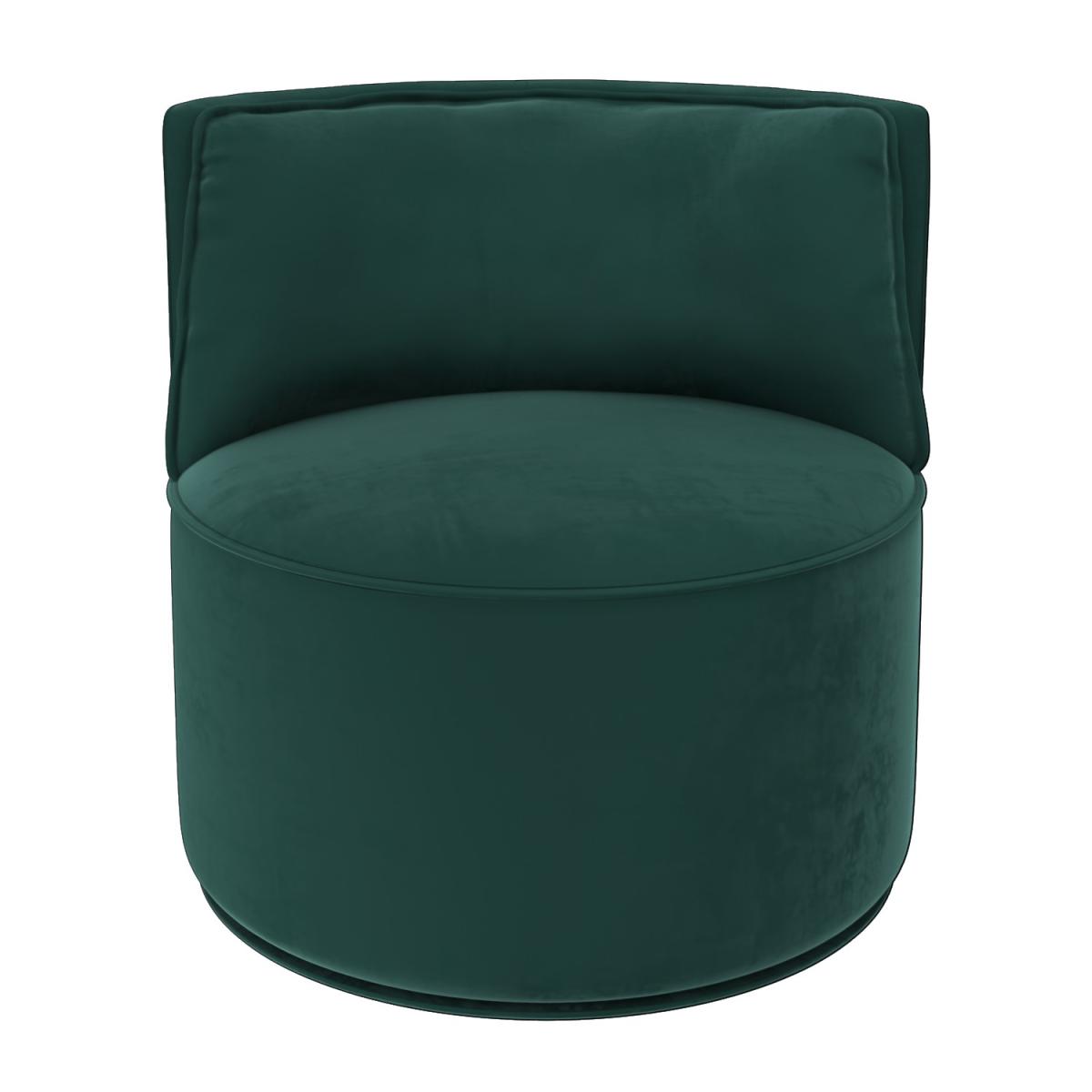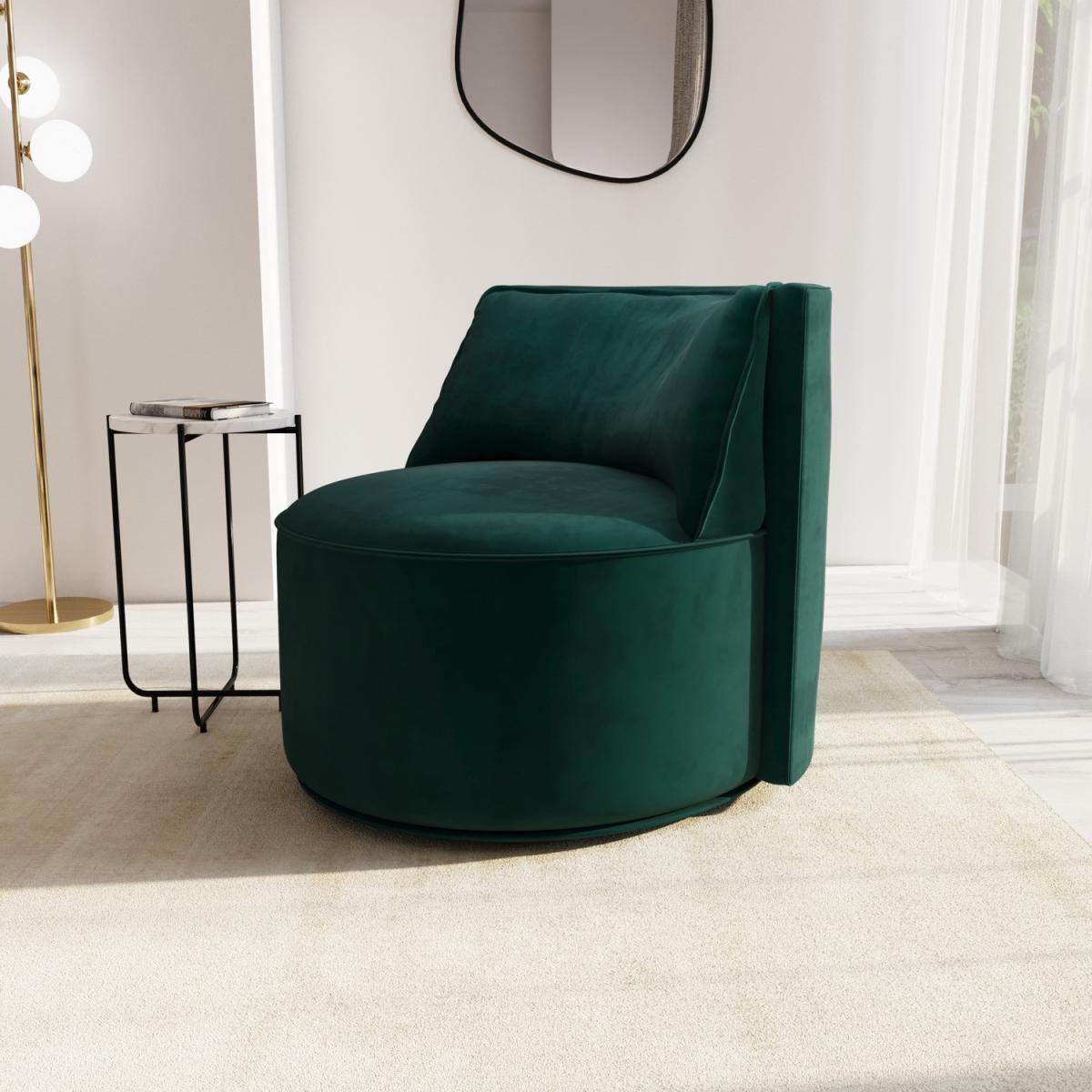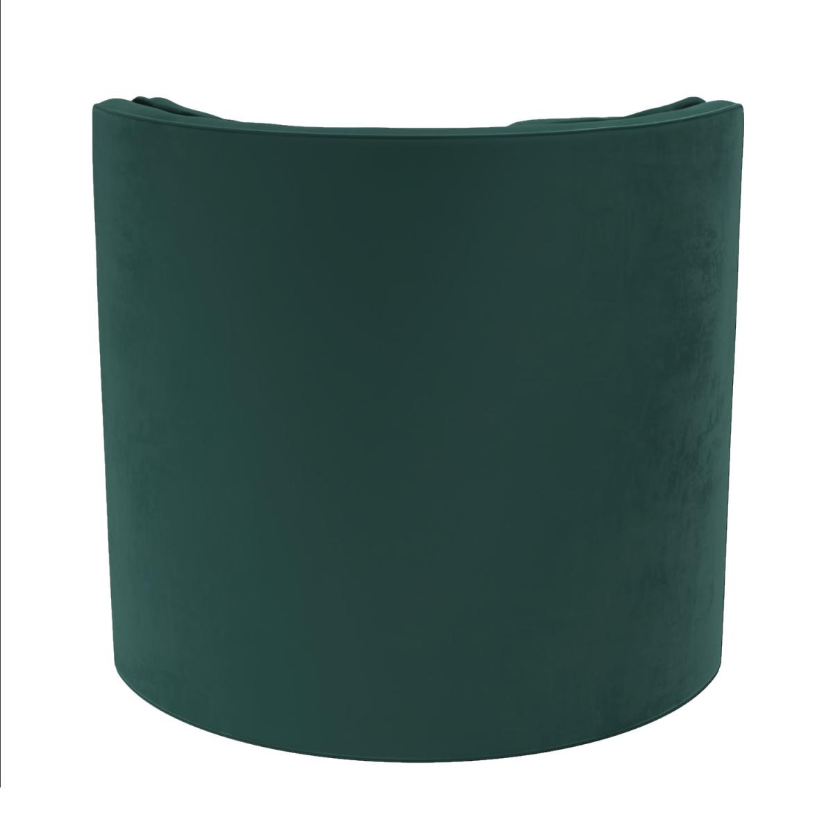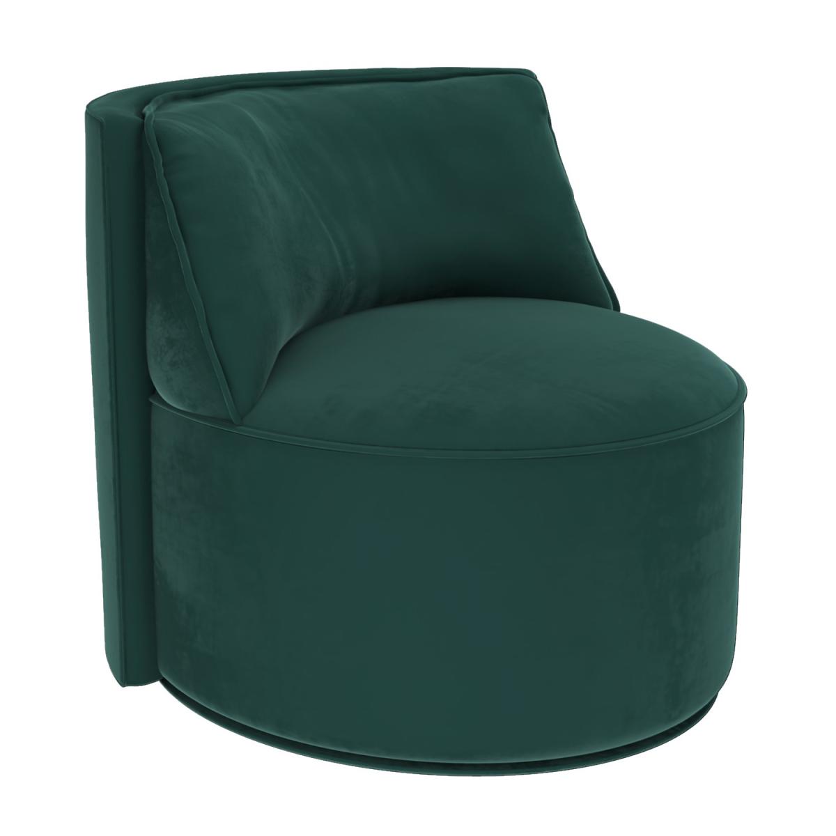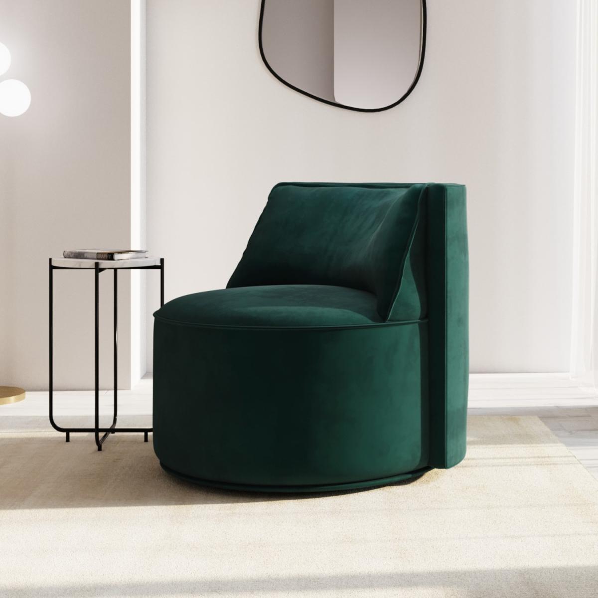 This green velvet armchair is a fantastic piece for adding colour and texture to a variety of interiors. I love how its rich hue can serve as a statement piece in neutral settings or complement other bold colours in eclectic spaces. Its rounded shape and plush velvet material make it both stylish and inviting, perfect for a cosy reading nook or as an accent in a contemporary or modern scheme. For styling tips, consider pairing it with metallic accessories or monochrome cushions to enhance its luxe appeal. It's versatile enough to work well in living rooms, bedrooms, or even cellar bar-style spaces, bringing a sense of comfort and sophistication wherever it's placed.