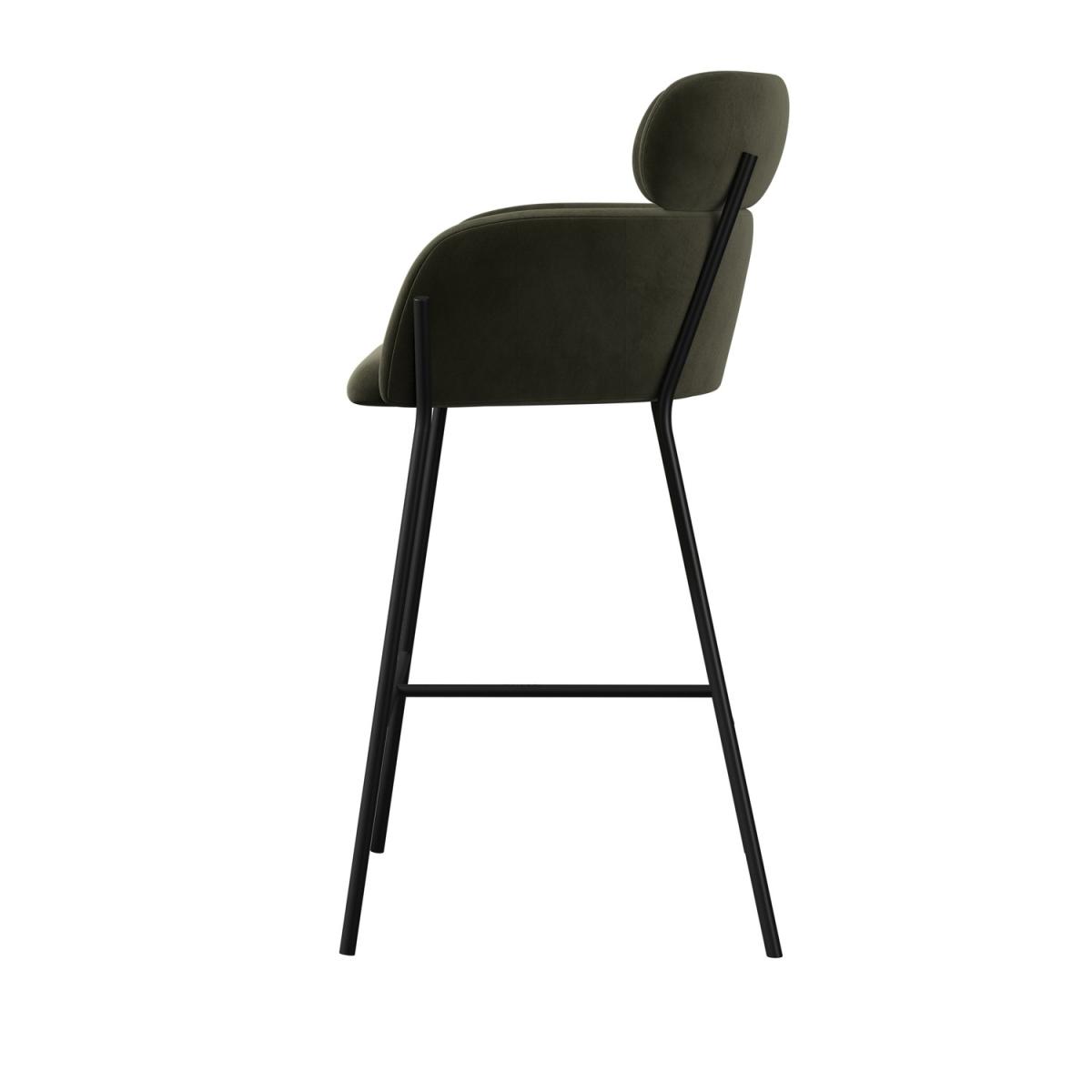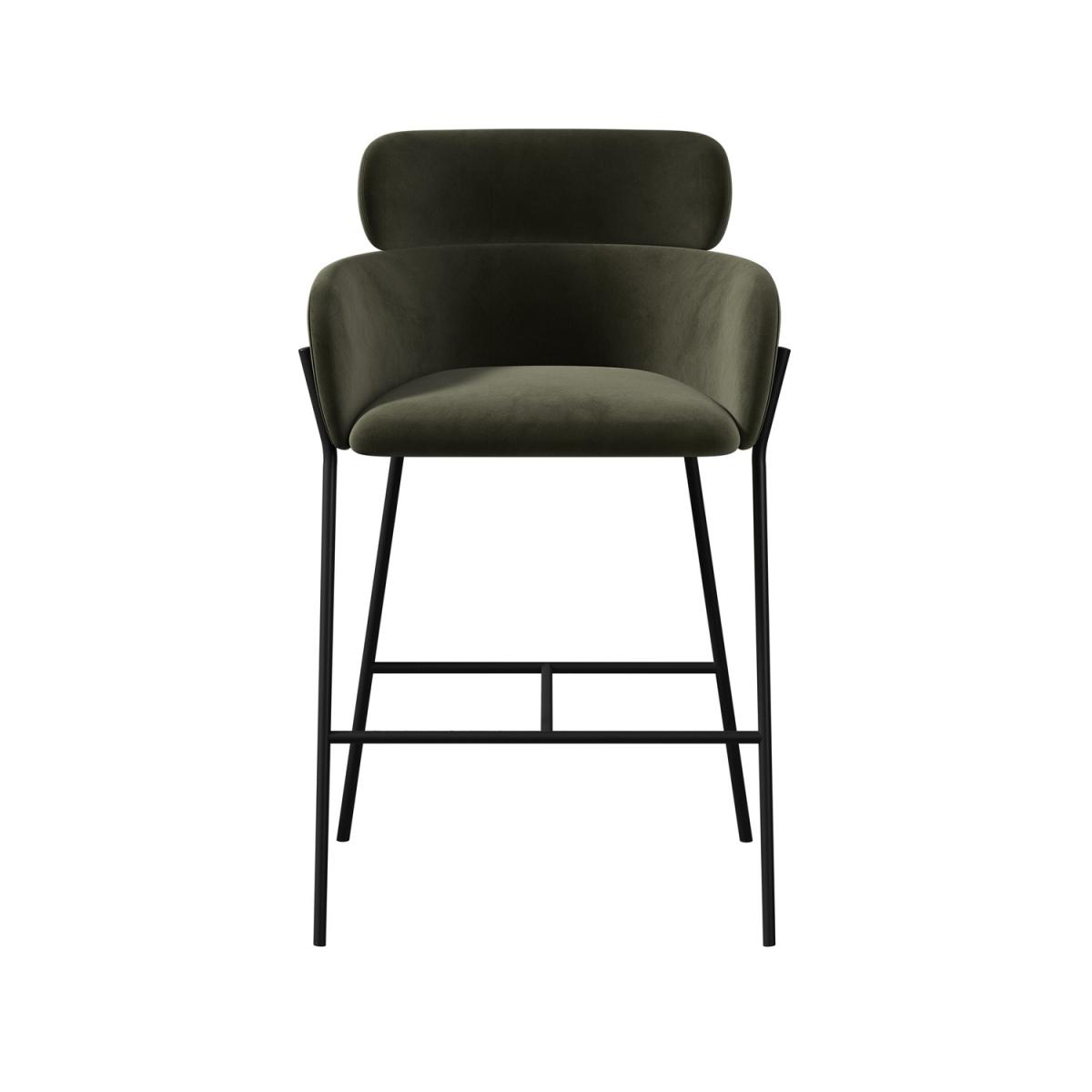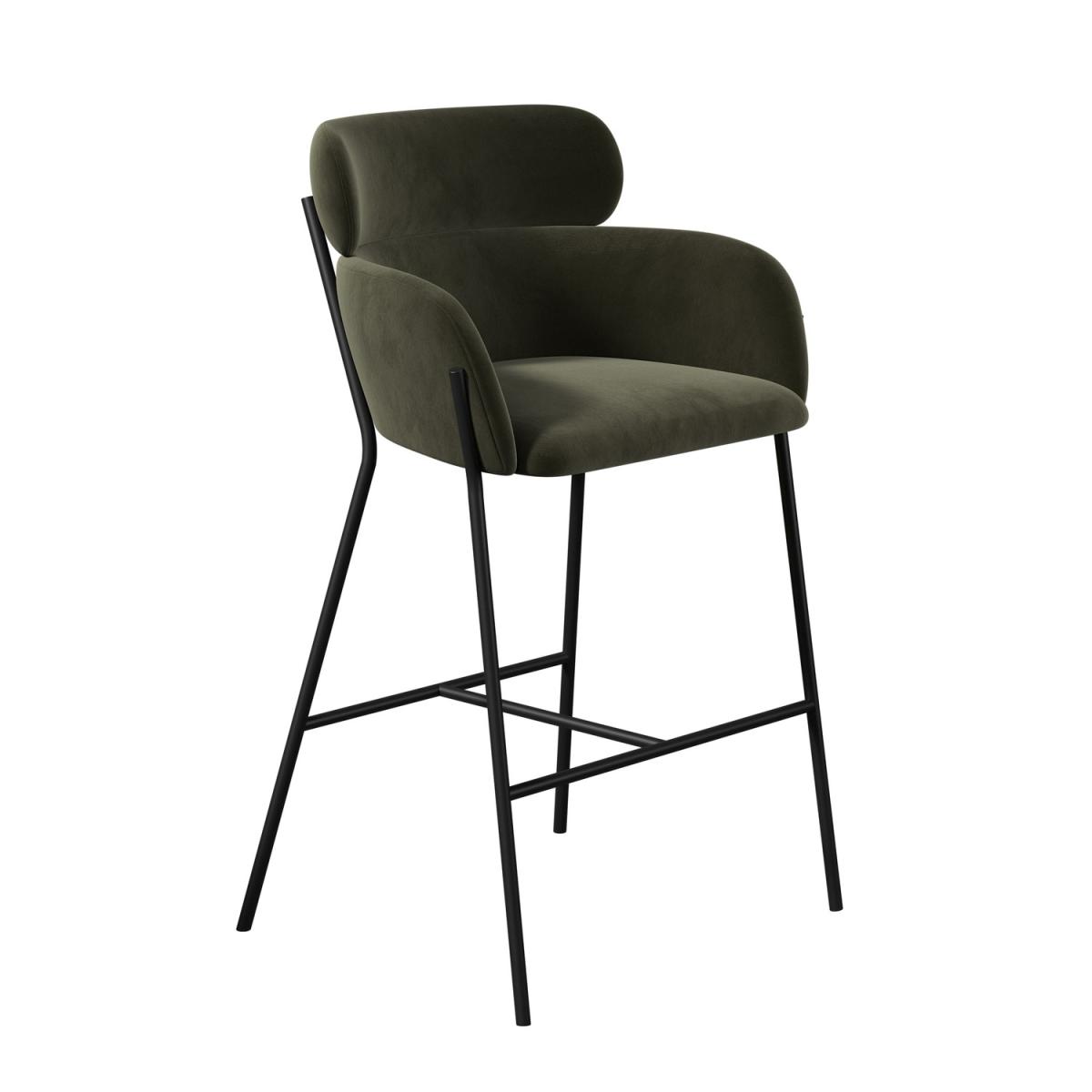 The sleek, modern silhouette wraps around the seat to provide visual interest and stylish support, perfect for creating a standout kitchen setting. Luxuriously soft green velvet made from recycled plastic bottles delivers an elegant look while reducing environmental impact. Generously cushioned with soft foam, the seat provides comfort from working from home, dinner time, or morning coffees. The vibrant green velvet seat, complemented by sleek black metal legs, adds a bold, modern touch to your kitchen, enhancing both style and durability. Complete the look with our matching Isla dining chairs, creating a seamless kitchen-diner. The modern Isla kitchen stool boasts a unique back and arm design that’s guaranteed to create a sophisticated and minimalist statement in any kitchen area. It’s filled with spongey foam to make the perfect comfy seat. The opulent green velvet fabric, made from recycled plastic bottles, not only looks stunning in your home but is also great for the environment. The stool is completed with sleek black metal legs, adding a touch of modern elegance to any space.