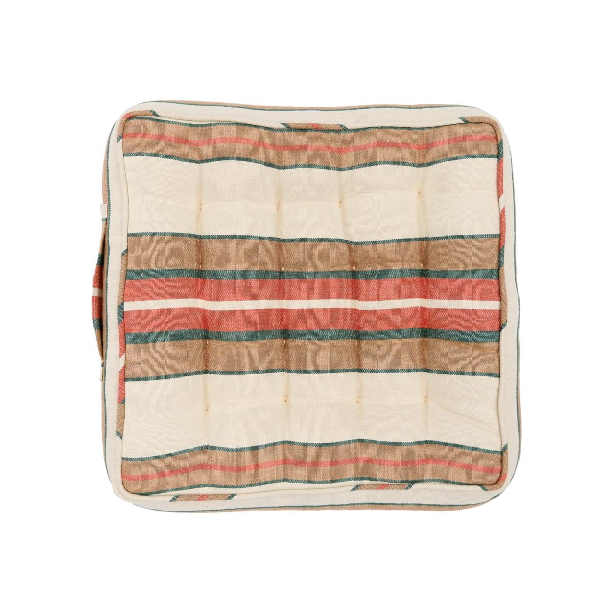 Revamp your dining chairs with our stylish and comfortable new padded cushions. Made of woven natural linen, the HERINA STRIPE linen chair cushion is hand sewn and finished with a piped edge that matches the fabric. Filled with thick poly foam insert with polyester cove, each cushion is decorated with a beautiful linen handle. MINDTHEGAP's distinctive cushions show beautiful patterns and details of our fabrics. Made on heavy linen or cotton pile velvet, all cushions are printed in Romania by using traditional methods. To achieve a unique vintage effect and to get more softness, our linen cushions are stonewashed finished.