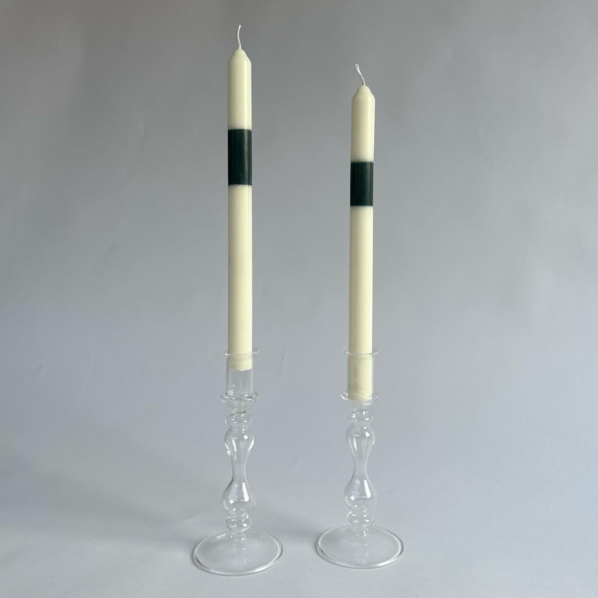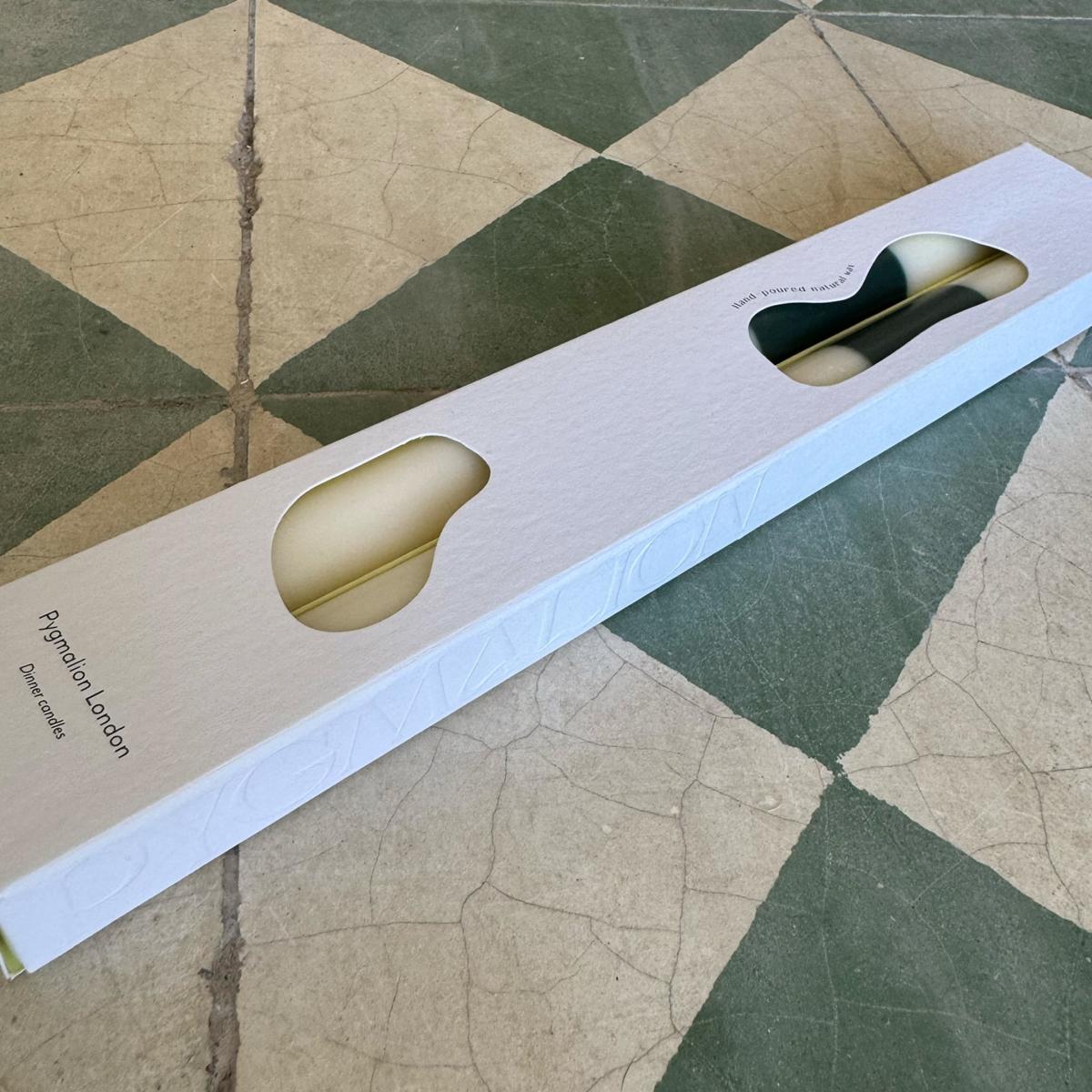 If art and ambience had a baby. Dinner candles like you've never seen before - hand-poured using 100% natural wax, natural dyes and pure cotton wicks. Pygmalions are designed for the joy of hosting: good food, great company and memorable ambience. The packaging was dreamed up using this same ethos - bringing luxury, design, sustainability and fun together to create the perfect gift. The candles are 29cm allowing for a leisurely 10+ hour burn time. Petersham candles are hand-poured into colour blocks of off-white and racing green wax and come packaged as a pair.