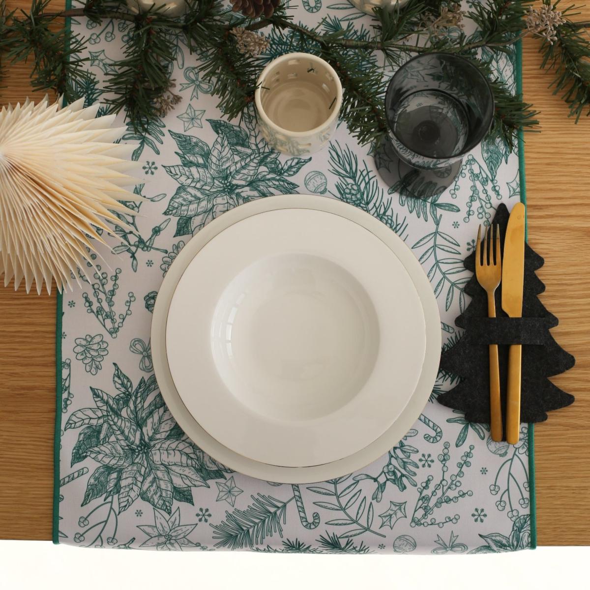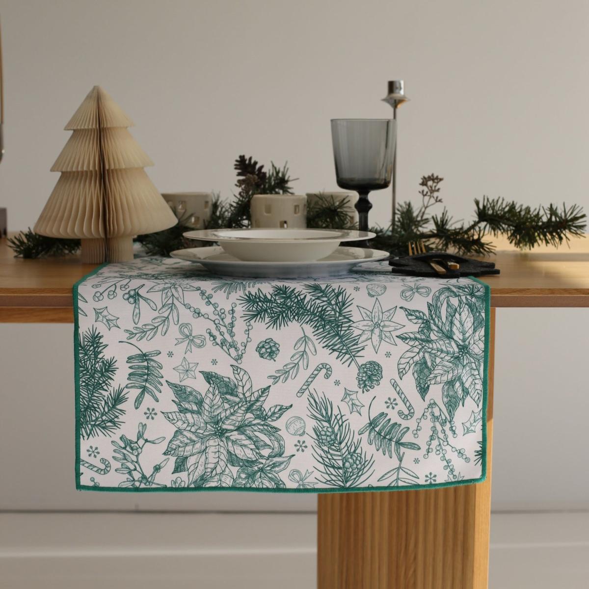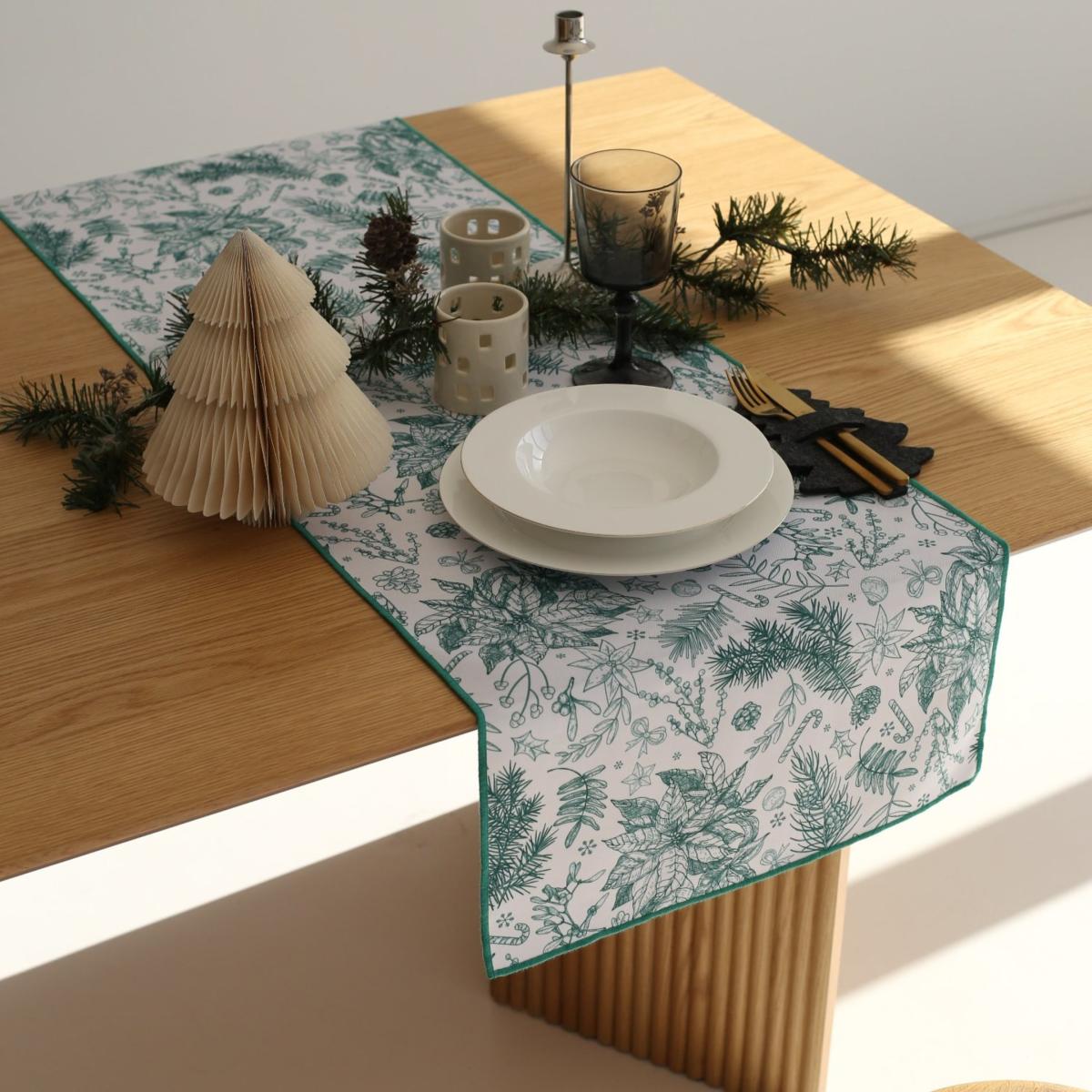 Green / White Winter Pine Runner - Christmas Collection | One Size | Km Home Collection