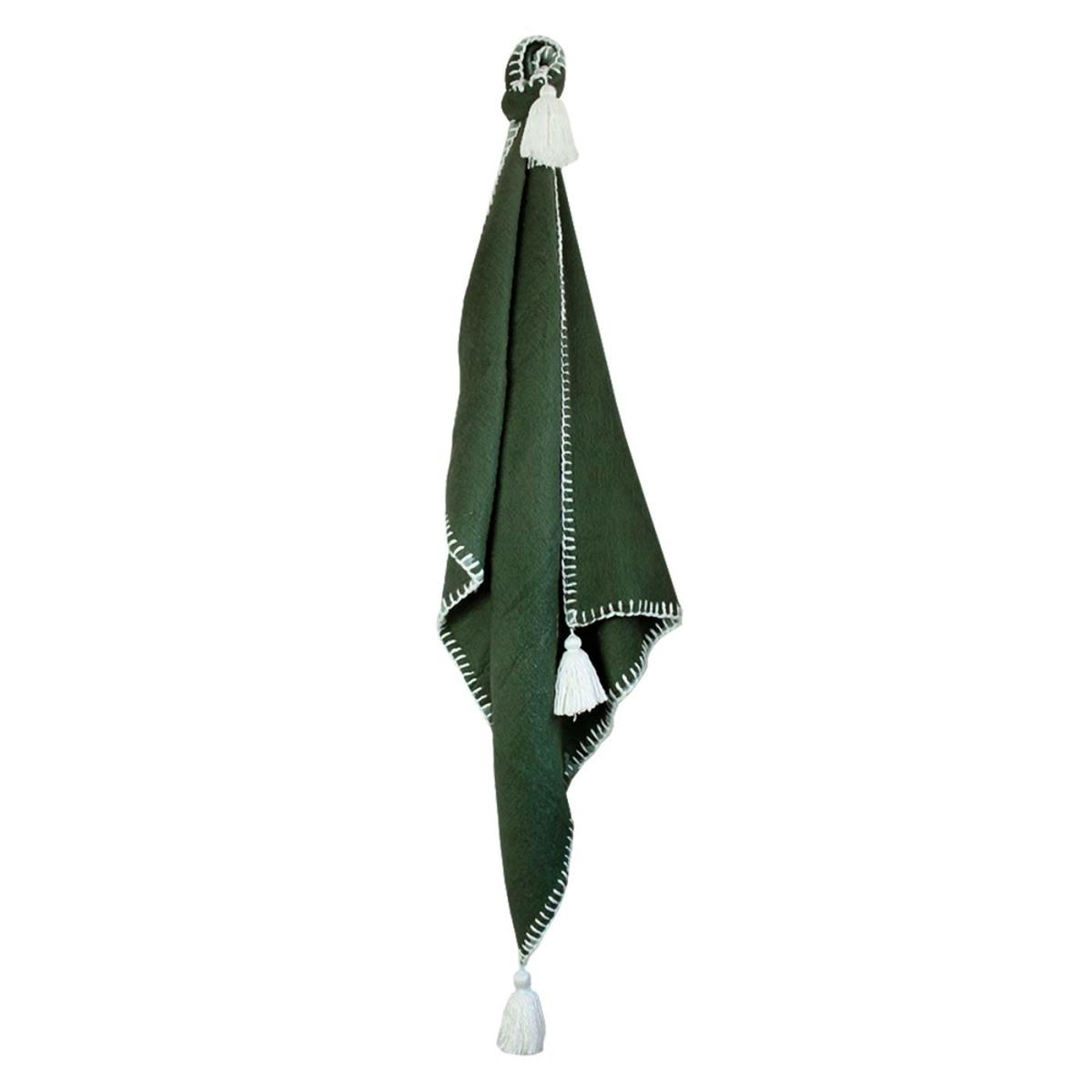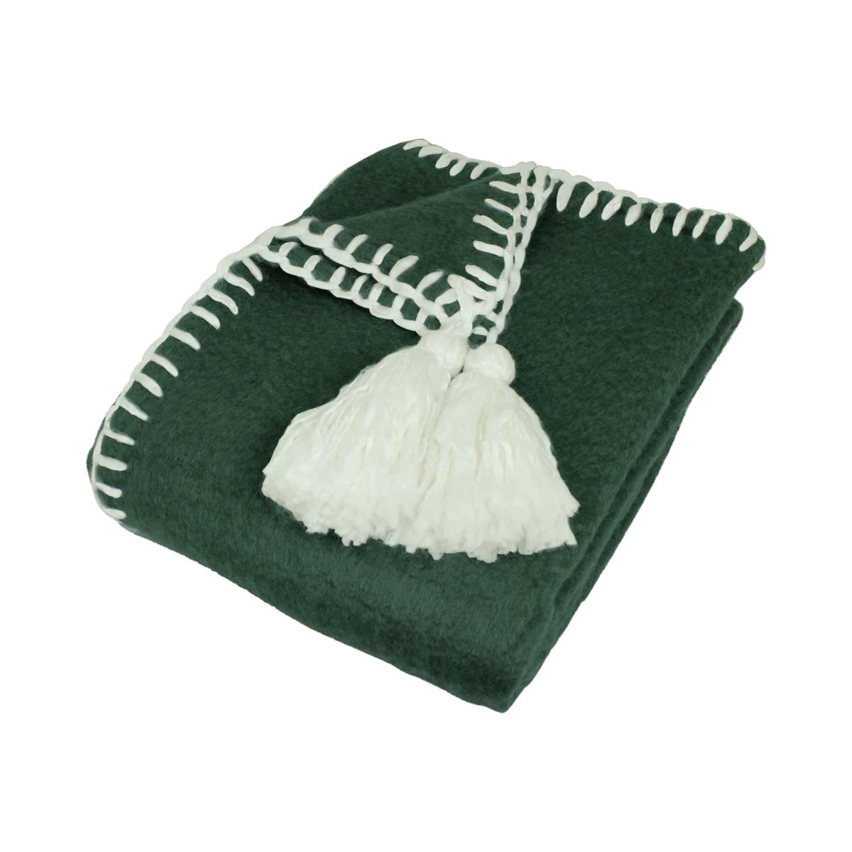 Green Wool Trim Throw Blanket | Barker & Stonehouse