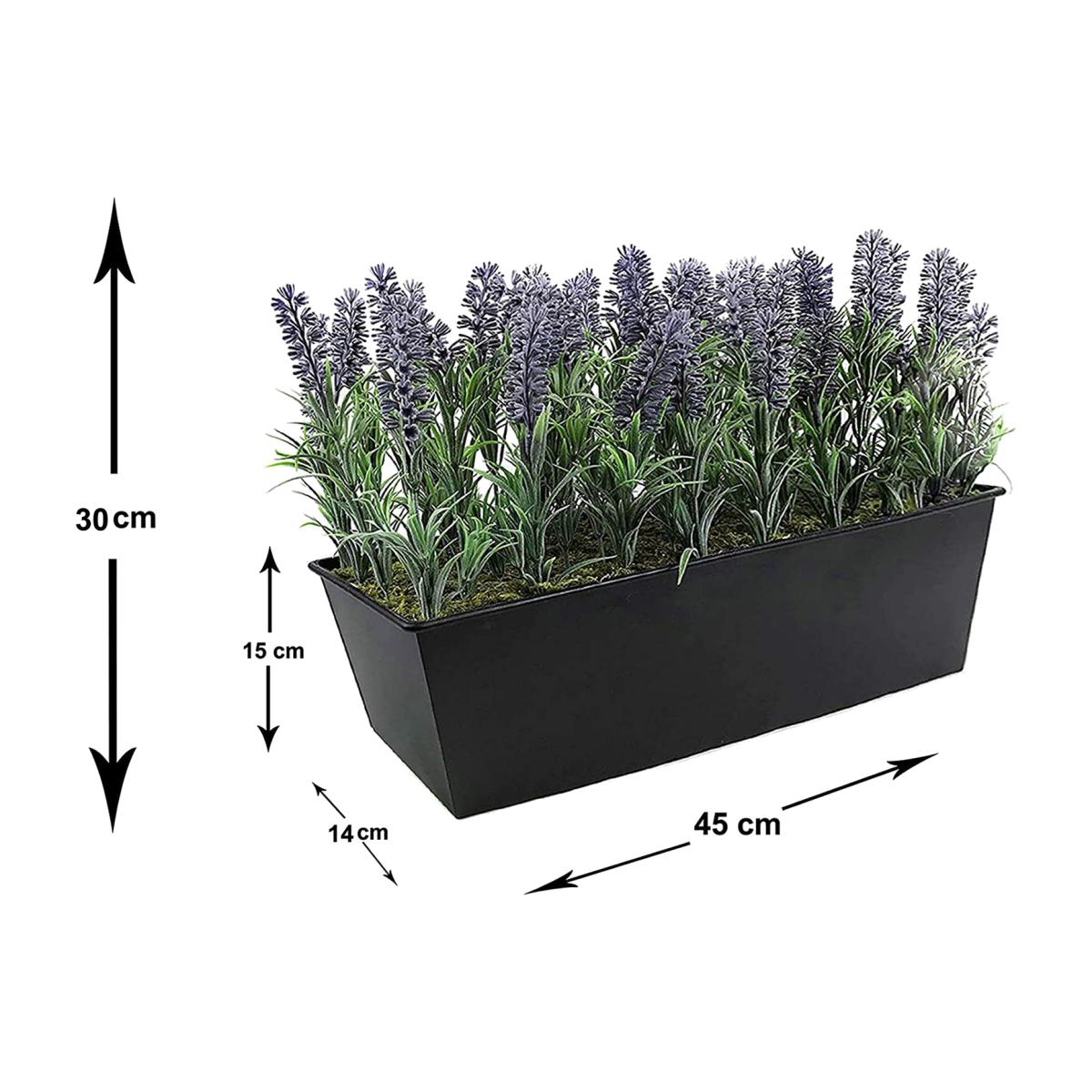 This stunning artificial purple Lavender window box in a stylish Black freestanding tin trough is a stunning addition to your home, garden, office or business to add a beautiful natural theme. Extremely lifelike and realistic looking, from a short distance it's hard to believe it is not real. Perfect if you don't want the hassle or have the time to care for living plants. They are maintenance free. The attractive greenery and flowers will be a nice touch for your window sill, conservatory, porch, patio or entranceway. They also look absolutely fantastic on the balcony, also outside shop fronts, offices and receptions along with bars & restaurants. Please note the plants are packed in cardboard cartons for maximum protection. The plants are ready assembled however are lying down flat in the boxes which can cause the foliage to be compressed and out of shape. The perfect shape can be regained by gently pulling and fluffing the foliage back into shape. Please note the plants are packed in cardboard cartons for maximum protection. The perfect shape can be regained by gently pulling or fluffing the foliage back into shape and folding leaves back to a natural shape.