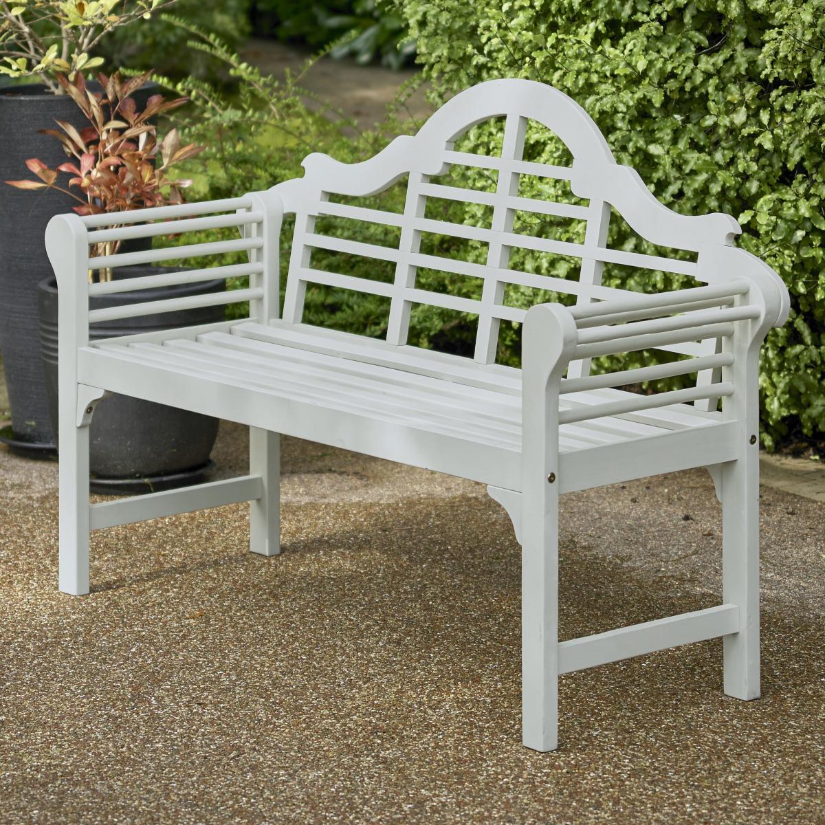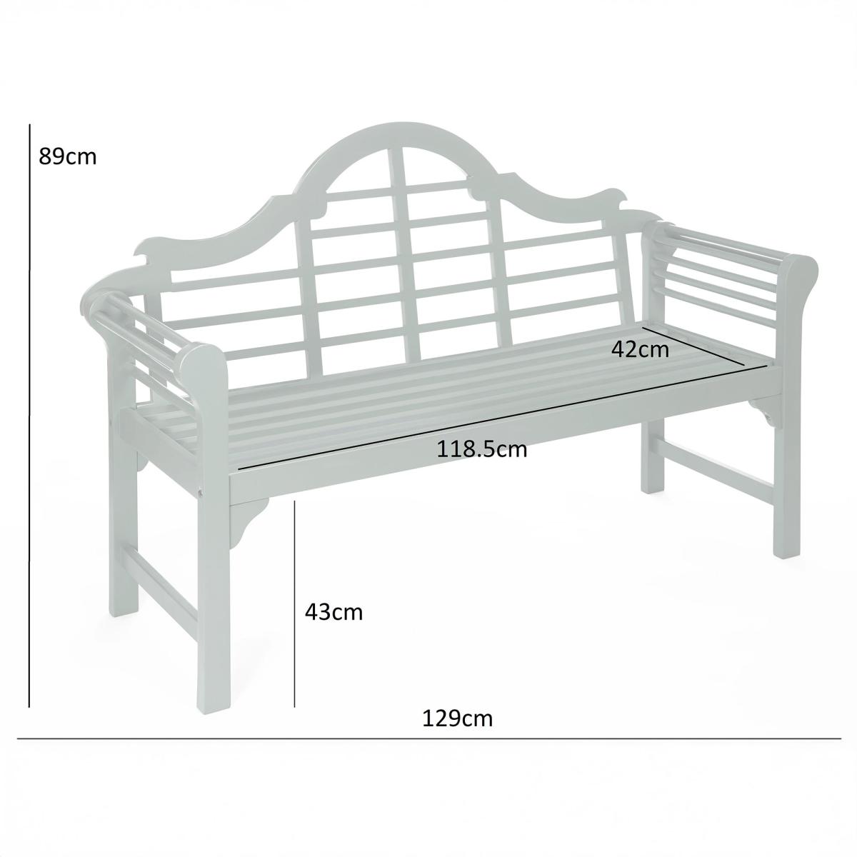 * Wooden bench * Arched back * Weather-resistant Inspired by the timeless Lutyens design, this bench is a refined and elegant feature for any patio, garden, or conservatory. Crafted from Acacia hardwood, it is known for its exceptional durability and resistance to weathering. The gently arched backrest, paired with the scroll-shaped arms, creates a striking silhouette, making it a statement piece for outdoor spaces. Finished in a tough, weather-resistant sage green PU paint, this bench not only looks beautiful but is built to withstand the elements throughout the seasons.