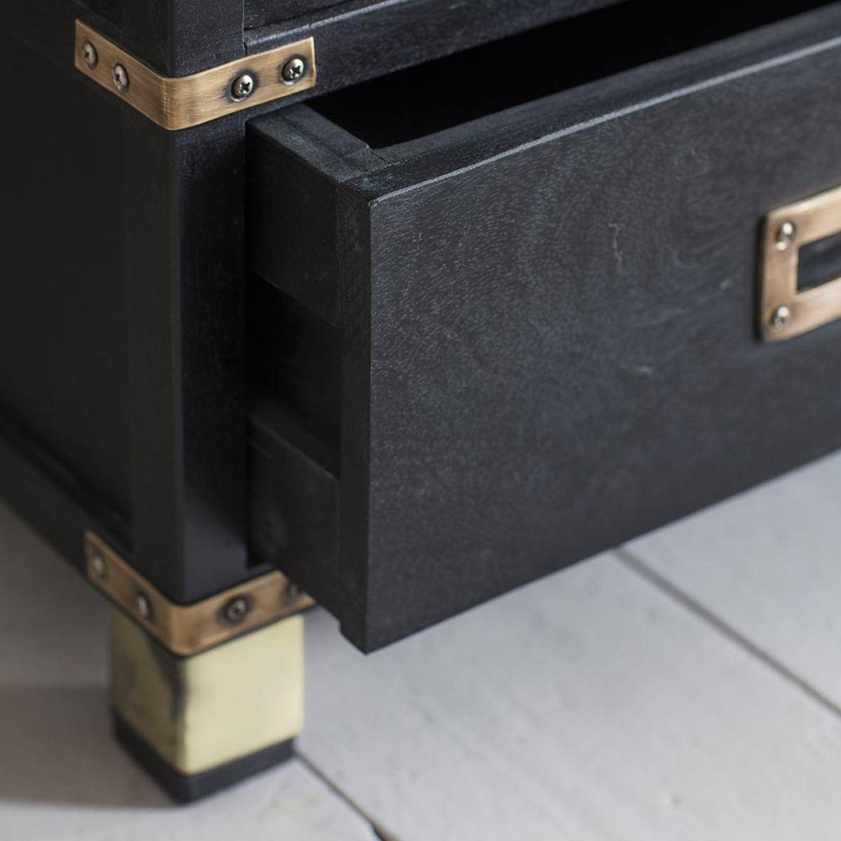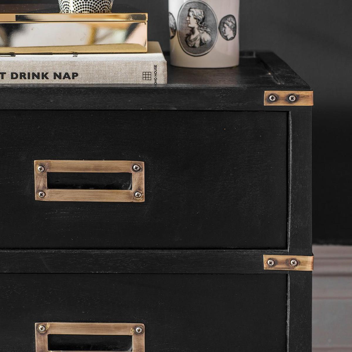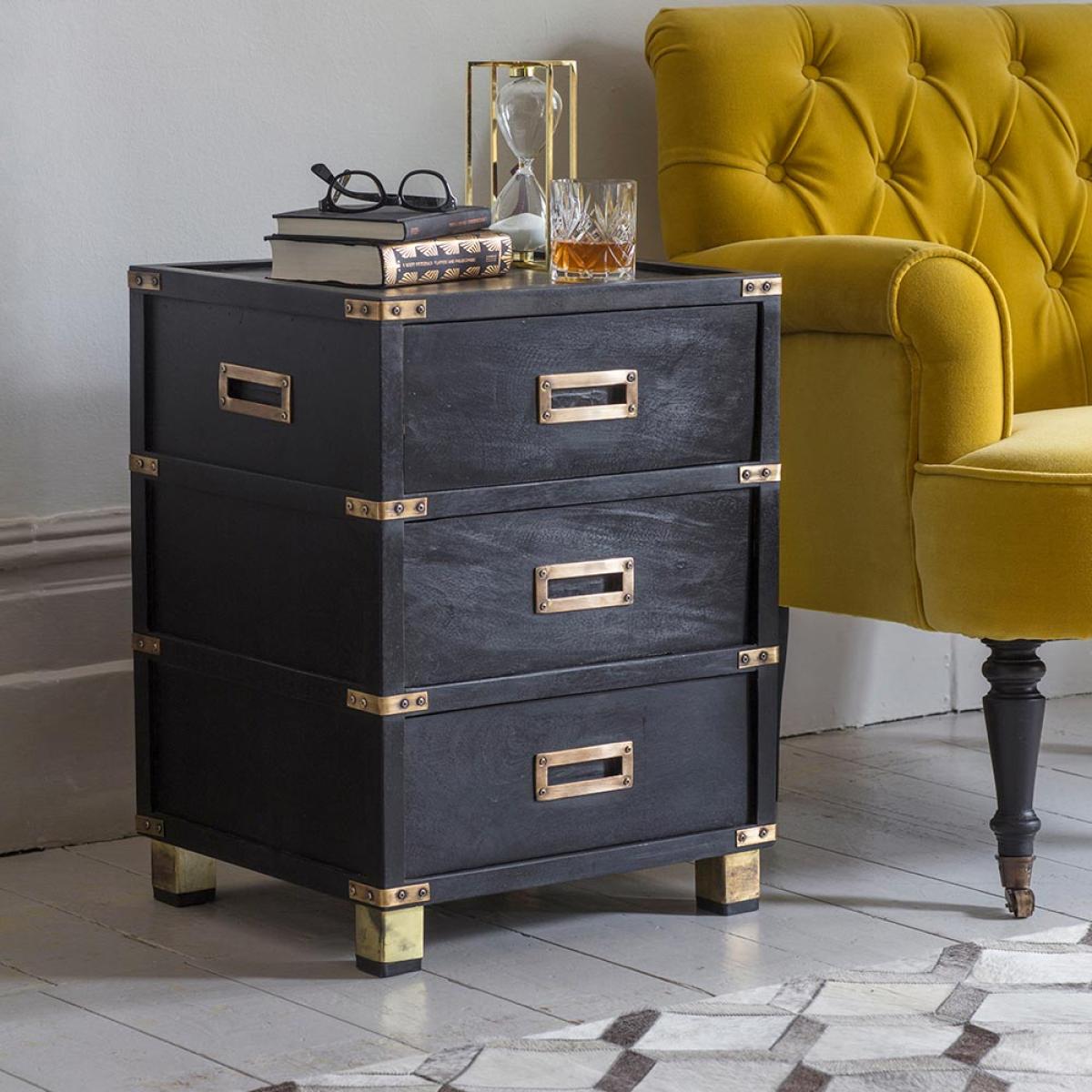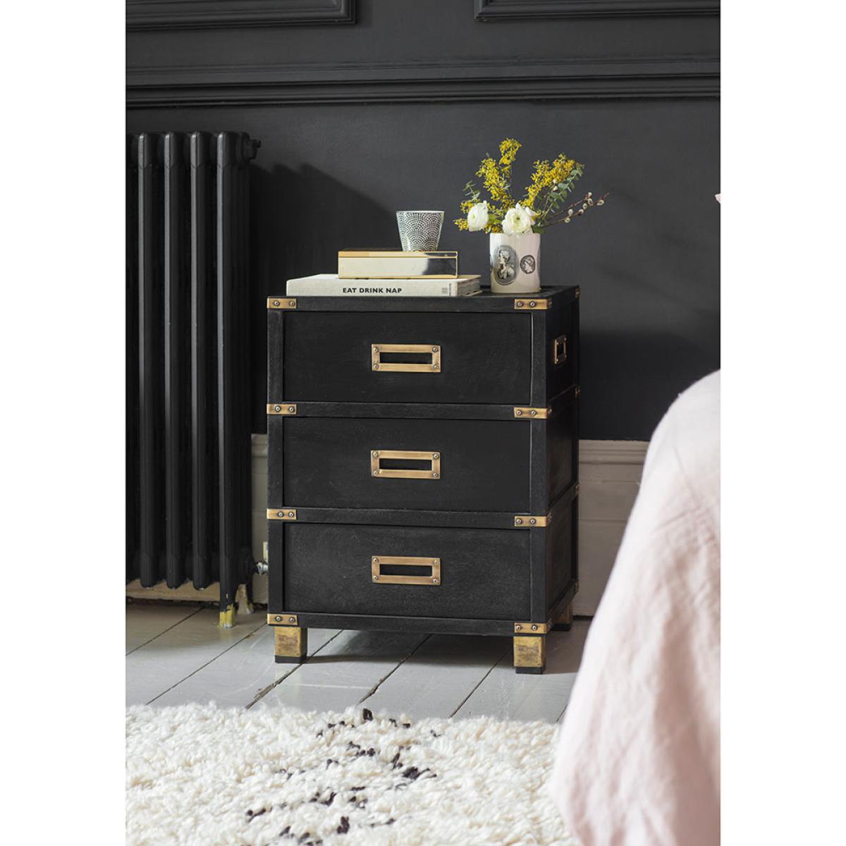 In black stained mango wood with luxury brass plated detailing, our Greenwich Bedside Drawers will add a decadent finish to a master suite or guest bedroom. There’s plenty of storage space inside the three drawers with a lipped surface to display task lighting and night time essentials.