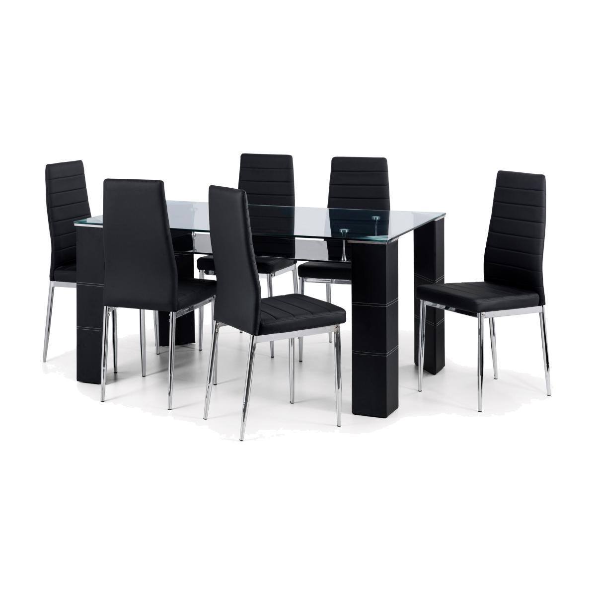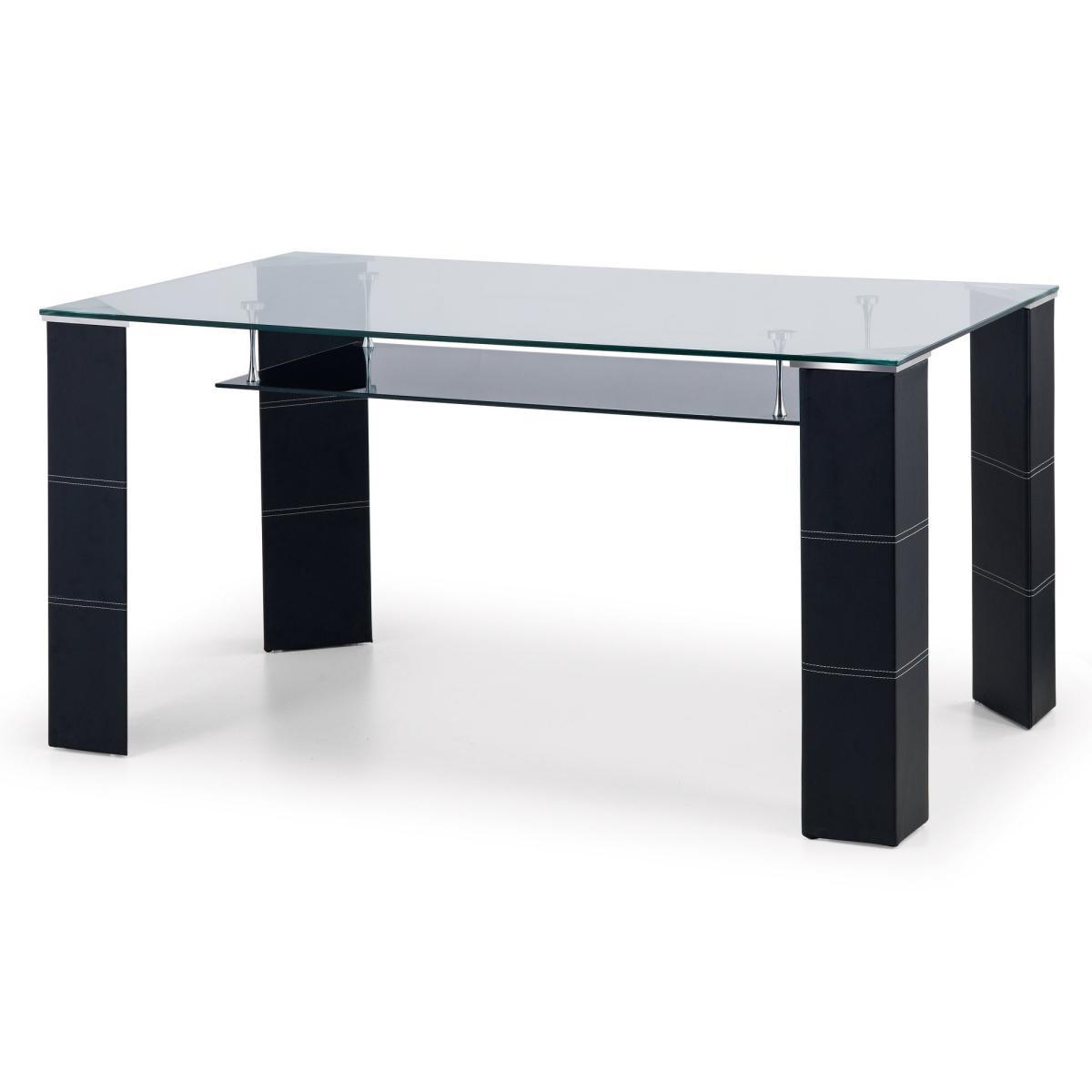 Crafted from black faux leather, this dining set has a 10mm clear tempered glass top, giving this set a contemporary feel. With a under shelf table for added storage this dining set is not only great for storage but is also a bold statement in any dining area.
