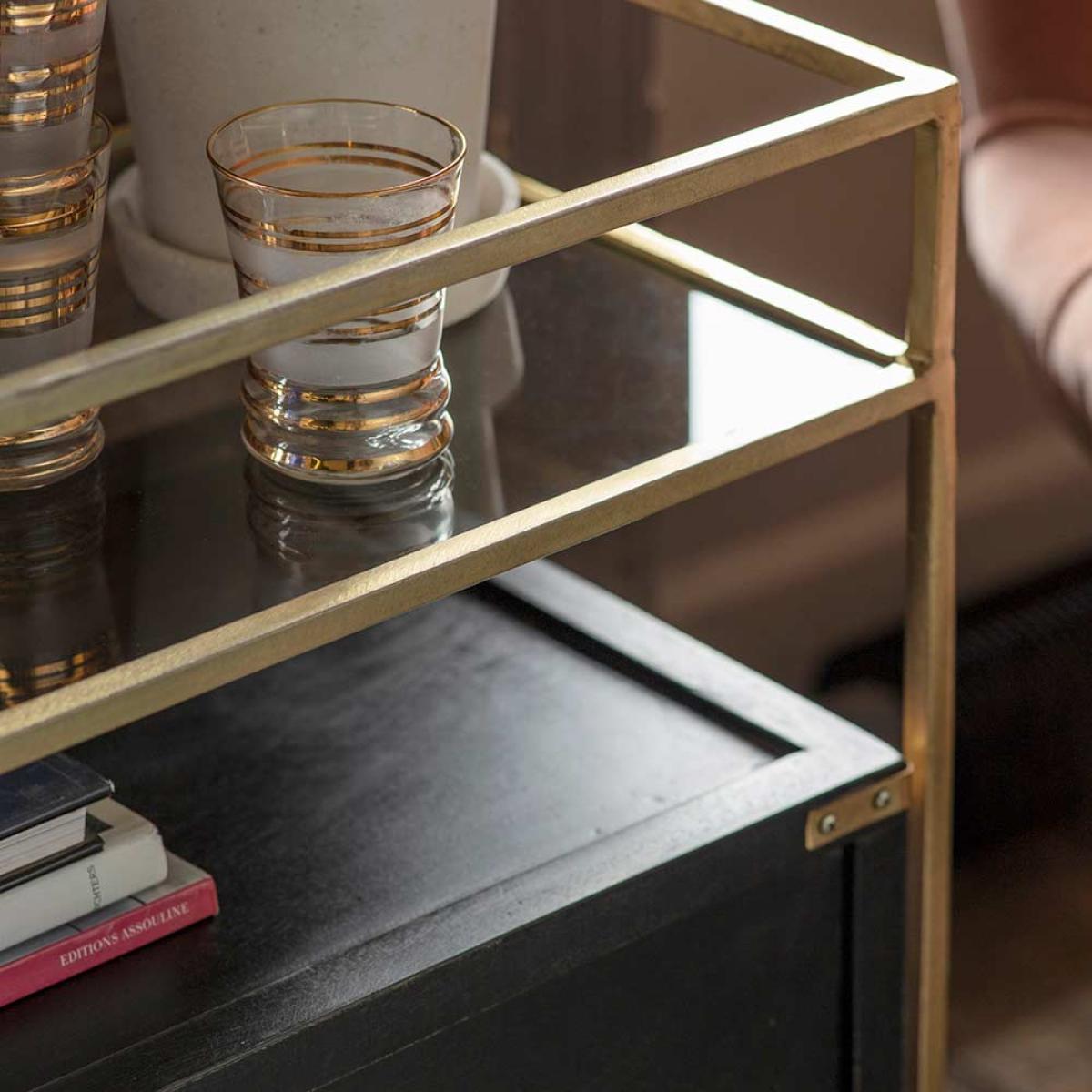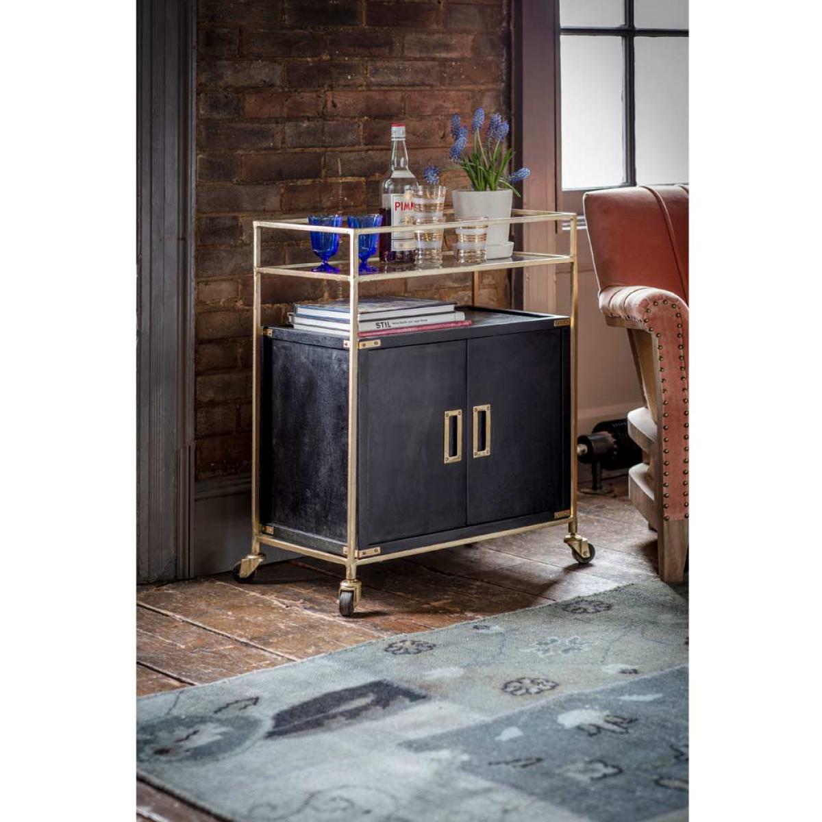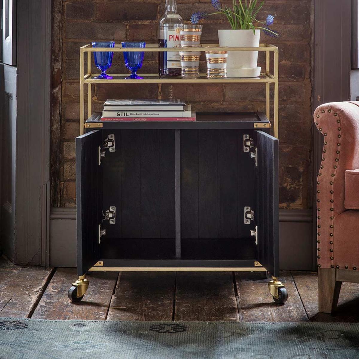 I love the Greenwich drinks trolley for its sleek combination of brass and black finishes, which adds a touch of sophistication to any space. It works particularly well in eclectic, vintage-inspired, or industrial interiors, where its nod to classic bar carts can be showcased. Practical styling tips include using the top shelf for glassware or decorative bottles, while the lower cabinet is perfect for storing essentials out of sight. It’s also versatile enough to work as a side table or a serving station, making it a stylish and functional addition to both living rooms and dining areas.
