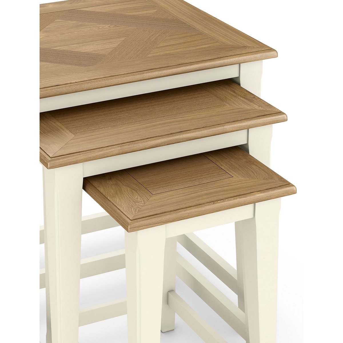 Get the surface area you need without compromising on space with our Greenwich nest of tables. Use them as end tables, or simply tuck this set of three wooden tables together for those moments when you need a little more space. With a rustic yet stylish oak-effect finish that provides long lasting durability, these tables are sure to liven up any space. We've used entirely sustainable and recycle wood to create this piece, so you can rest easy knowing you're doing your part for the environment.