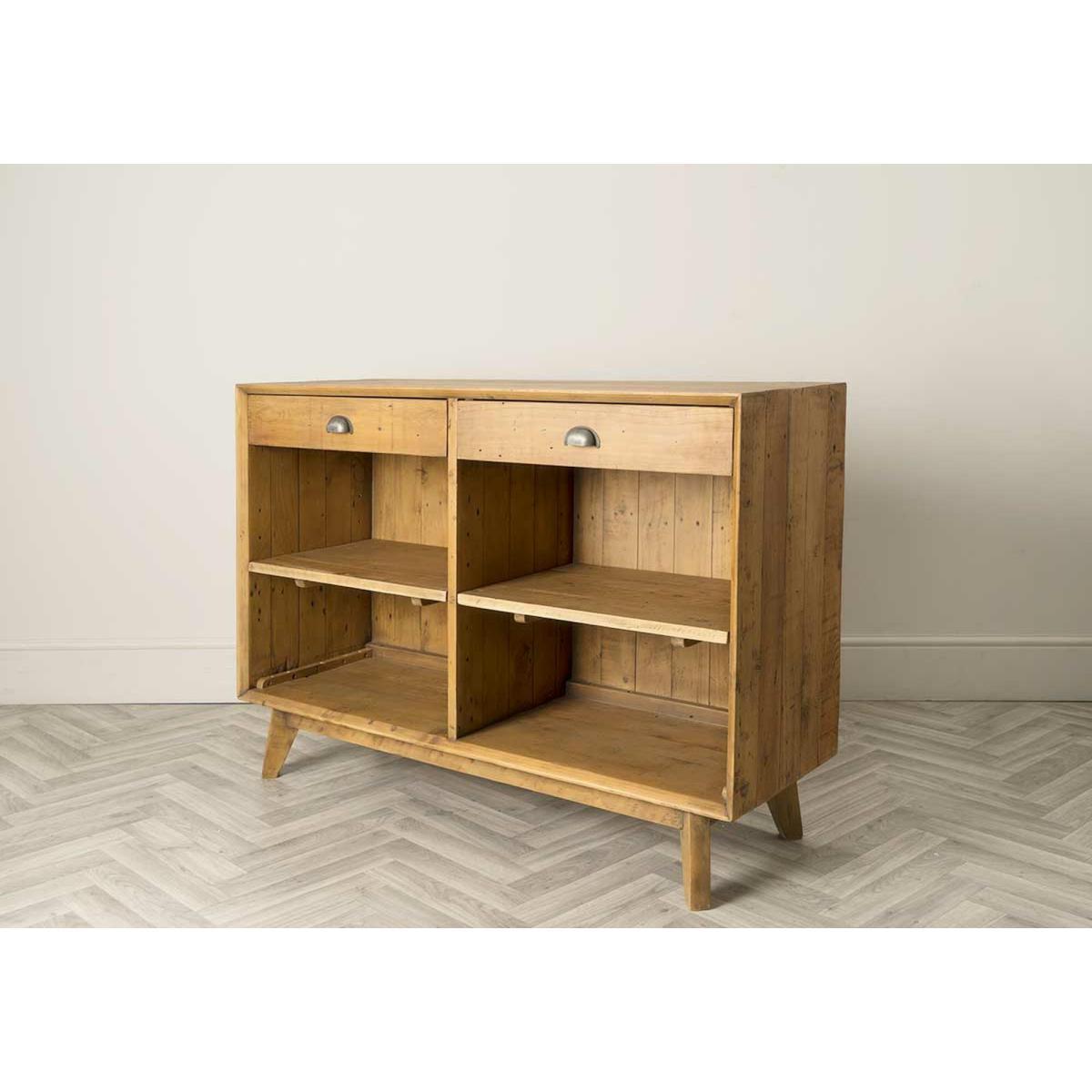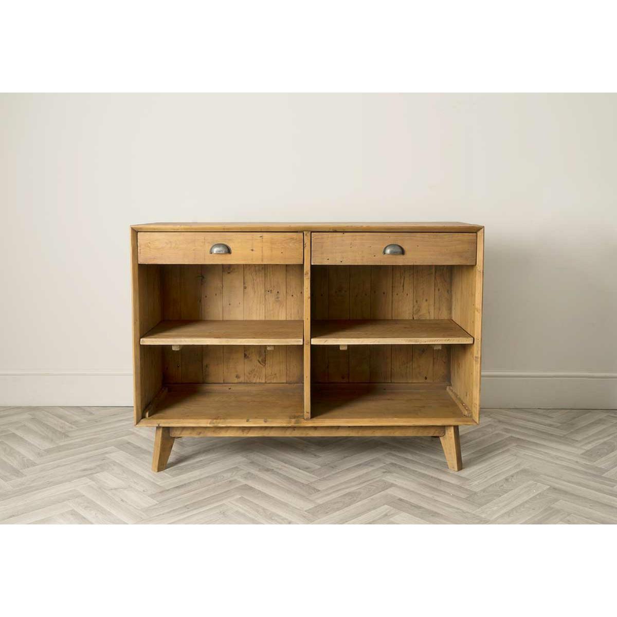 Introducing the Grenen Pine Range : where ecological awareness meets scandi style. The Grenen range of furniture utilises recycled pine and adds a cosy farmhouse feel to bring a touch of nature into your home. Not only stylish but also enduring. The Grenen Pine Sideboard features four large open spaced shelves for display and storage, with two top drawers for further storage and efficient organisation.