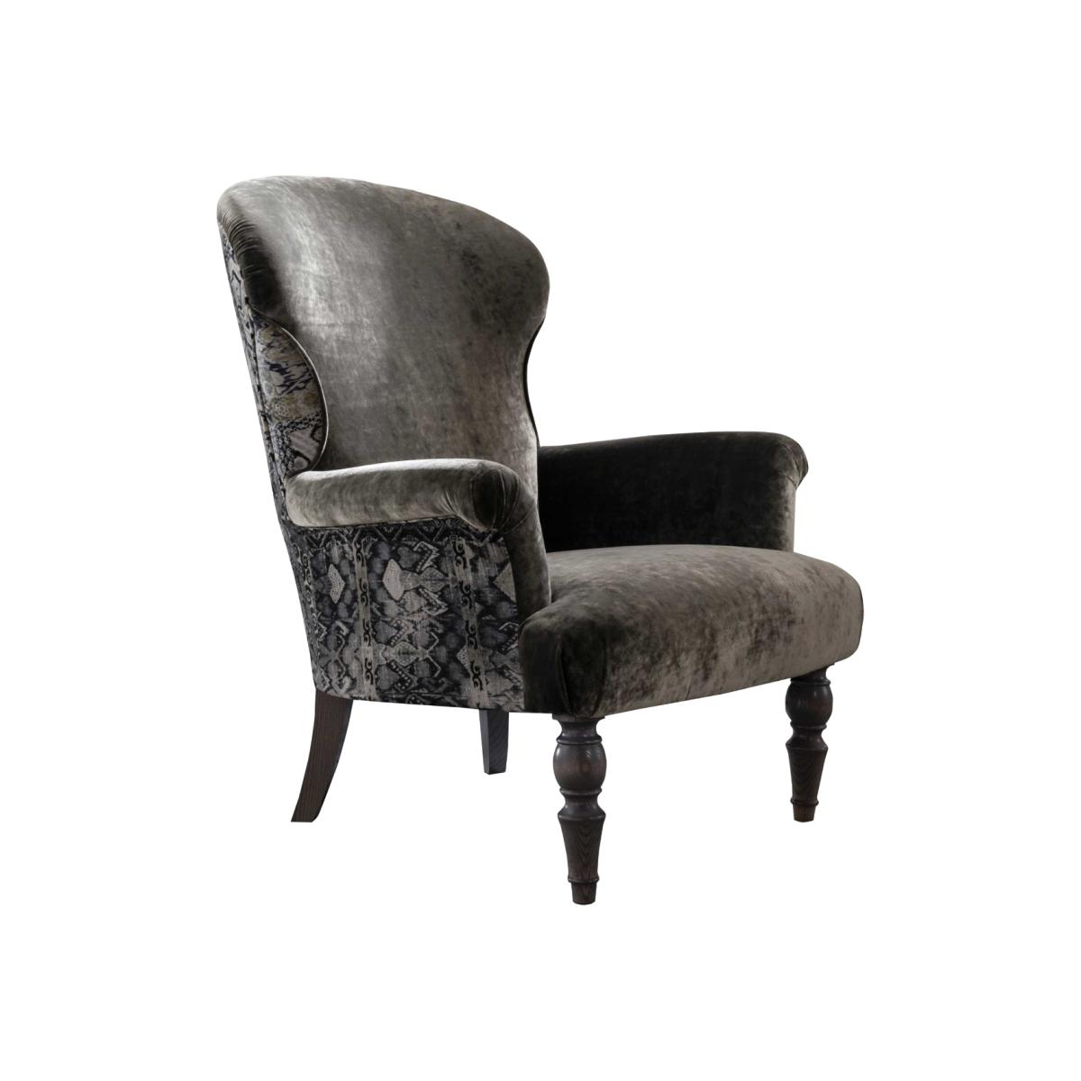 Featuring a charming split personality, the Greta armchair delivers the perfect dose of statement style. While the seat is dressed in your choice of plain velvet, the reverse showcases one of three gorgeous patterned upholstery options. A subtle way to give your space more character, this traditional velvet armchair is perfect if youre looking for just a dash of daring. Armchair shown in Opium Emerald velvet with the back fabric in Rio Olive.