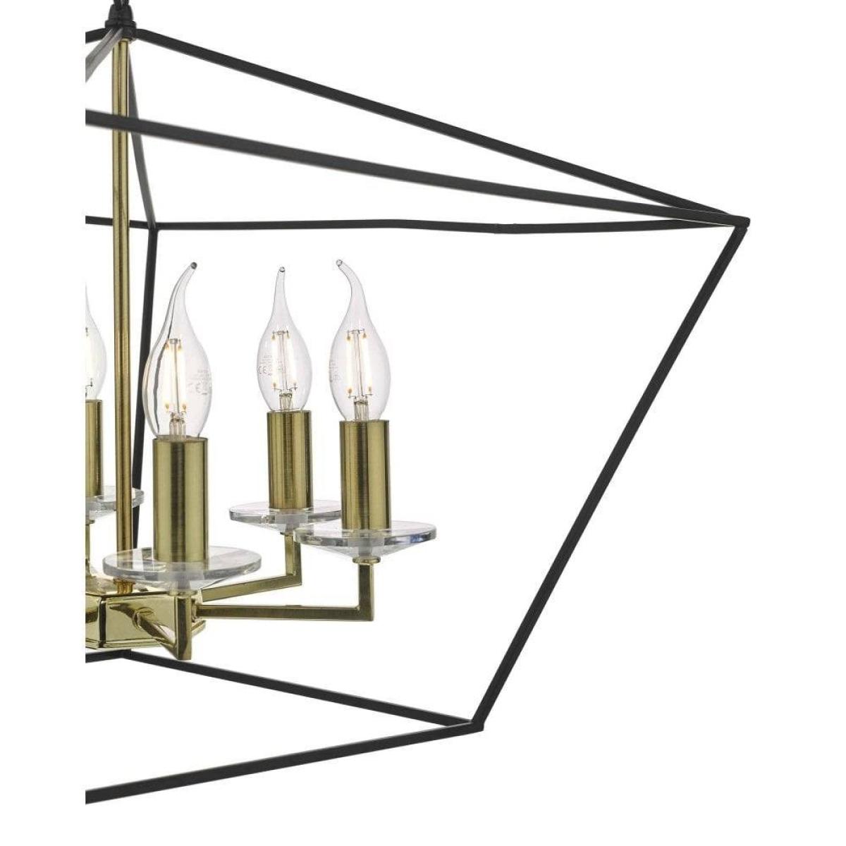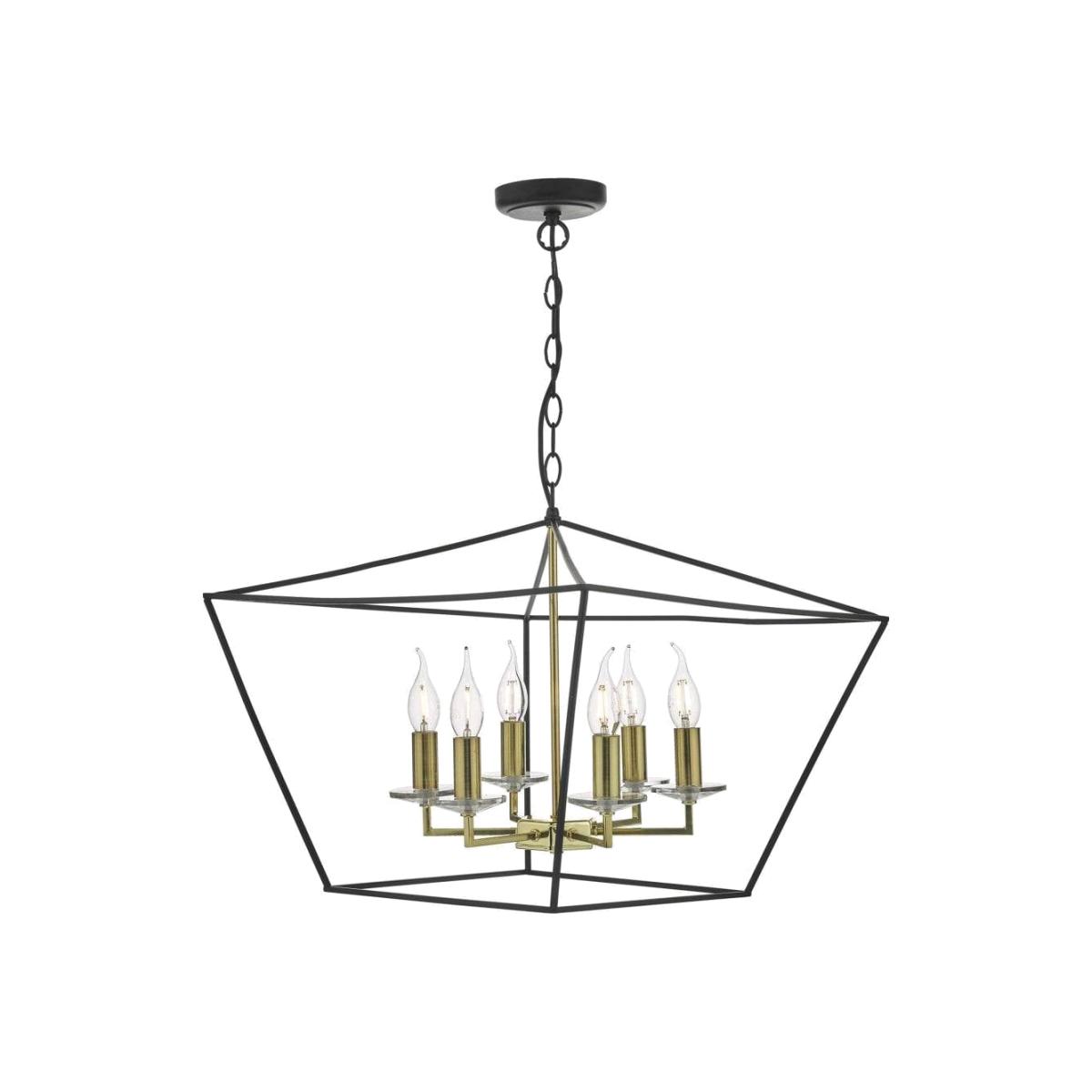 TheGretchen 6 light Pendantis a contemporary design with a modern take on traditional chandeliers. The matt black caged pendant encapsulates a candelabra style frame and individual lamp holders in gold with crystal sconces. The statement fitting is complete with vintage style candle bulbs which adds authenticity to the modern design.