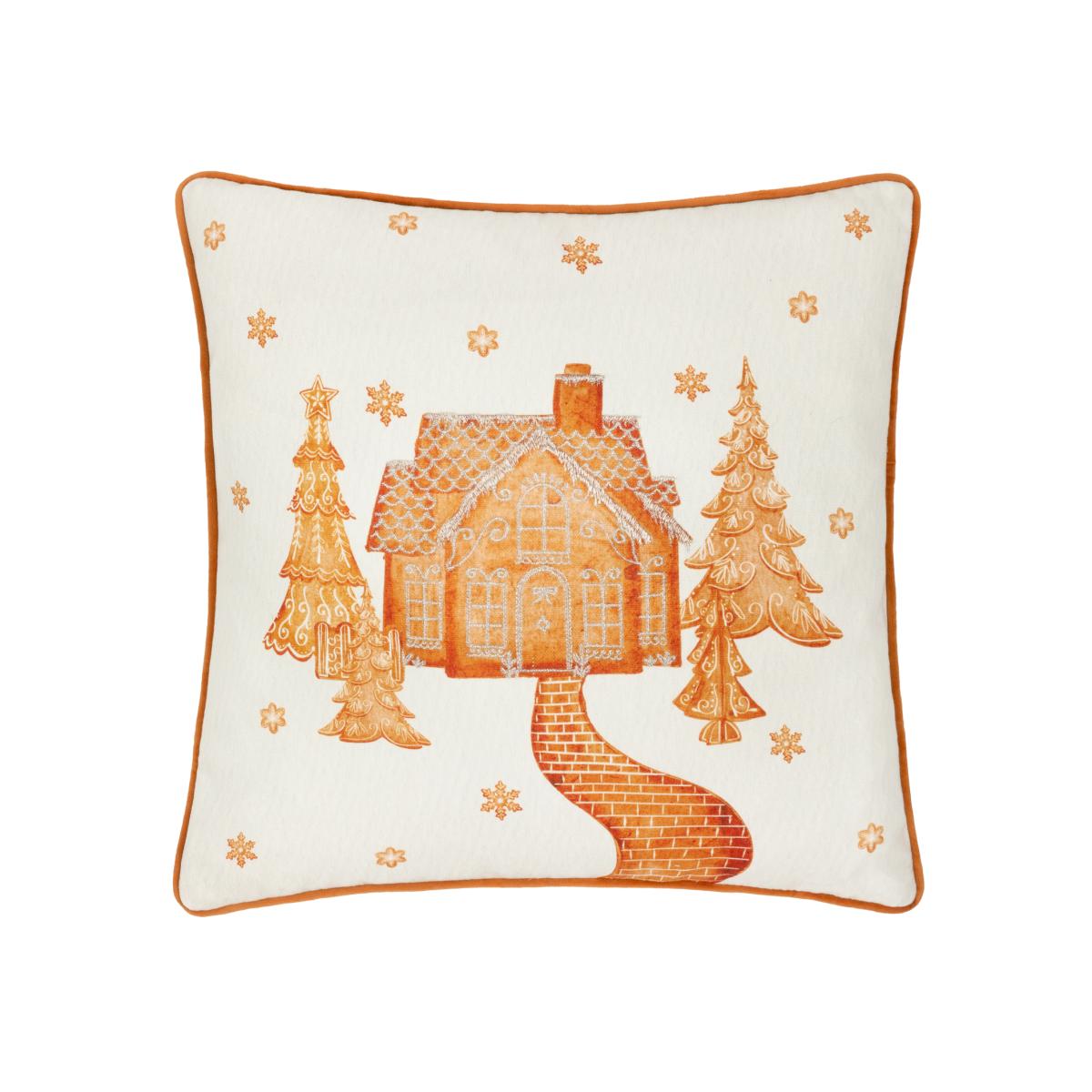 Inspired by spiced Christmas treats that will sprinkle some festive spirit,. The Gretel velvet cushion features a modern take on the classic Hansel and Gretel gingerbread house. Complete with a soft, plain velvet reverse and piped trim, this design is the ideal addition to your home this winter season.