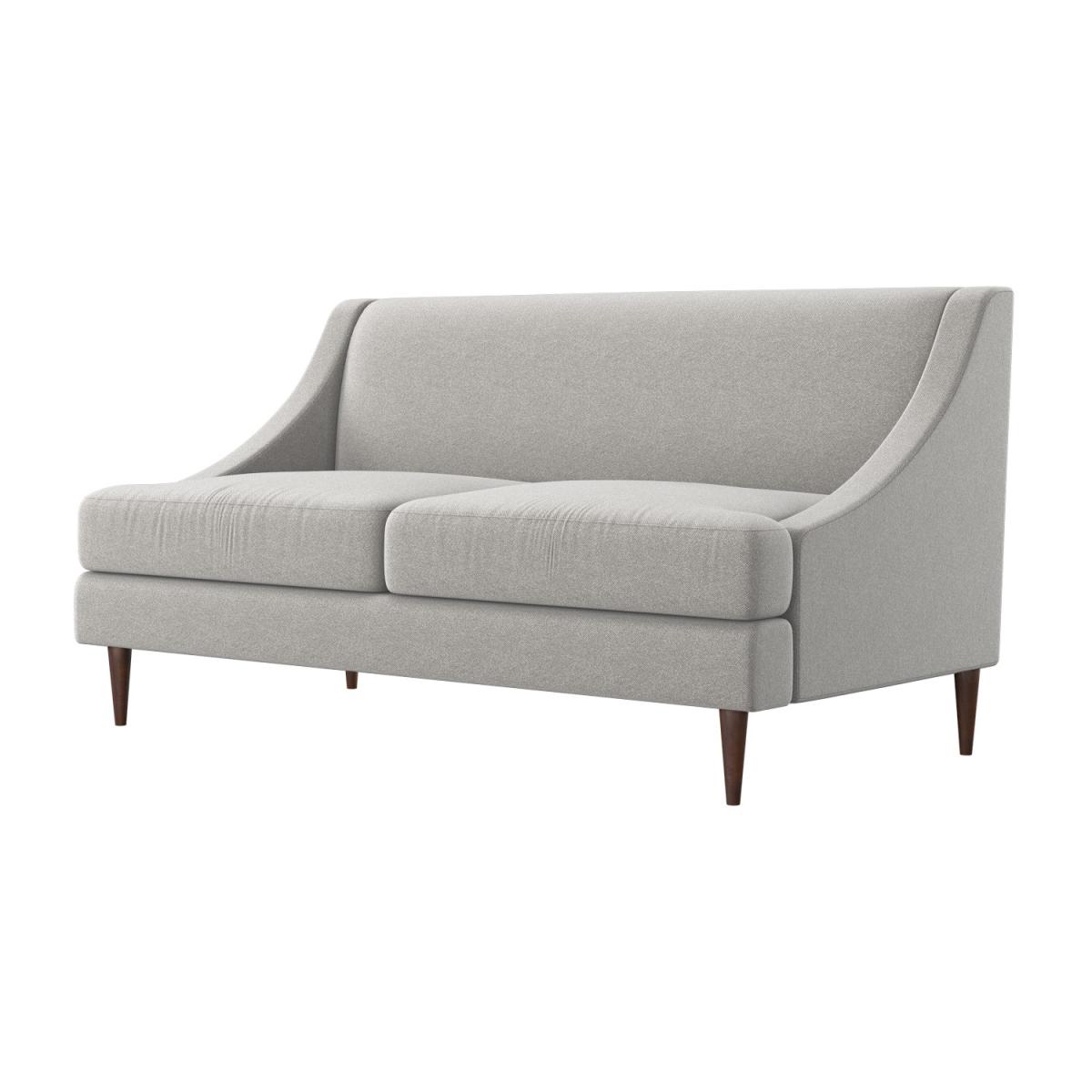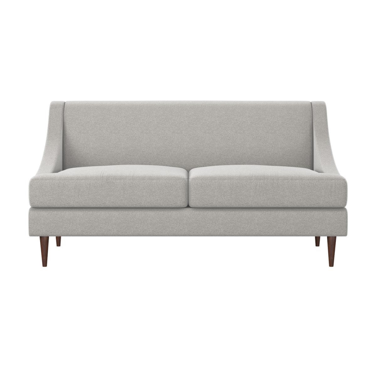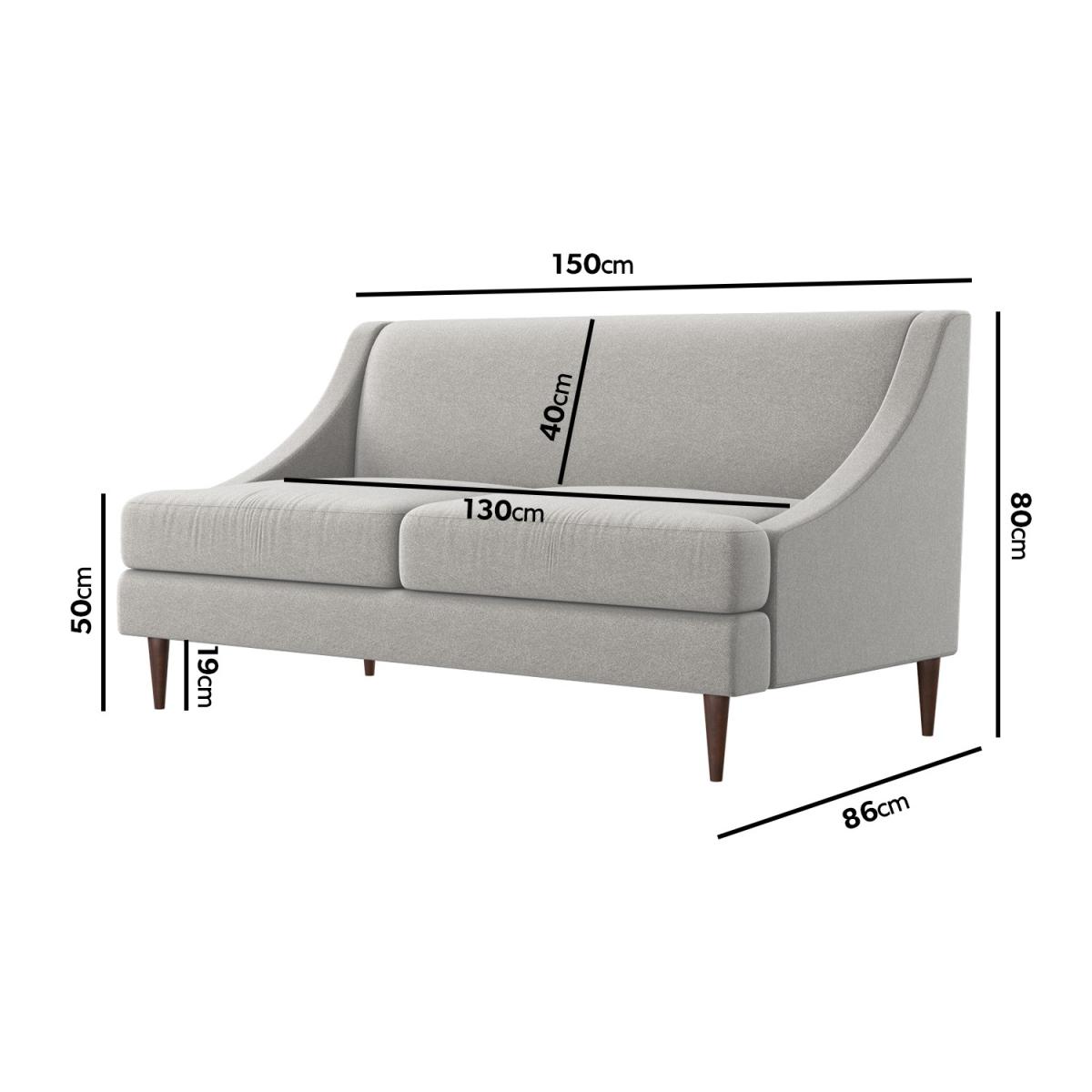 Features we love Mid-century design grey fabric 2-seater sofa. Relax in style with curved arm features. Upholstered in neutral grey chevron print fabric Foam filled cushions add comfort and support. Minimal assembly just attach the dark wood legs. All about me. The Maia woven fabric sofa is the perfect addition to any living space. The minimal chevron design is beautifully simplistic and will complement any modern decor. Comfortably seating 2 people there is plenty of space to entertain your guest or have a cosy family night in. With foam filled back and seat cushions this sofa offers the perfect place to recline and relax on an evening. Need to know. Overall dimensions. H80 x W150 x D86 cm Seating dimensions. W130 x D57 cm Packed dimensions. No. of Boxes 1 - Weight 42kg – H71 x W155 x D88 cm Colour. Silver grey Finish. Woven fabric and wooden legs Material. 100% polyester Filling. Foam Assembly required. Yes