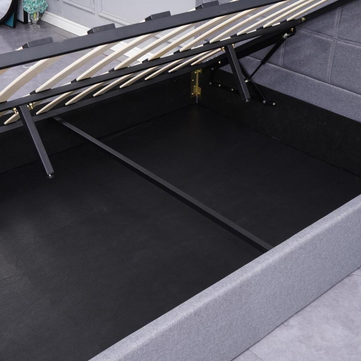 This bed frame is a high-quality ottoman storage bed. It can be opened from either the left or right side ensuring it will function perfectly for you. Just mount the gas lift mechanism on the side which suits you. The bed features hydraulic gas lift arms that raise the mattress base revealing huge amounts of storage space. The frame will remain upright once lifted to give you both hands-free to remove or store items underneath. The inside Storage Height is 25cm on all sides, allowing the metal mattress frame to sit slightly below the level of the footboard and side rails.
