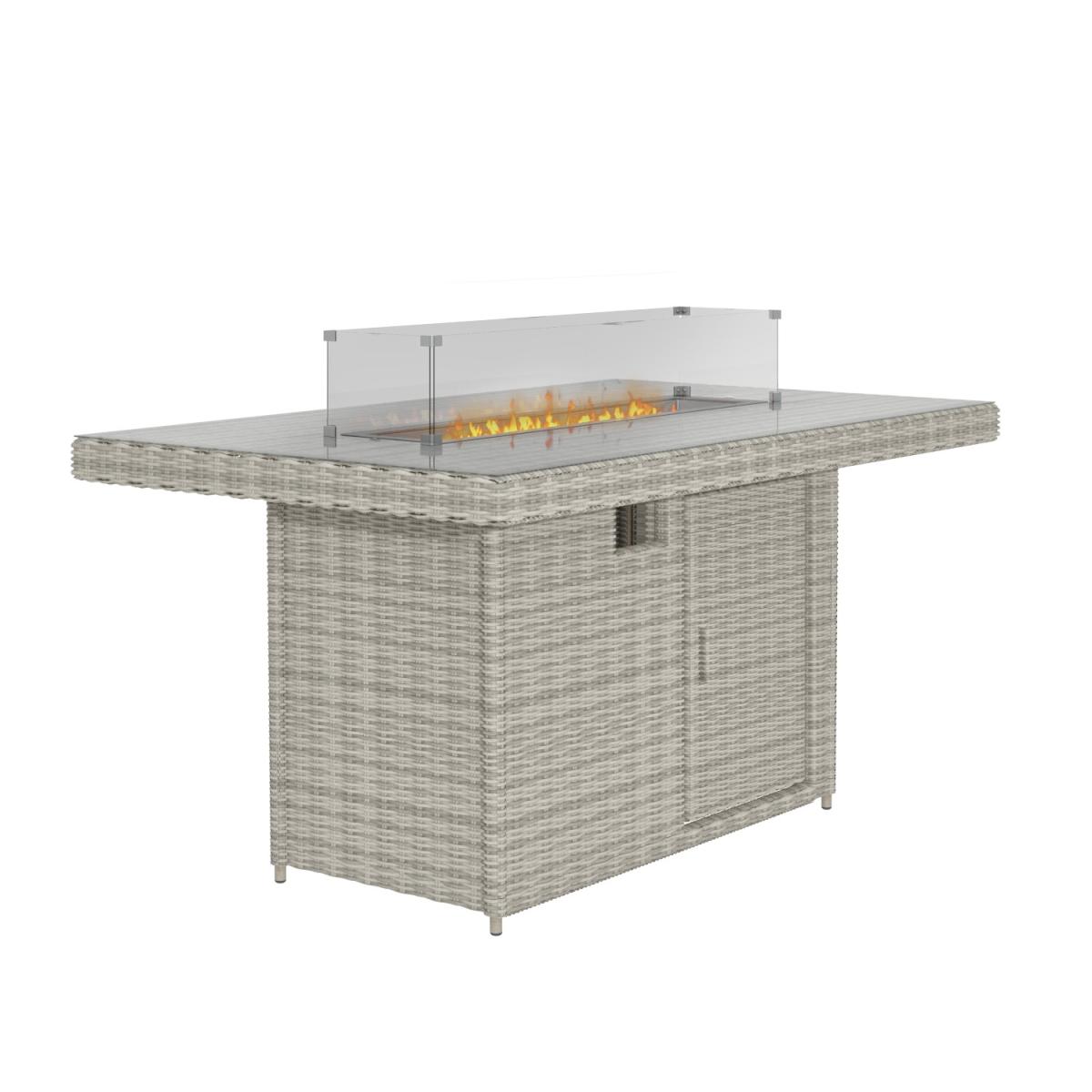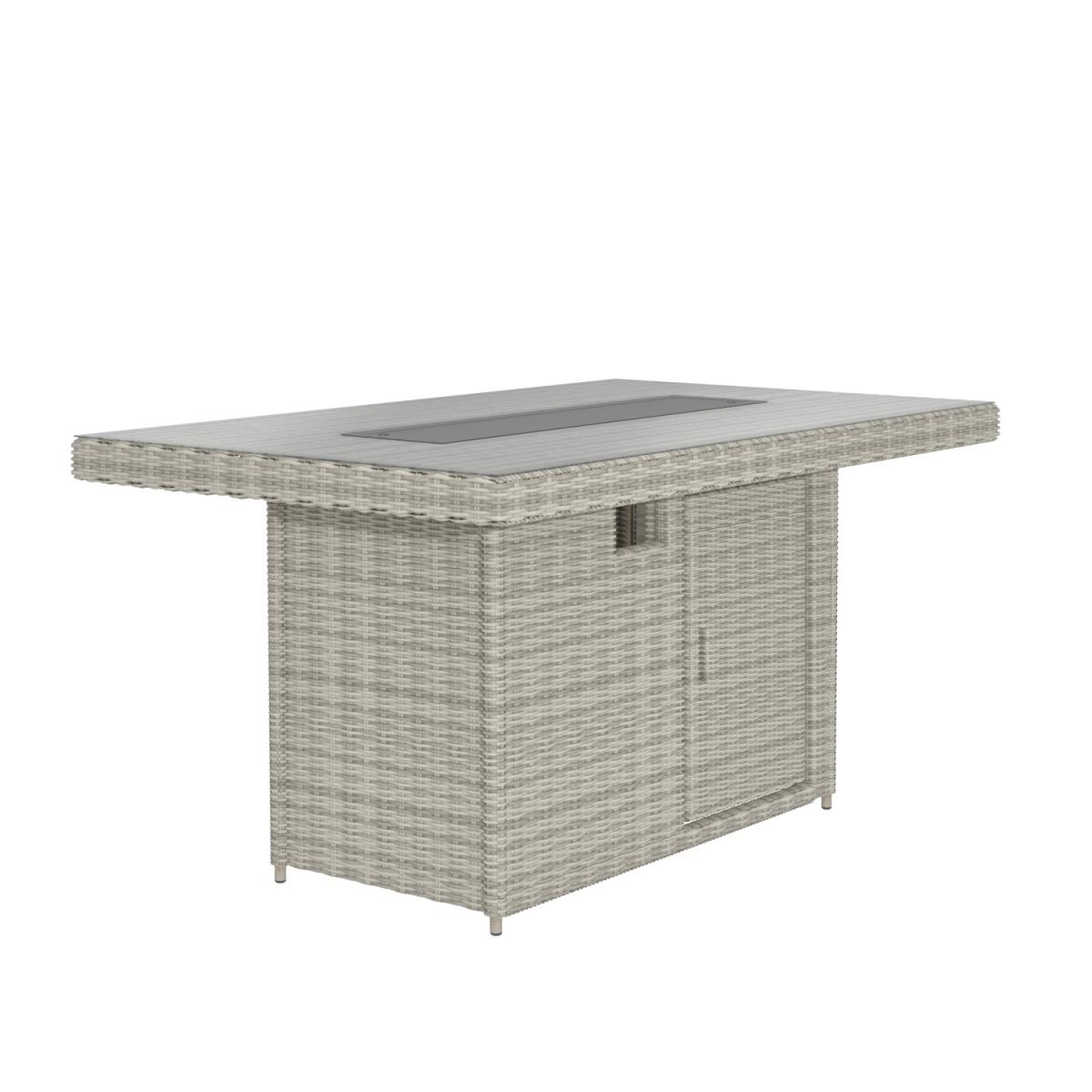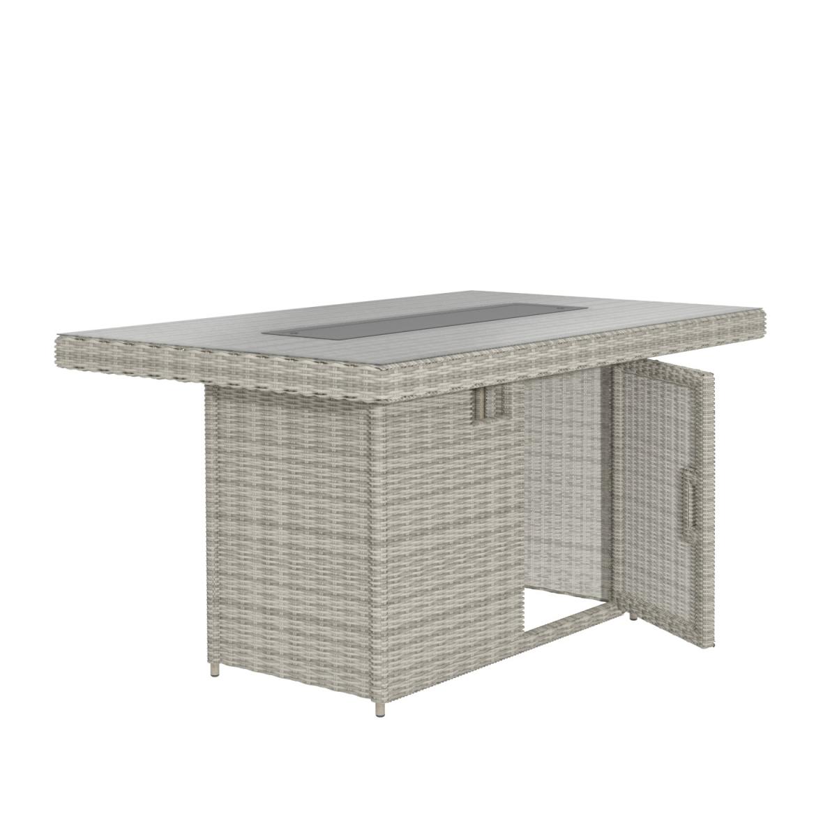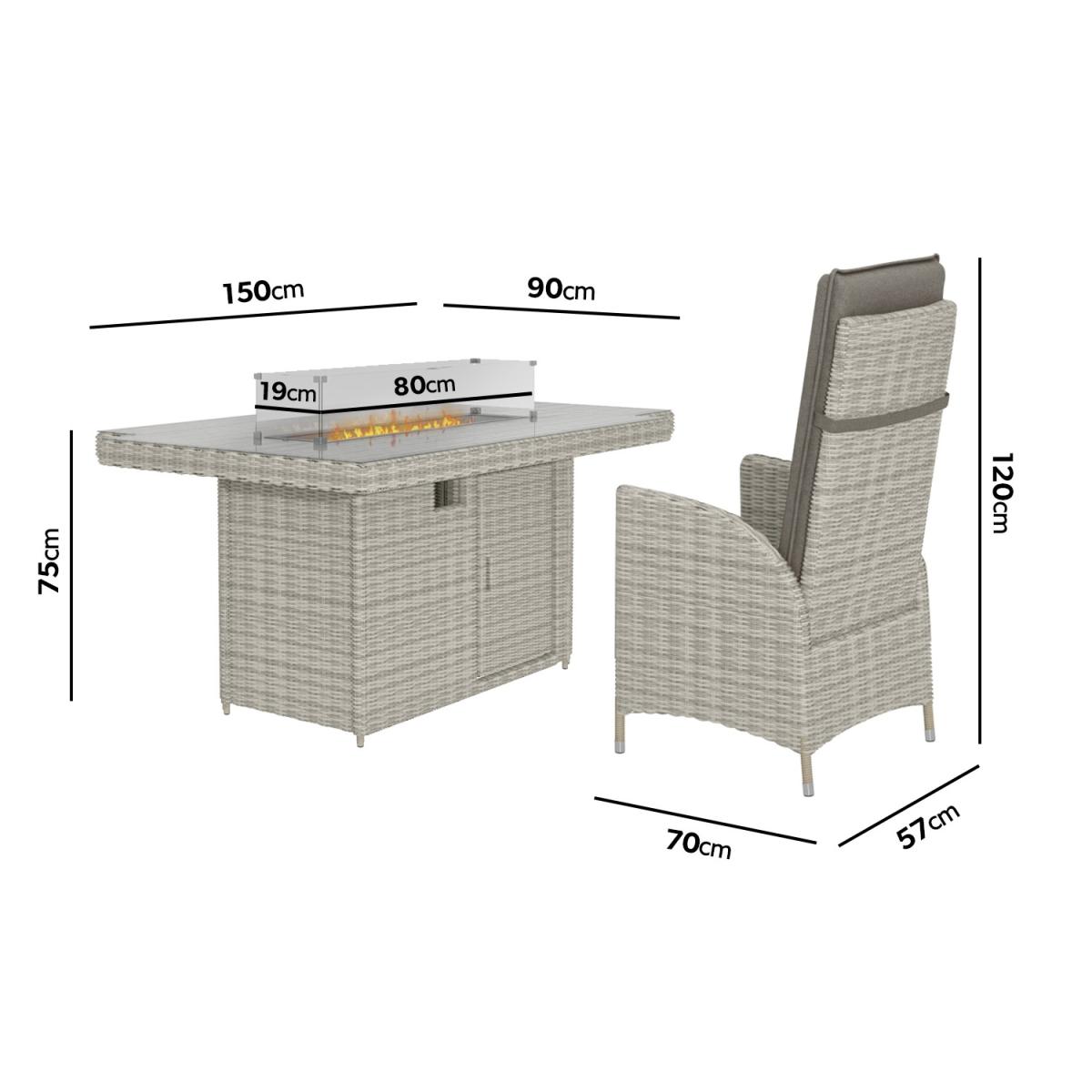 Features we love Luxurious dining set to take you from day to evening. With 6 reclining chairs and; table with tempered glass top. Dining table converts to a fire pit to keep you toasty. Storage space beneath the table is ideal for a gas bottle. Complete with plush slip-on cushions for extra comfort All about me. Enjoy garden dining and entertaining with this reclining garden set. Dine by day then covert your table to a warming fire pit and sit back and relax on the reclining chairs with tall backs. You can enjoy it into the evening whatever the temperature making the outside just as inviting as the inside. A control panel allows you to adjust the heat plus the flame is protected by the wind and for safety by a glass surround. Made from synthetic all-weather rattan it’ll withstand sun mould and unpredictable British weather. Enhance the life of your garden furniture-. This product has been designed to be used outdoors. To make the most of your furniture we recommend that you store it indoors move it in a sheltered position or protect it by covering it up in bad weather and over the winter period. Why not invest in one of our garden stores super handy if your furniture comes with any upholstery (cushions) which must always be kept dry. Need to know. Table dimensions. W150 x D90 x H75 cm Chair dimensions. W57 x D70 x H120 cm Fire pit system dimensions. W80 x D19 (double layer) Seats. Up to 6 people Fuel type. Liquefied Petroleum Gas (LPG) (sold separately) Firepit controls. Control panel Tabletop thickness. 8mm Cushion thickness. 5cm Colour. Grey mix and grey (upholstery) Finish. Rattan upholstery and powder coated (frames) Material. Tempered glass (tabletop) rattan aluminium polyester fabric and double layer fire pit system Assembly required. Yes just the table Due to the hand-woven rattan finish each piece will feature slight variations in colour and pattern. Please note Only convert the fire pit into a coffee table when not in use. What's in the box? 1 x Table6 x Chairs1 x Fire pit.