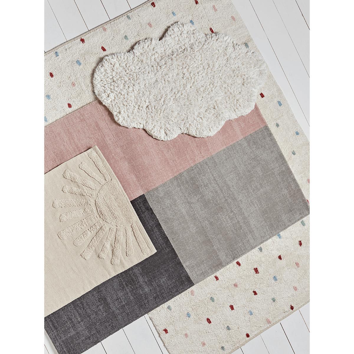 Full of contemporary charm our beautiful wool rug comes with a clean muted look by its blush and soft grey finish. An elegant rug for the considered modern home.