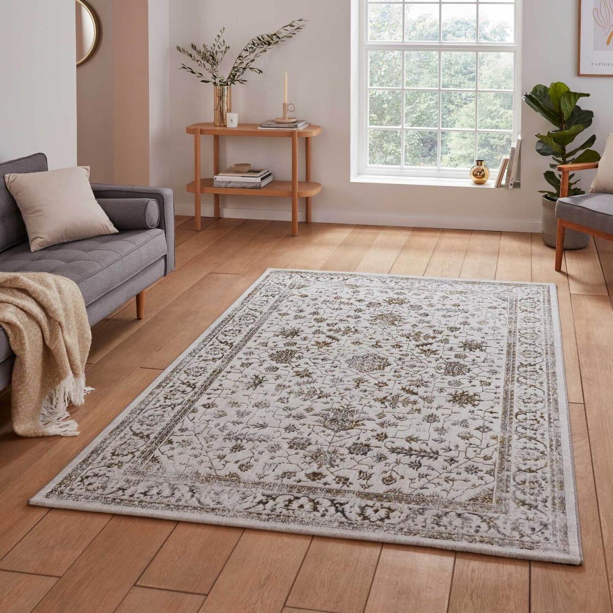 I really like this rug for its versatile appeal and classic charm. Its grey and gold border makes it an easy fit in both traditional and contemporary interiors, adding a touch of understated luxury without overpowering the space. It works particularly well in living rooms or sitting areas with neutral tones, where it can help to add warmth and a subtle hint of colour. For practical styling tips, consider pairing it with soft furnishings in complementary shades-like cream or taupe-and placing it under a coffee table to anchor the seating arrangement. Its size makes it suitable for slightly larger rooms, creating a welcoming and balanced look while being easy to maintain and coordinate with other decorative elements.