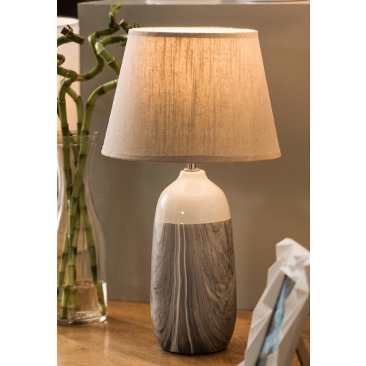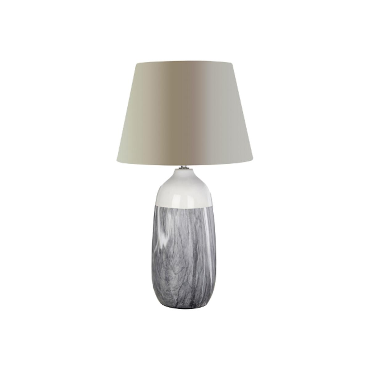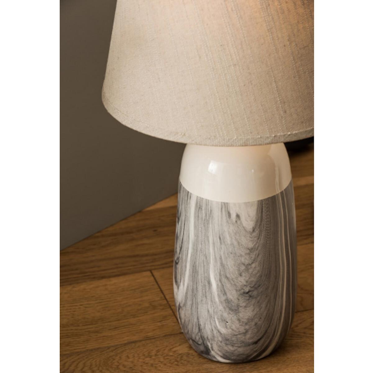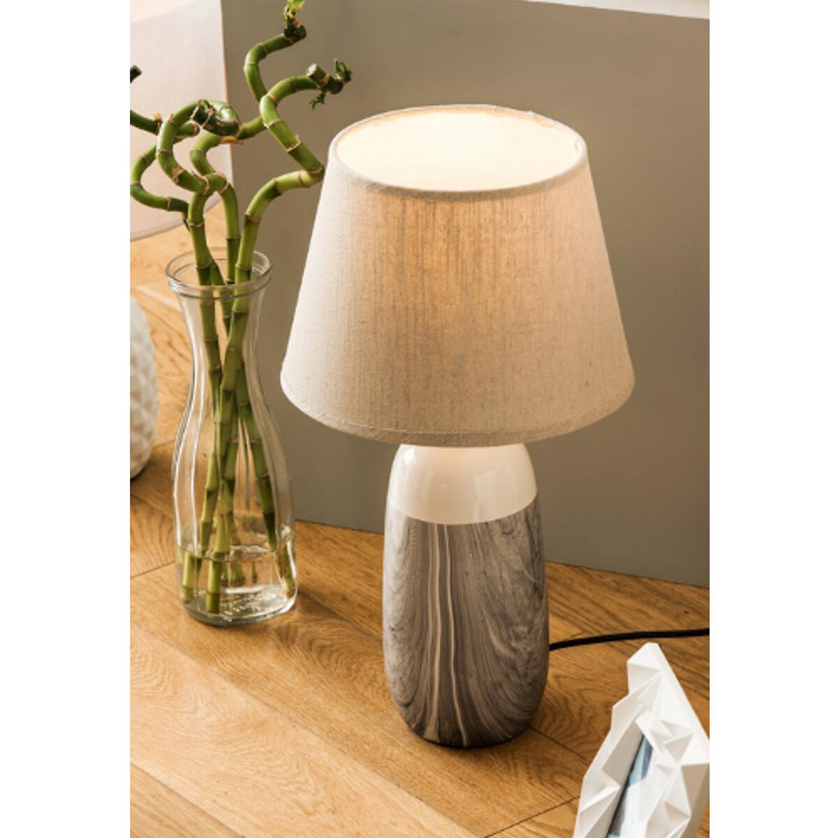 Made from durable ceramic, the Welma table lamp's base is a contrasting white and dark grey marble effect. The white fabric shade contributes to the lamp's two-tone look, making it an ideal way to add accent to a monochrome design setting. Slightly tapered, the shade will produce a warm glow when the lamp is in use, making it perfect for adding a little ambient lighting in the evening. Bulb not included. Bulb required: E27 40WDimensions:. H 46 x W 25cm. This product will be dispatched by one of our trusted suppliers. You’ll be contacted by their selected courier about your delivery.