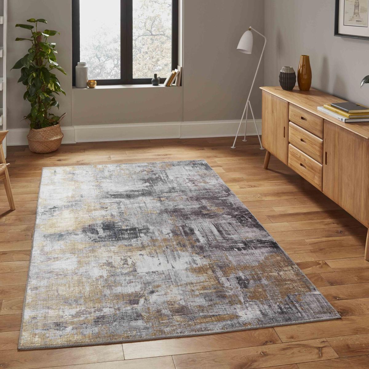 Grey and Yellow Polyester Flatweave Rug - Yellow / 160cm