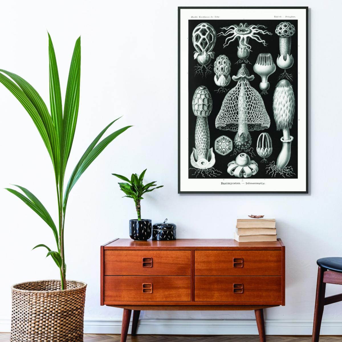 The Grey Basimycetes print is a fascinating piece that brings an intriguing scientific touch to any space. I love how it combines natural history with artistic appeal, making it a great focal point for contemporary interiors or vintage-inspired rooms. It works particularly well in minimalist settings where its monochrome palette can stand out, or in a study or library to add a scholarly vibe. Practical styling tips include pairing it with simple framing to enhance its vintage charm, or creating a gallery wall with botanical prints for a curated look. It's versatile enough to bring an element of curiosity and sophistication to both modern and eclectic interiors.
