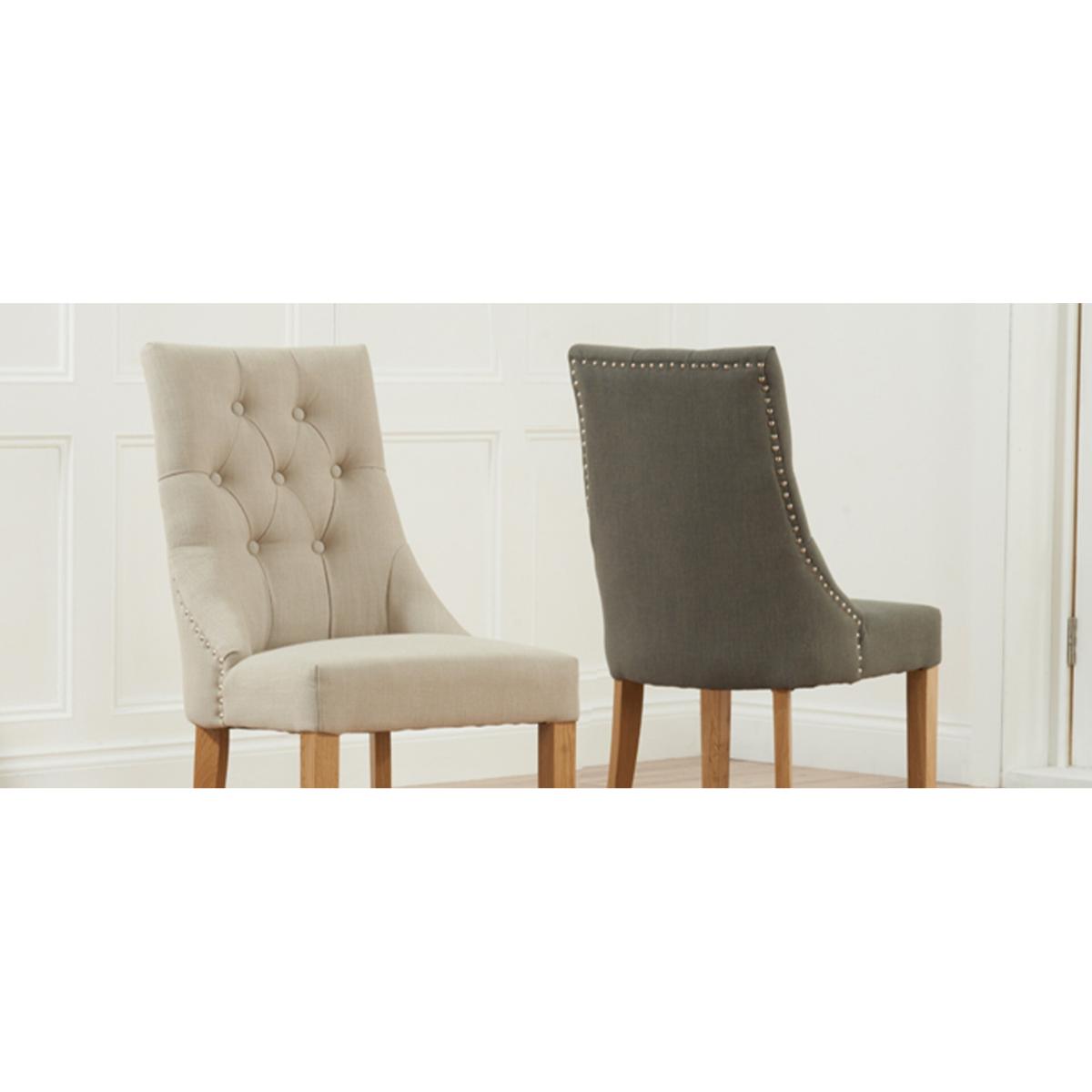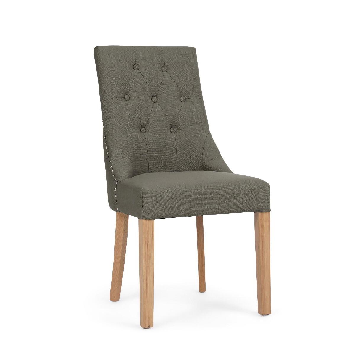 I love these grey seats for their clean, button-tufted back and oak-finish legs - they strike a nice balance between classic and contemporary. They work equally well in Scandi-inspired dining rooms, relaxed country kitchens or even as occasional chairs in a bedroom or hallway. Styling tip: group an even number around a light oak table with woven placemats and a simple runner, then introduce a textured cushion or faux-fur throw to soften the look. For a more eclectic scheme, mix one or two with patterned chairs at the table ends.