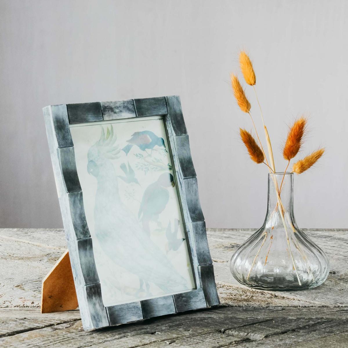 In a dappled grey, this bone photo frame will capture your treasured memories forever.