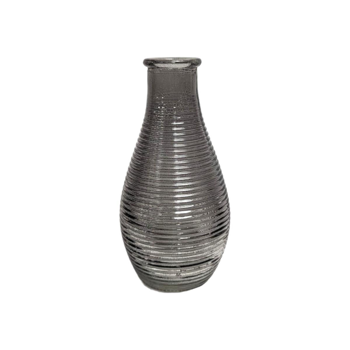 Grey Bottle Bud Vase - Ribbed Finish
