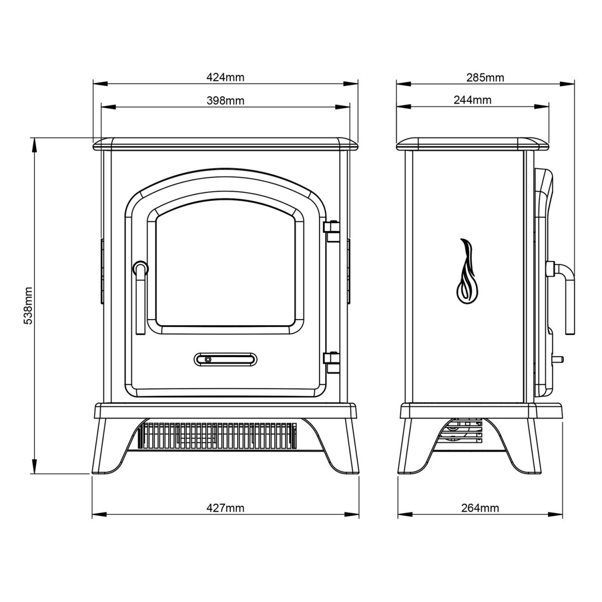 The Flare By Be Modern Serrano cast iron suite features a freestanding electric stove. Finished in painted matt black with a 2KW heat output. This also includes an eco-friendly flame effect with the option to enjoy the flames without the heat through remote control operation.