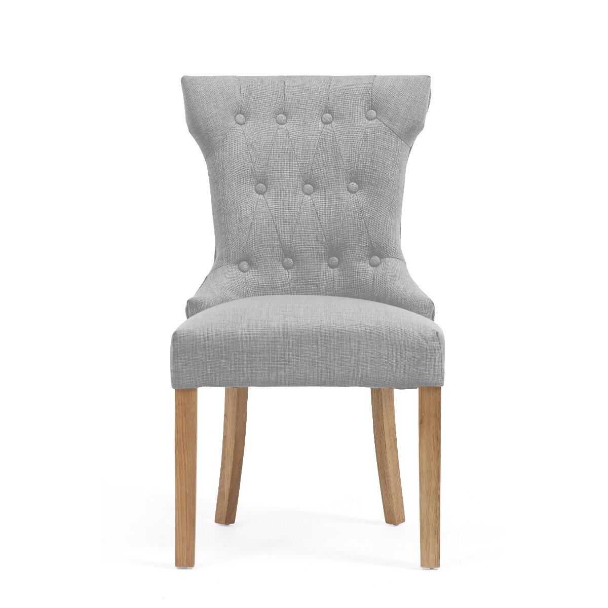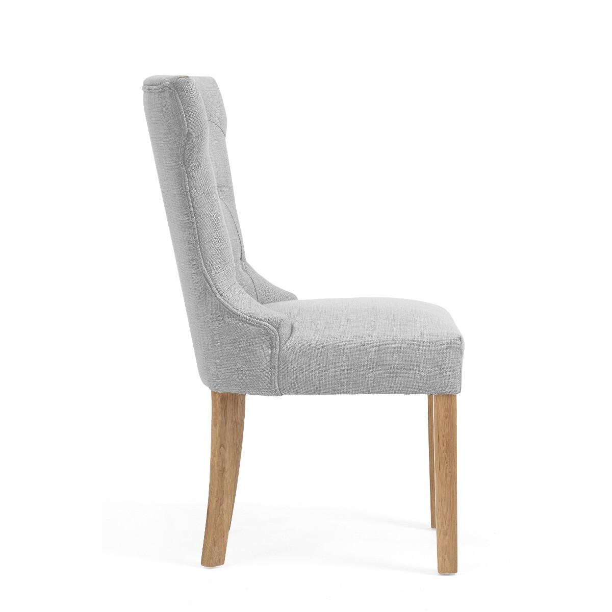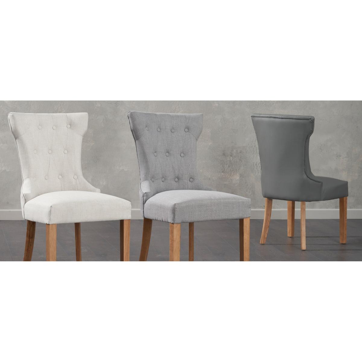 I love how the Claras combine a gently curved, button-tufted back with pale grey upholstery and warm wooden legs - they feel both comfortable and streamlined. They work beautifully in Scandi-inspired kitchens, modern country dining rooms or neutral, minimalist living spaces. For styling, pair them with a simple oak table to echo the leg tone, layer in a natural-fibre rug and add a dark cushion or two for contrast. They also make a smart bedroom reading-corner when teamed with a slim side table and floor lamp.