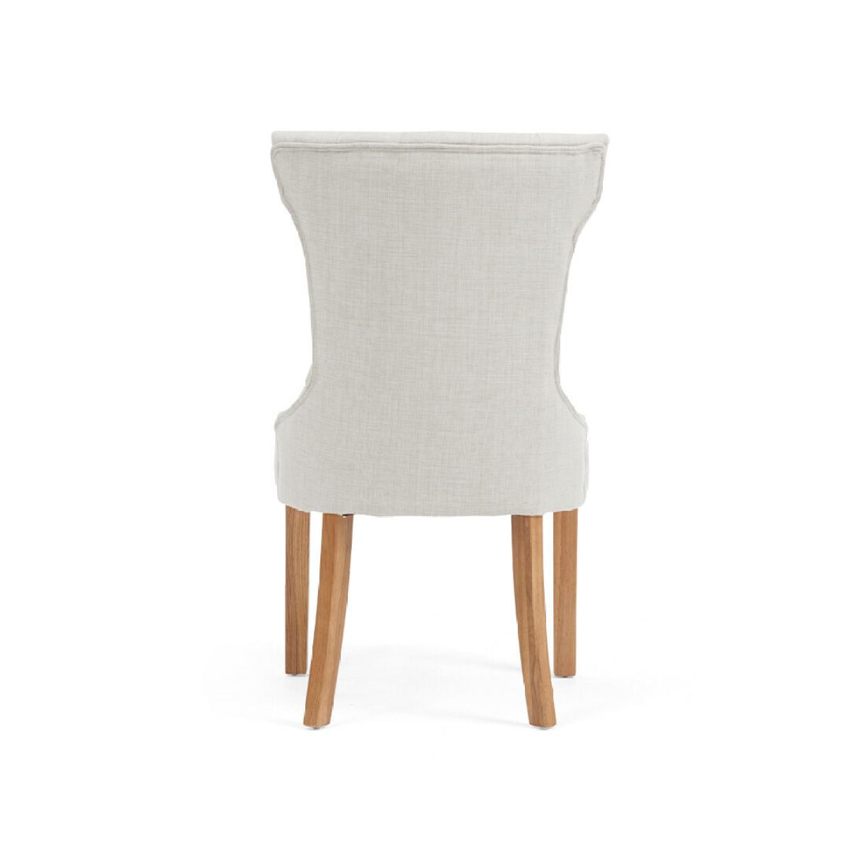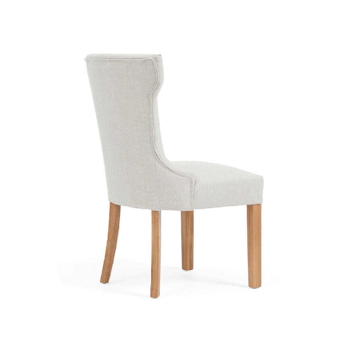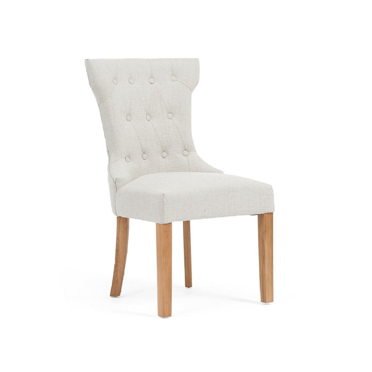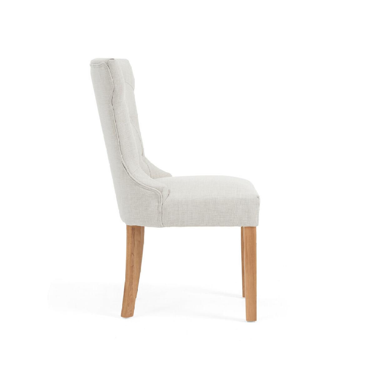 I love how the Claras combine a gently curved, button-tufted back with pale grey upholstery and warm wooden legs - they feel both comfortable and streamlined. They work beautifully in Scandi-inspired kitchens, modern country dining rooms or neutral, minimalist living spaces. For styling, pair them with a simple oak table to echo the leg tone, layer in a natural-fibre rug and add a dark cushion or two for contrast. They also make a smart bedroom reading-corner when teamed with a slim side table and floor lamp.