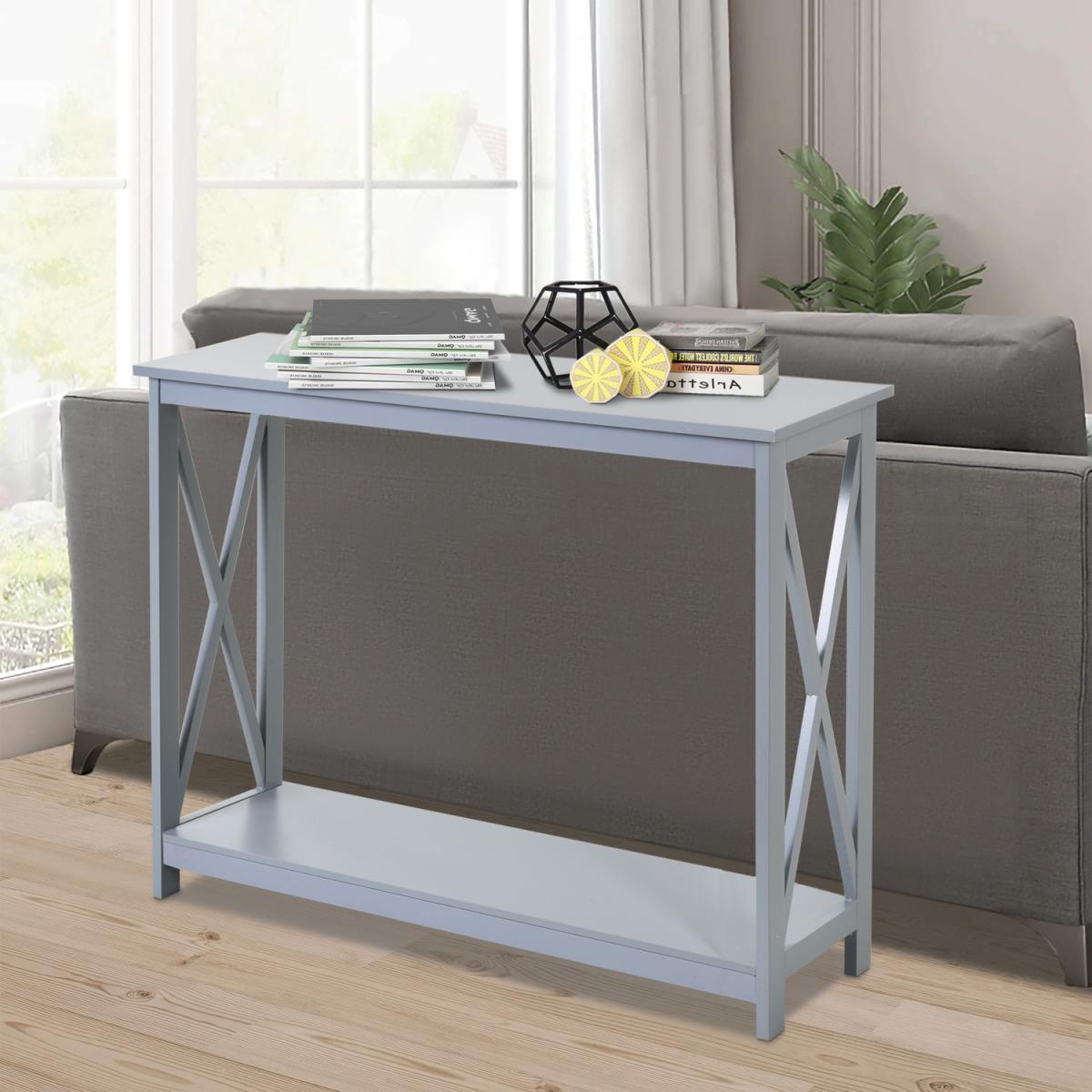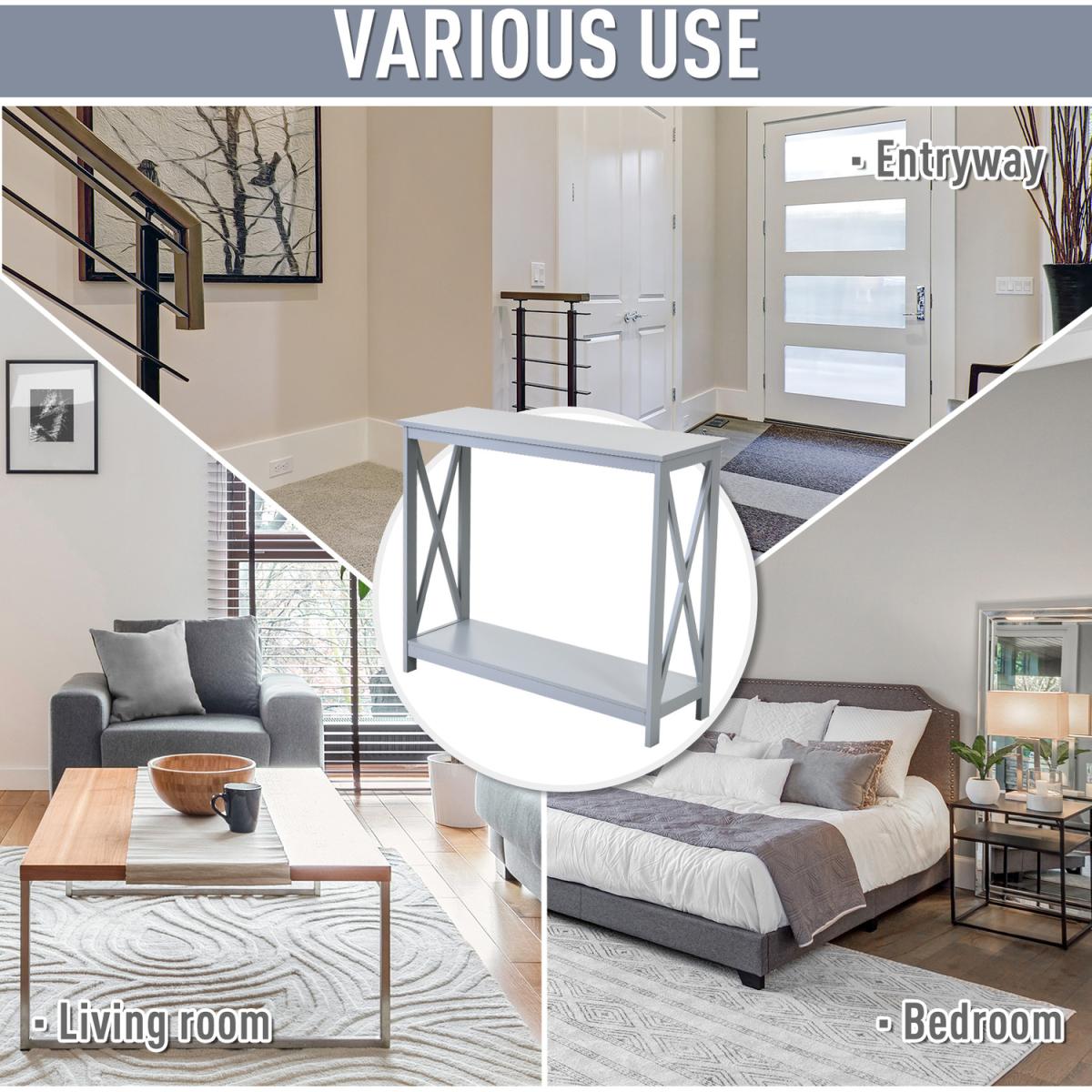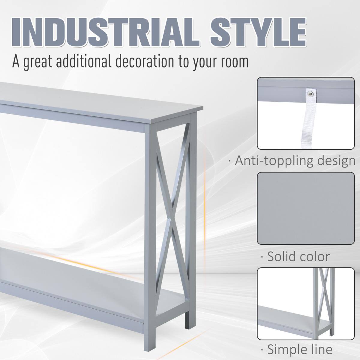 Grey Console Table with Shelf, Display Shelf Stand Furniture - Grey